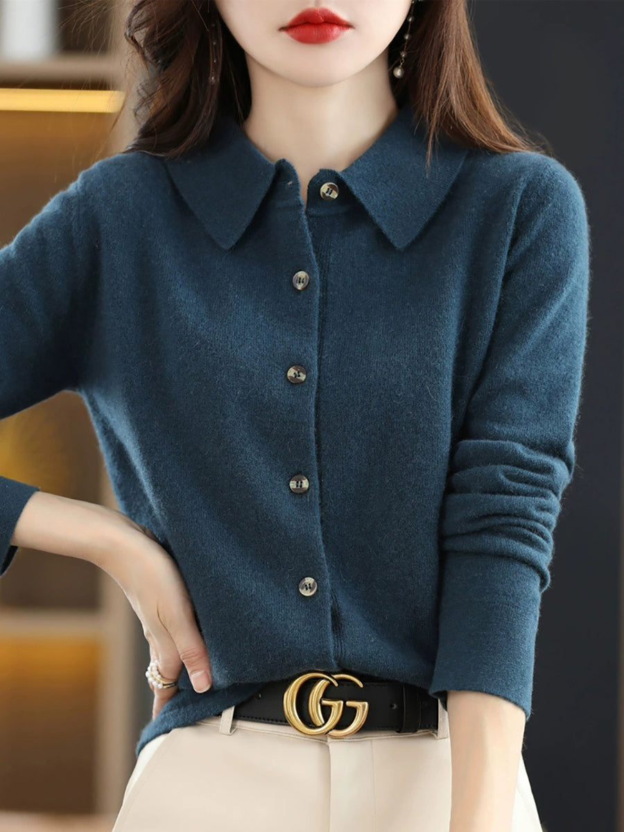 Gilet cardigan décontracté pour femme, col rabattu, idéal pour le printemps.