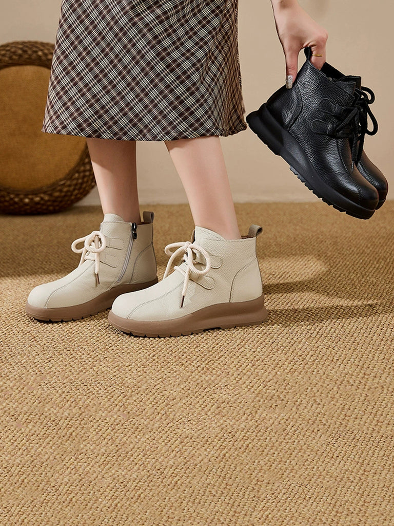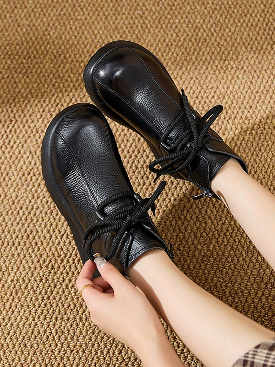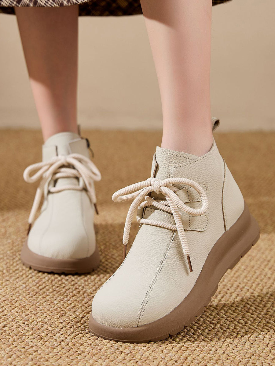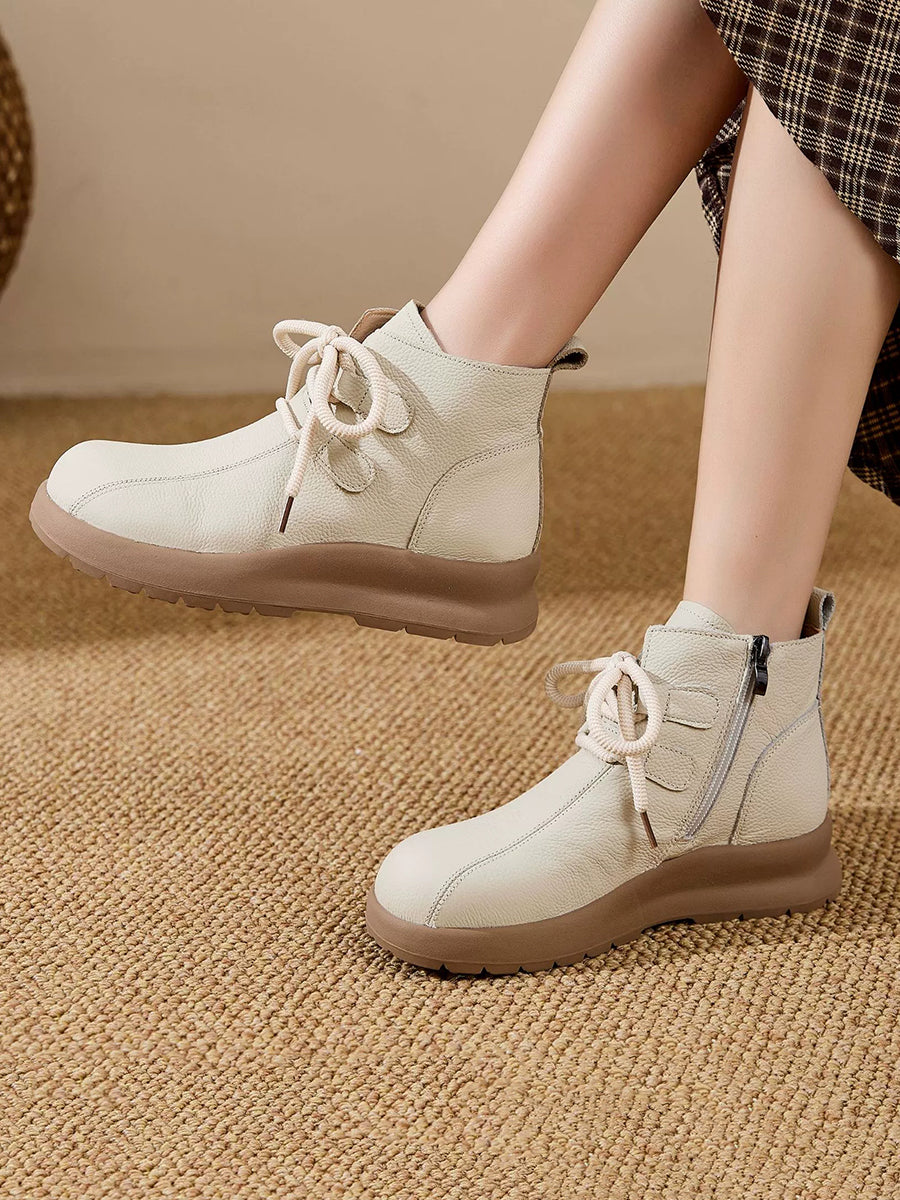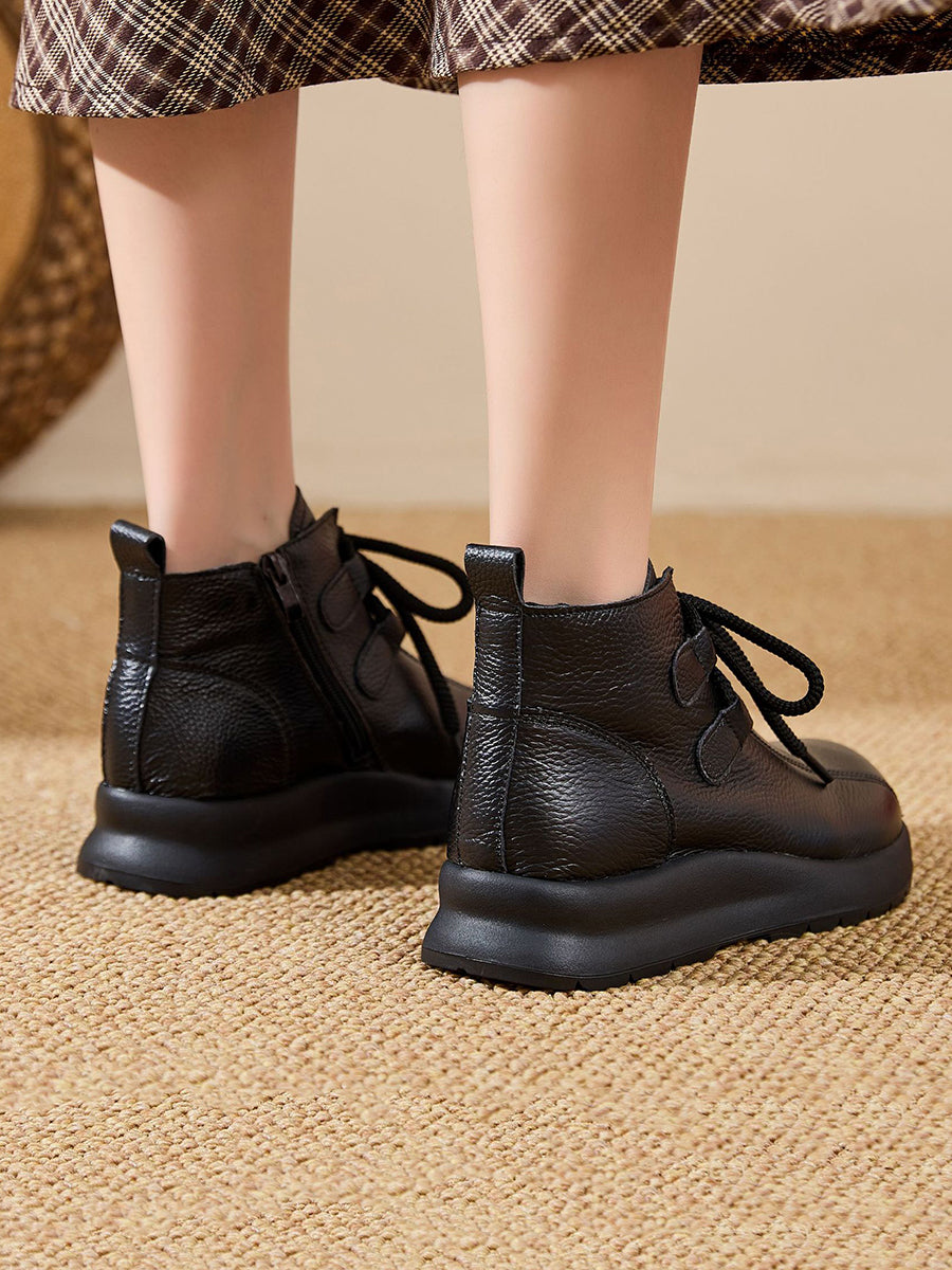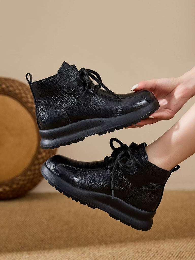 Bottines d'hiver décontractées pour femmes en cuir véritable