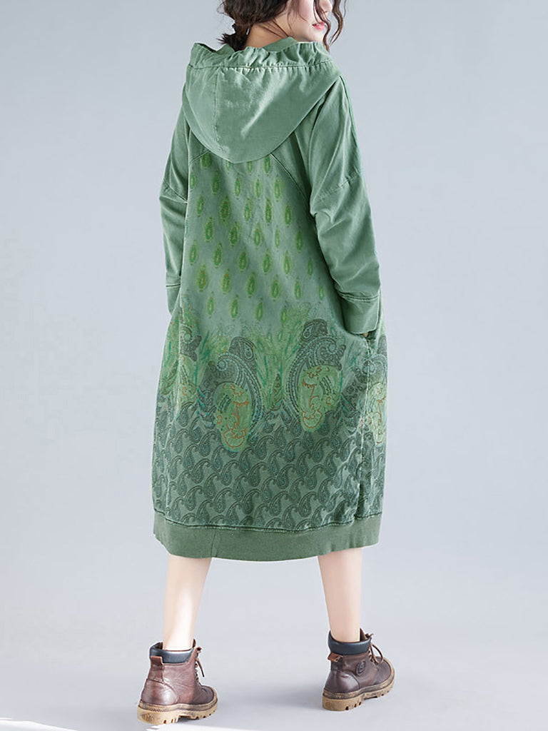 Cette robe en coton présente un motif fleuri. Elle est dotée d'un col rond, de manches raglan amples et d'un style vintage parfait pour l'automne et le printemps.