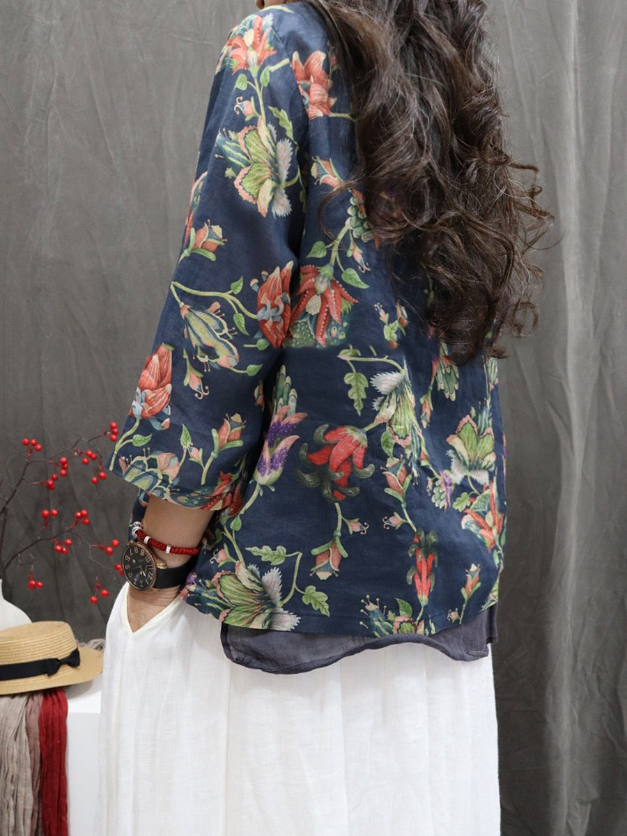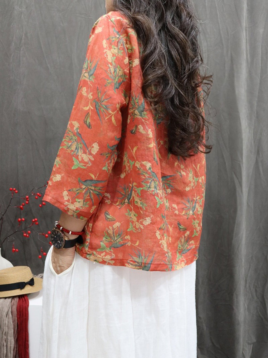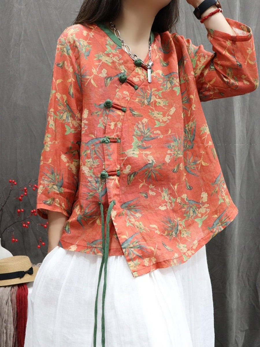 Chemise ethnique printanière à fleurs pour femme, col en V, 100 % rapie