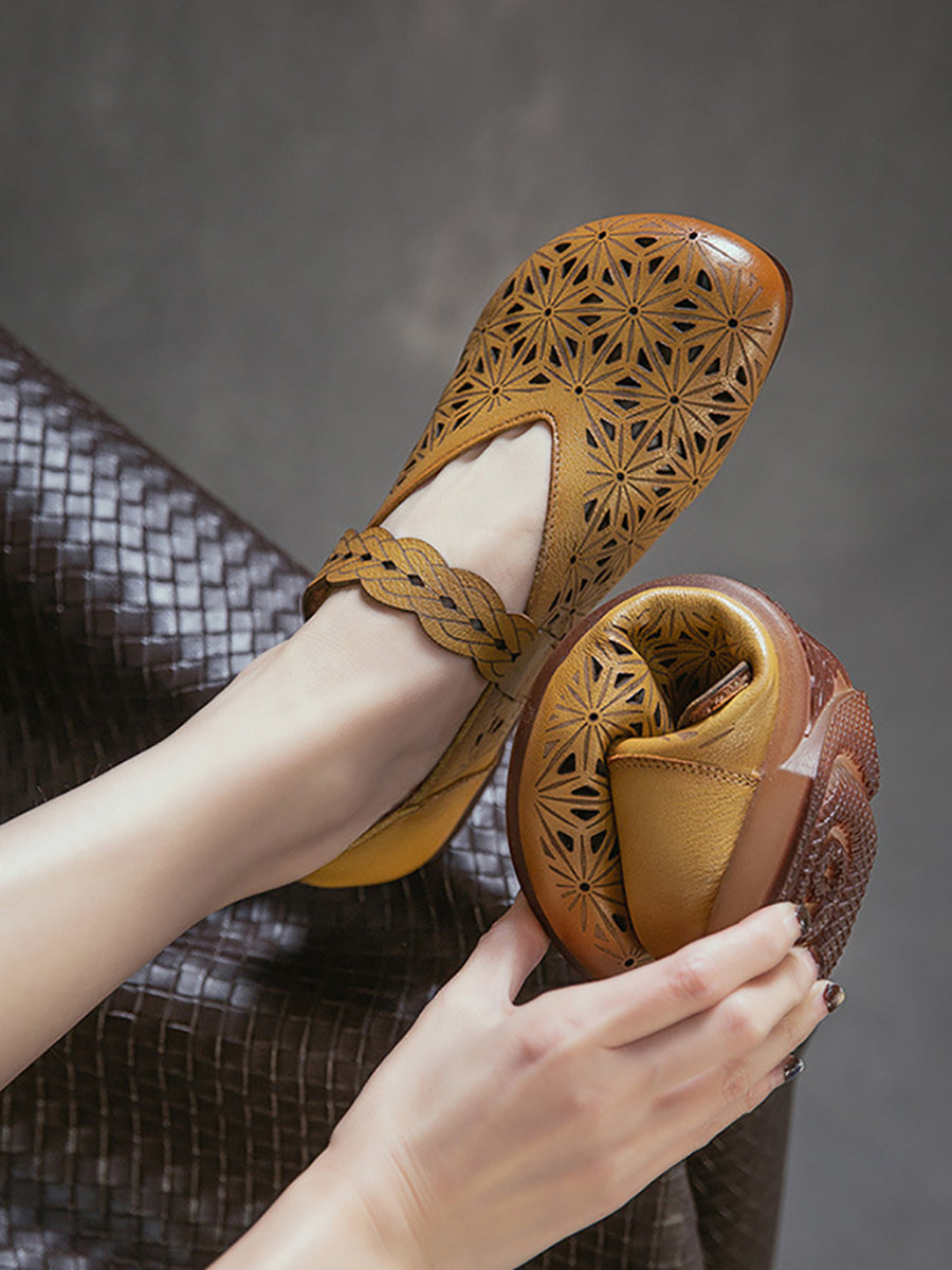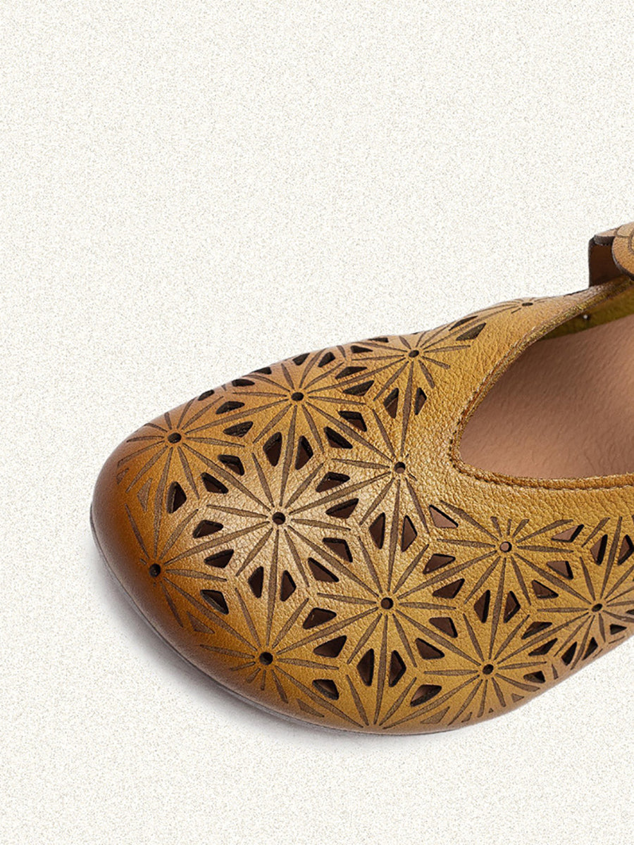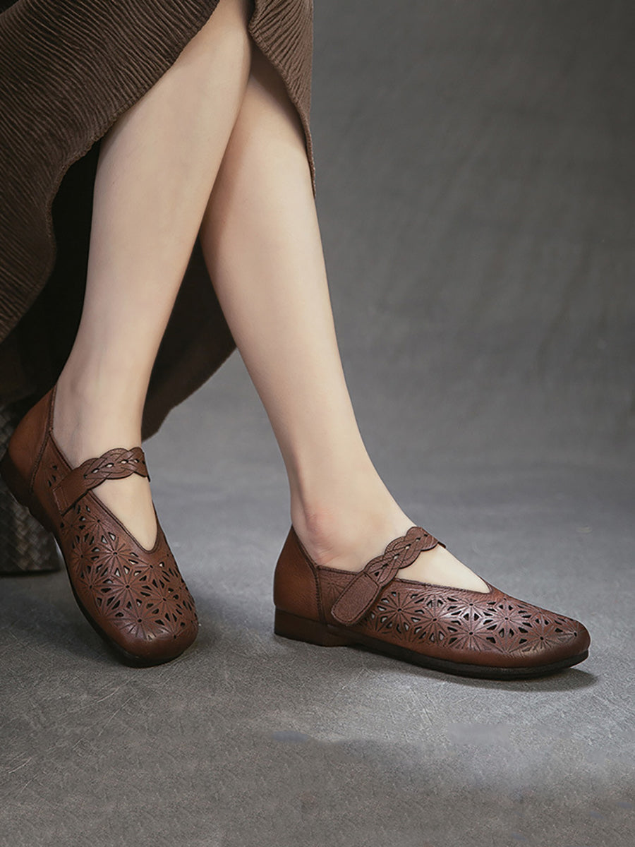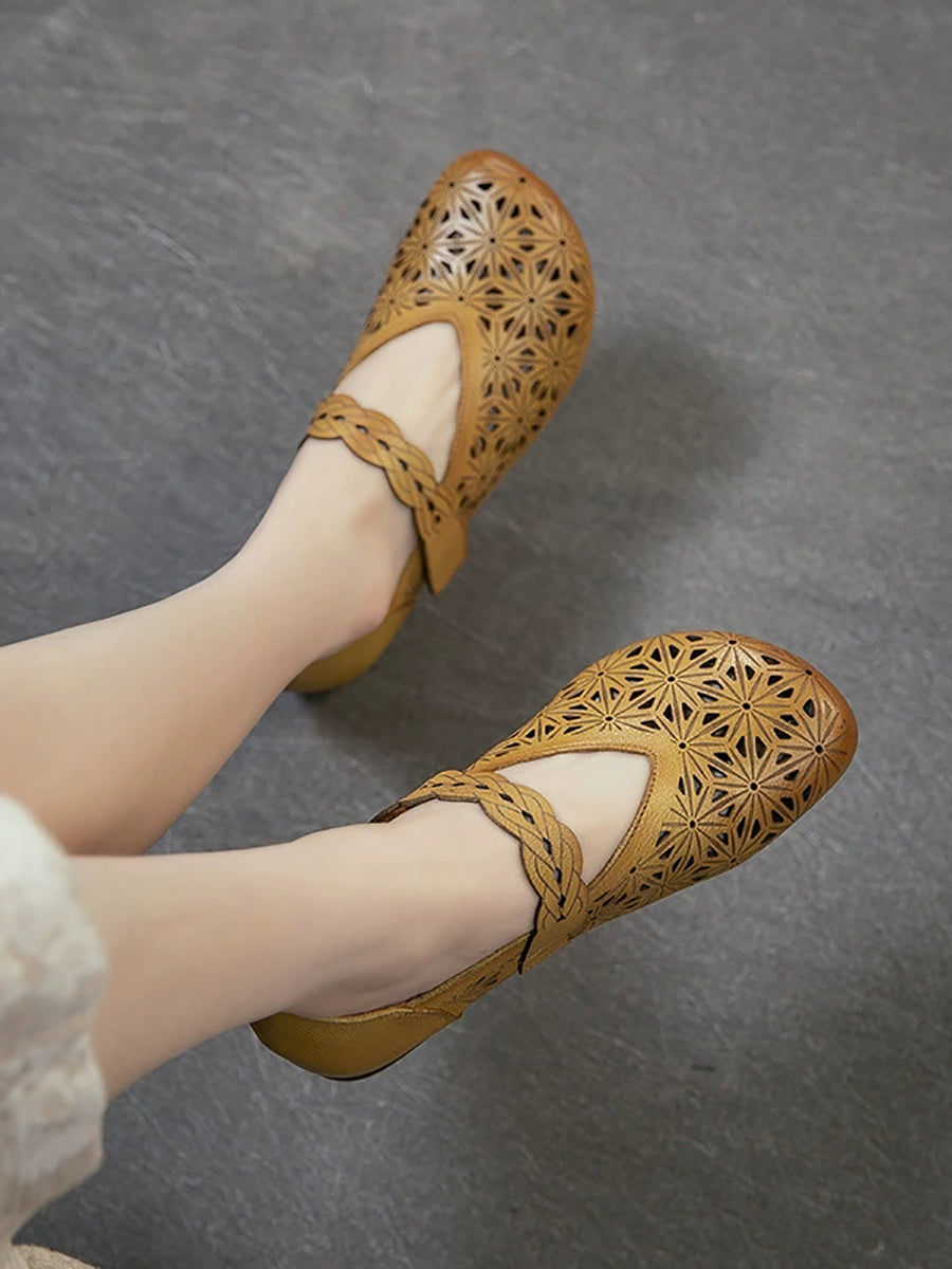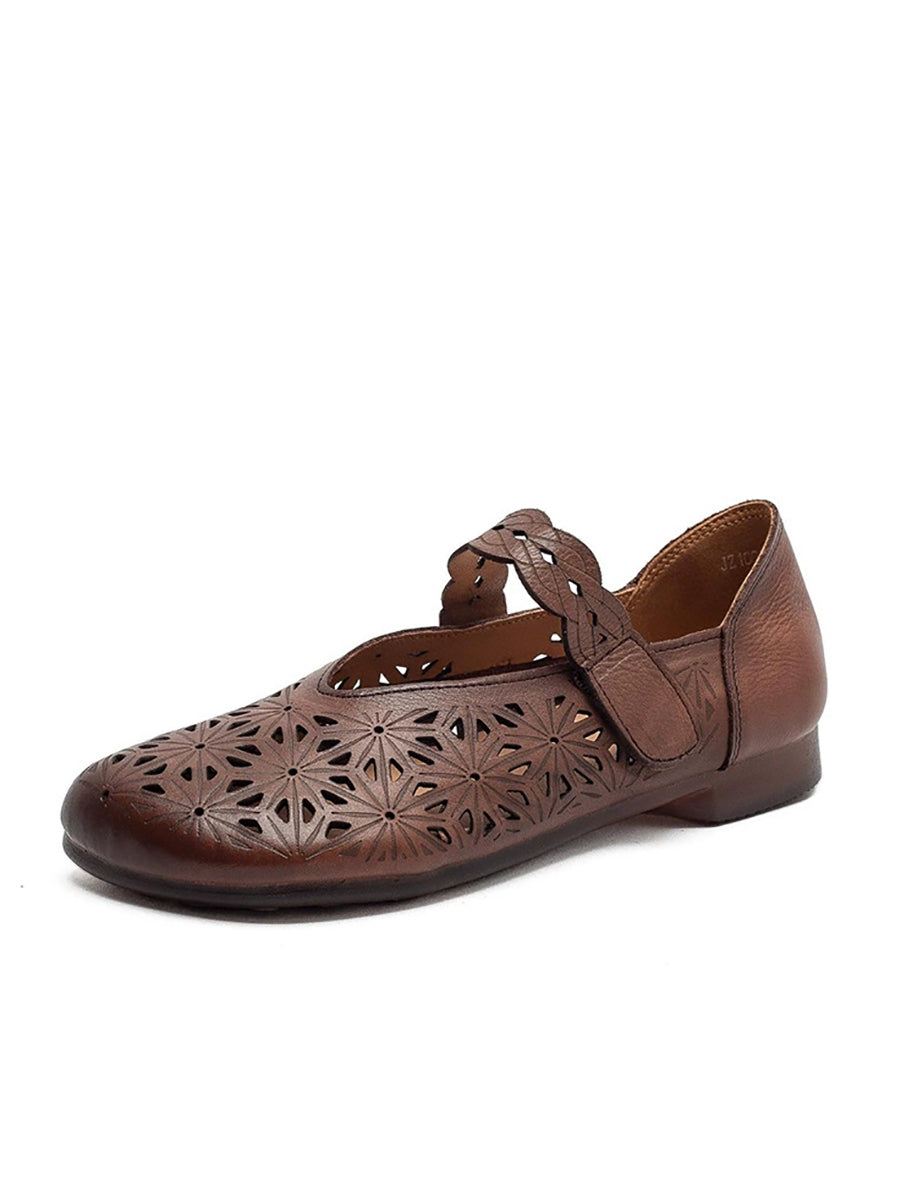 Sandales à petit talon ajourées en cuir véritable pour femmes