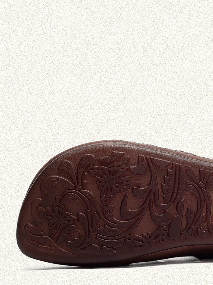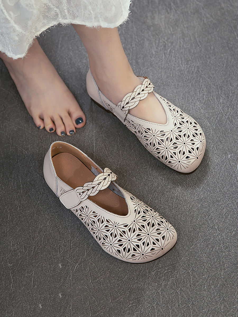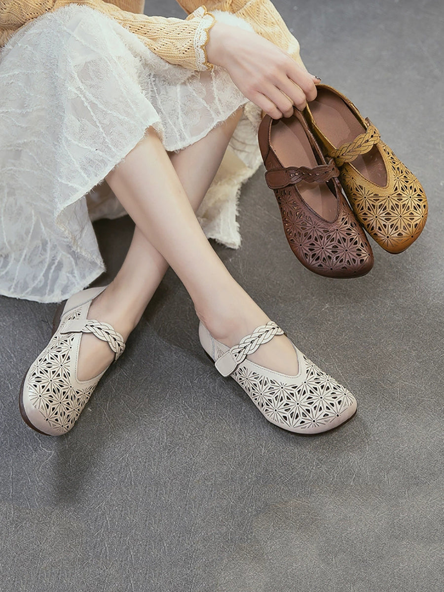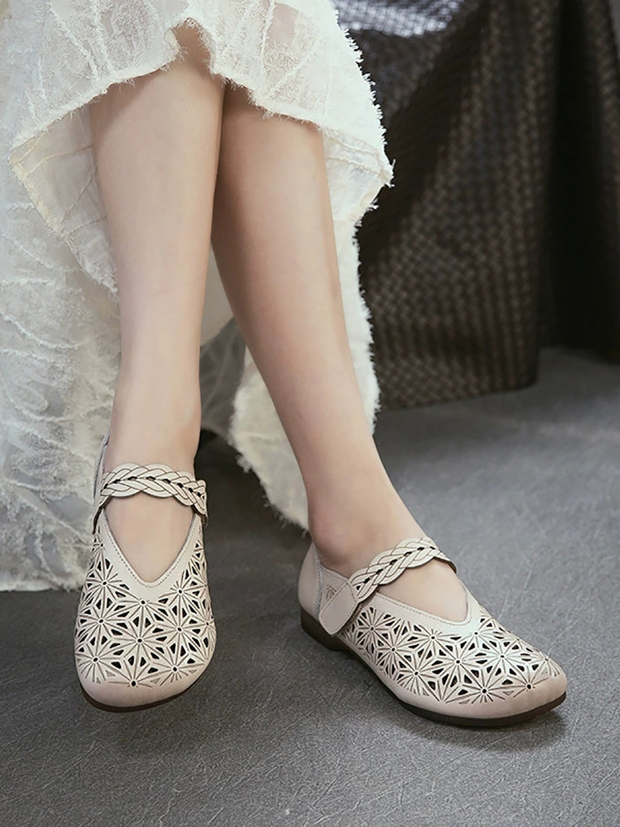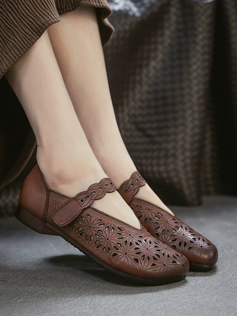 Sandales à petit talon ajourées en cuir véritable pour femmes