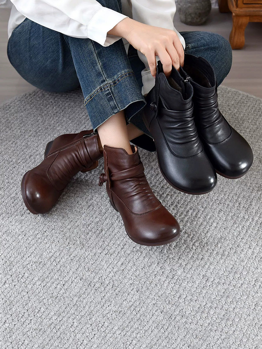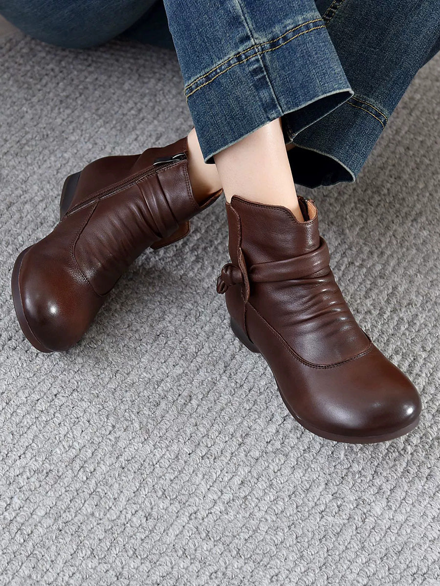 Bottines à petit talon souples en cuir véritable pour femmes