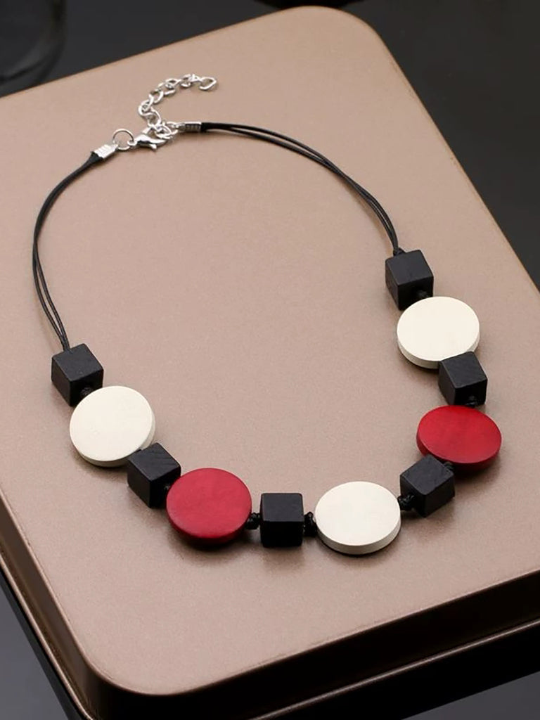 Collier géométrique en bois tressé pour femme