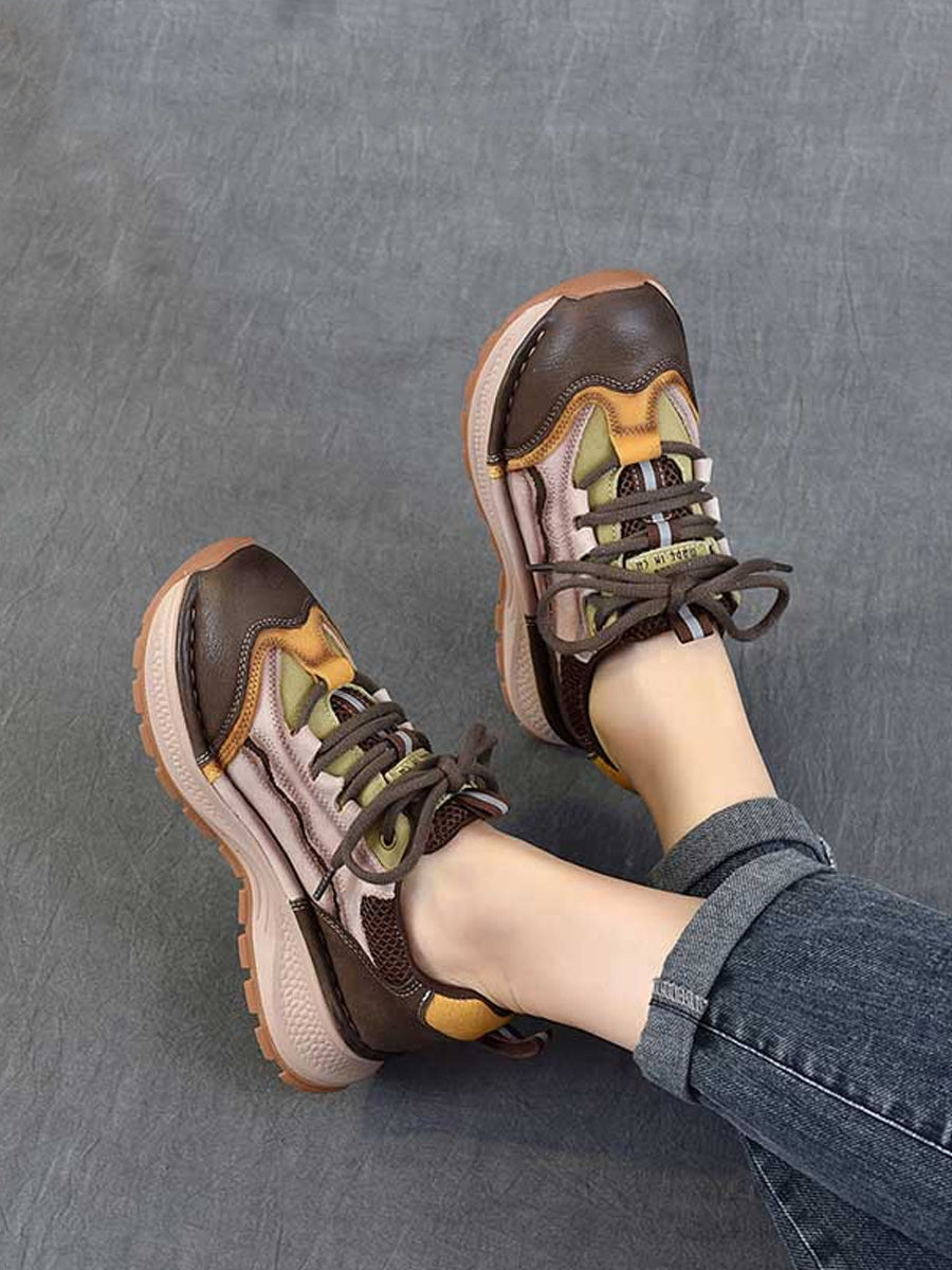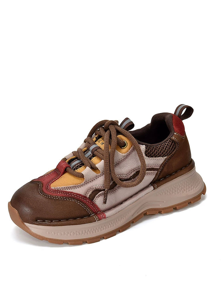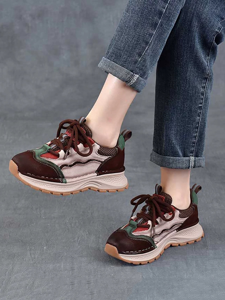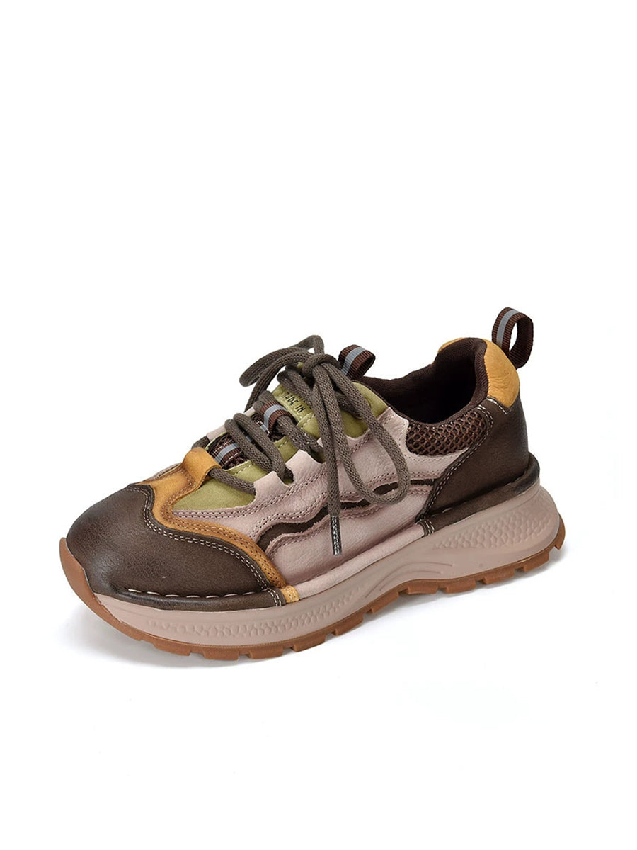 Chaussures de sport rétro à plateforme en cuir colorblock pour femmes