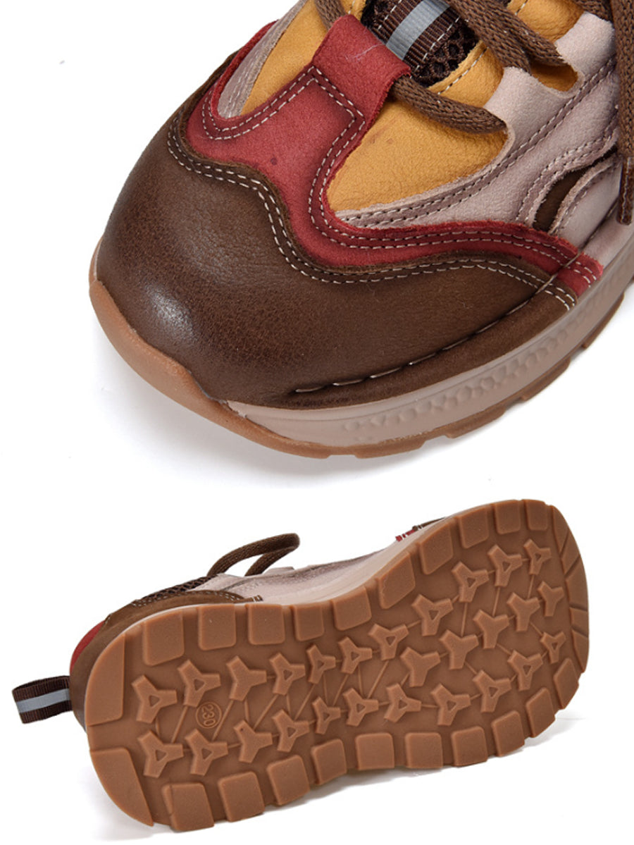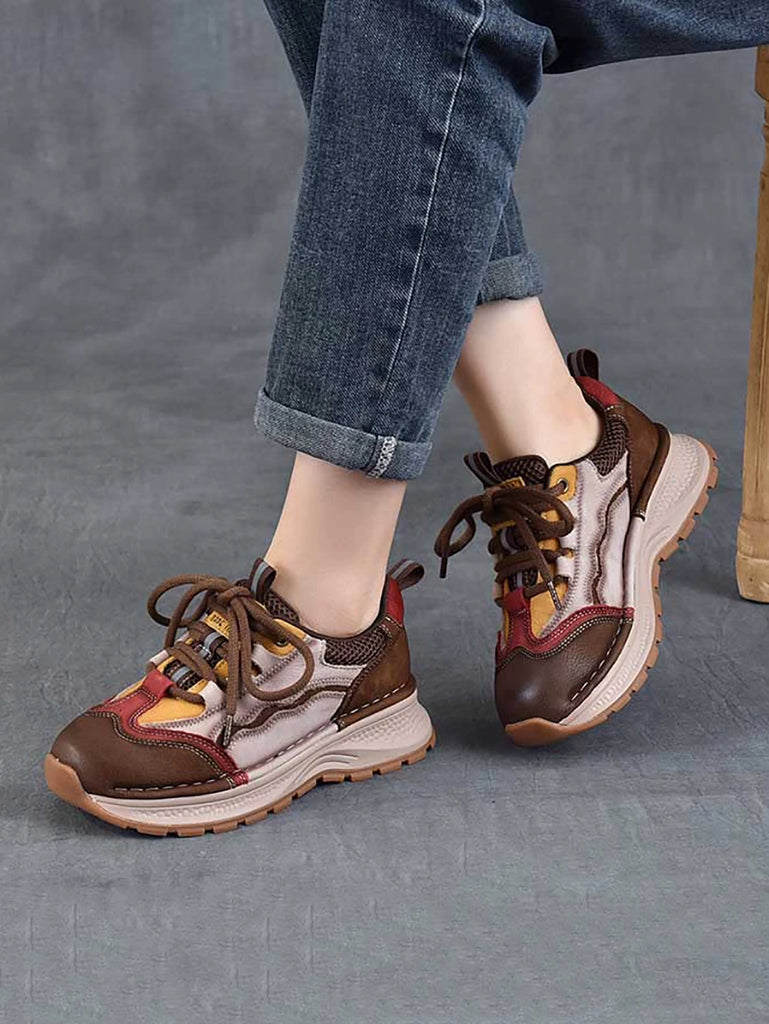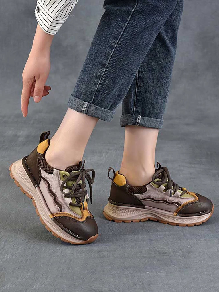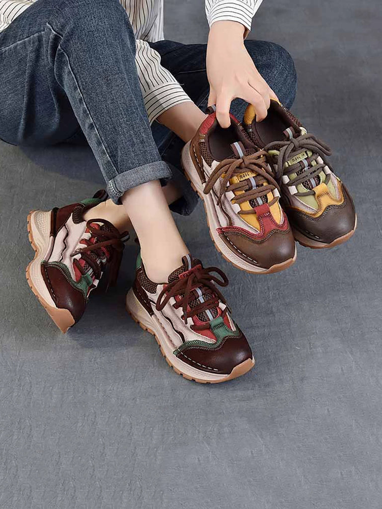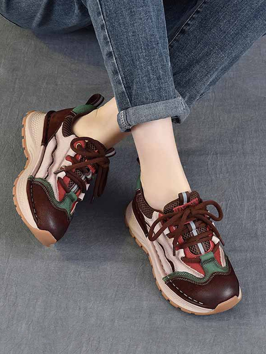 Chaussures de sport rétro à plateforme en cuir colorblock pour femmes