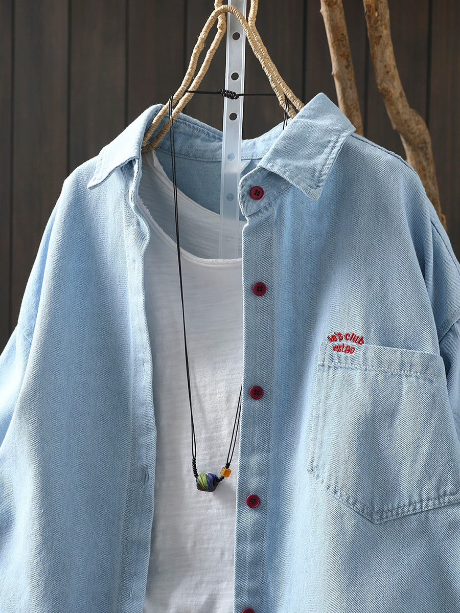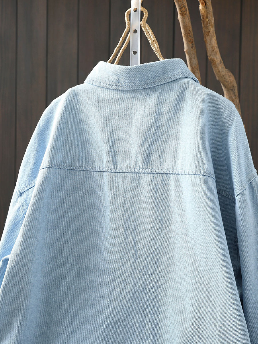 Chemise printanière pour femme, broderie artistique, 100 % coton