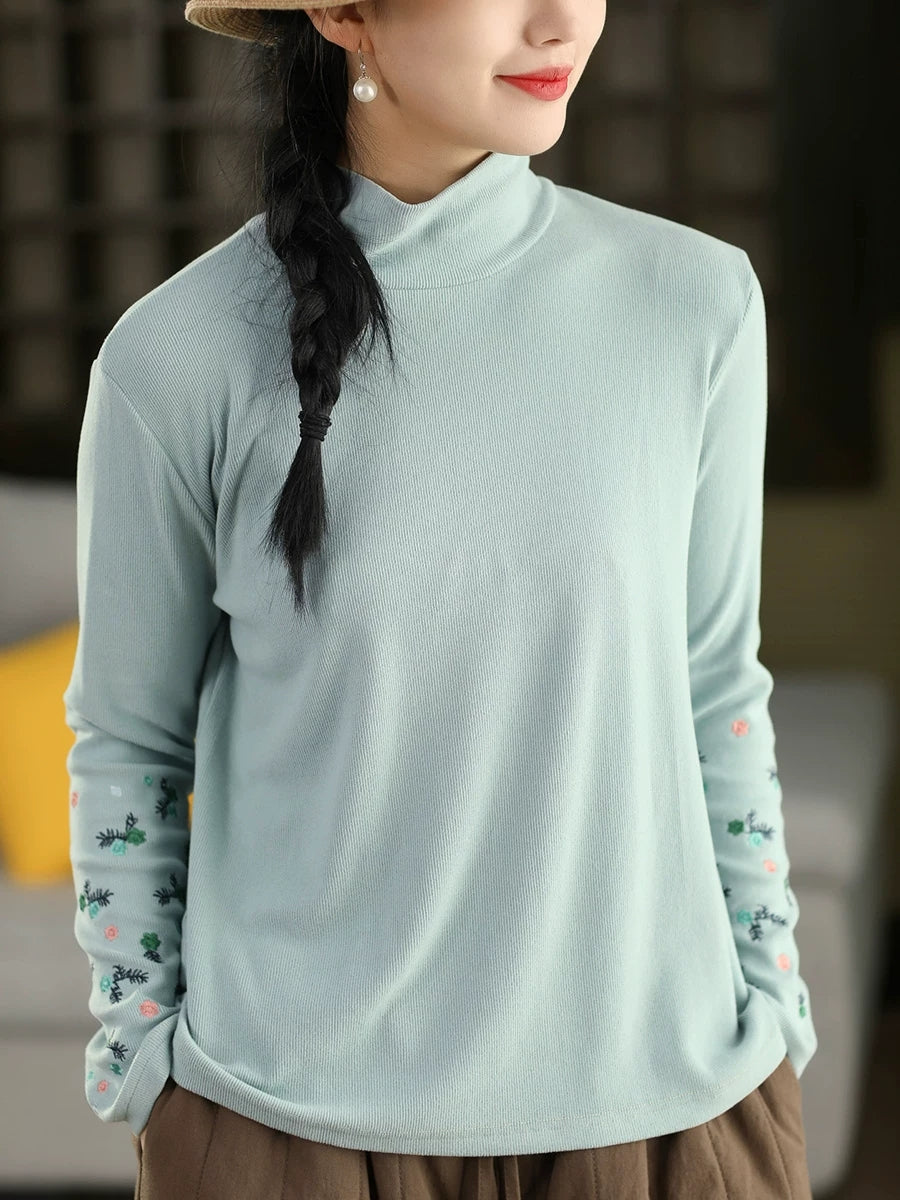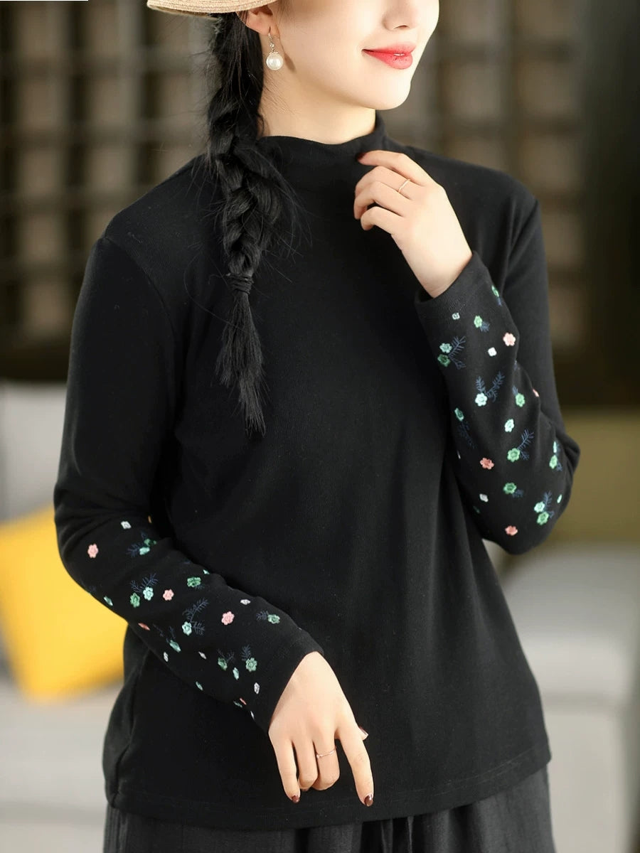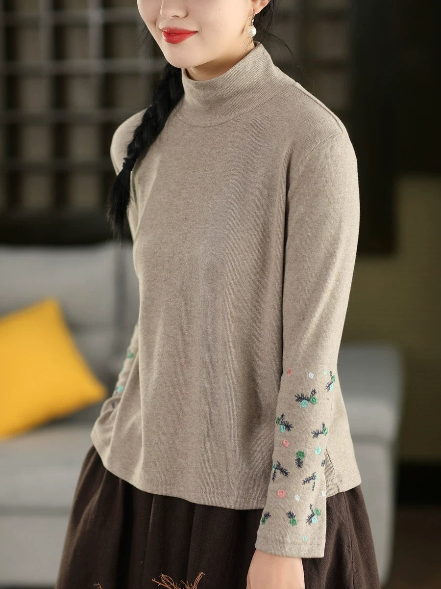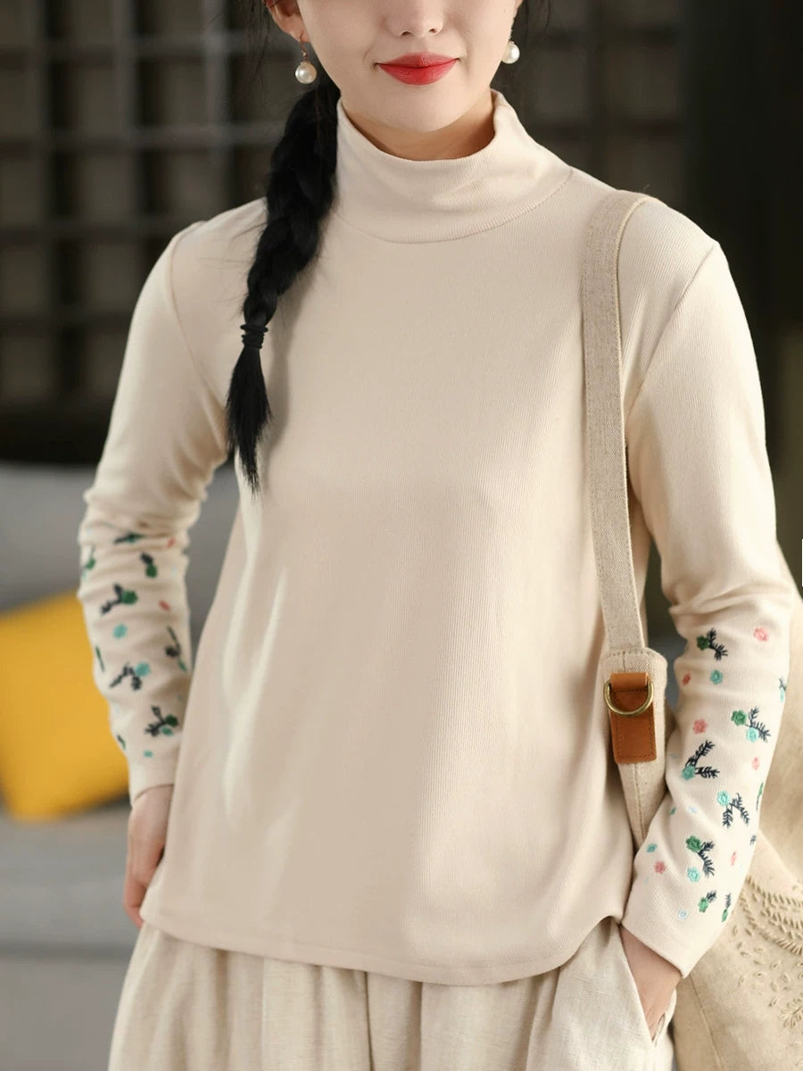 Chemisier à col roulé brodé artistique pour femme, idéal pour le printemps