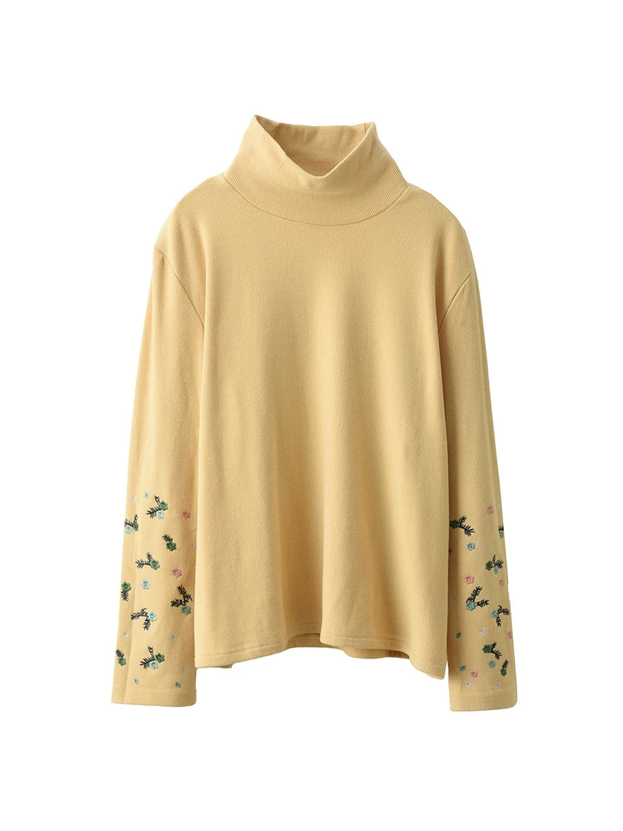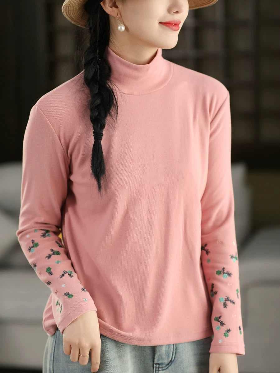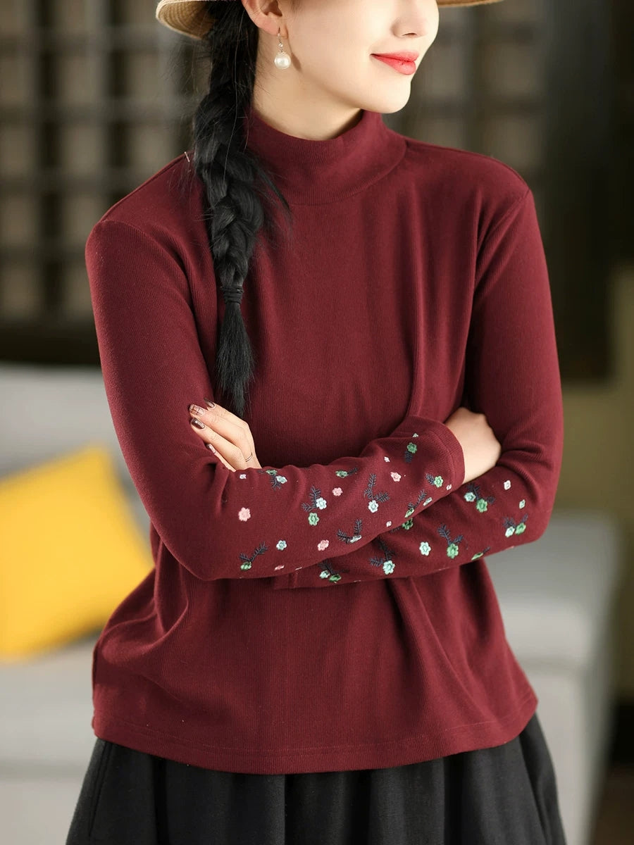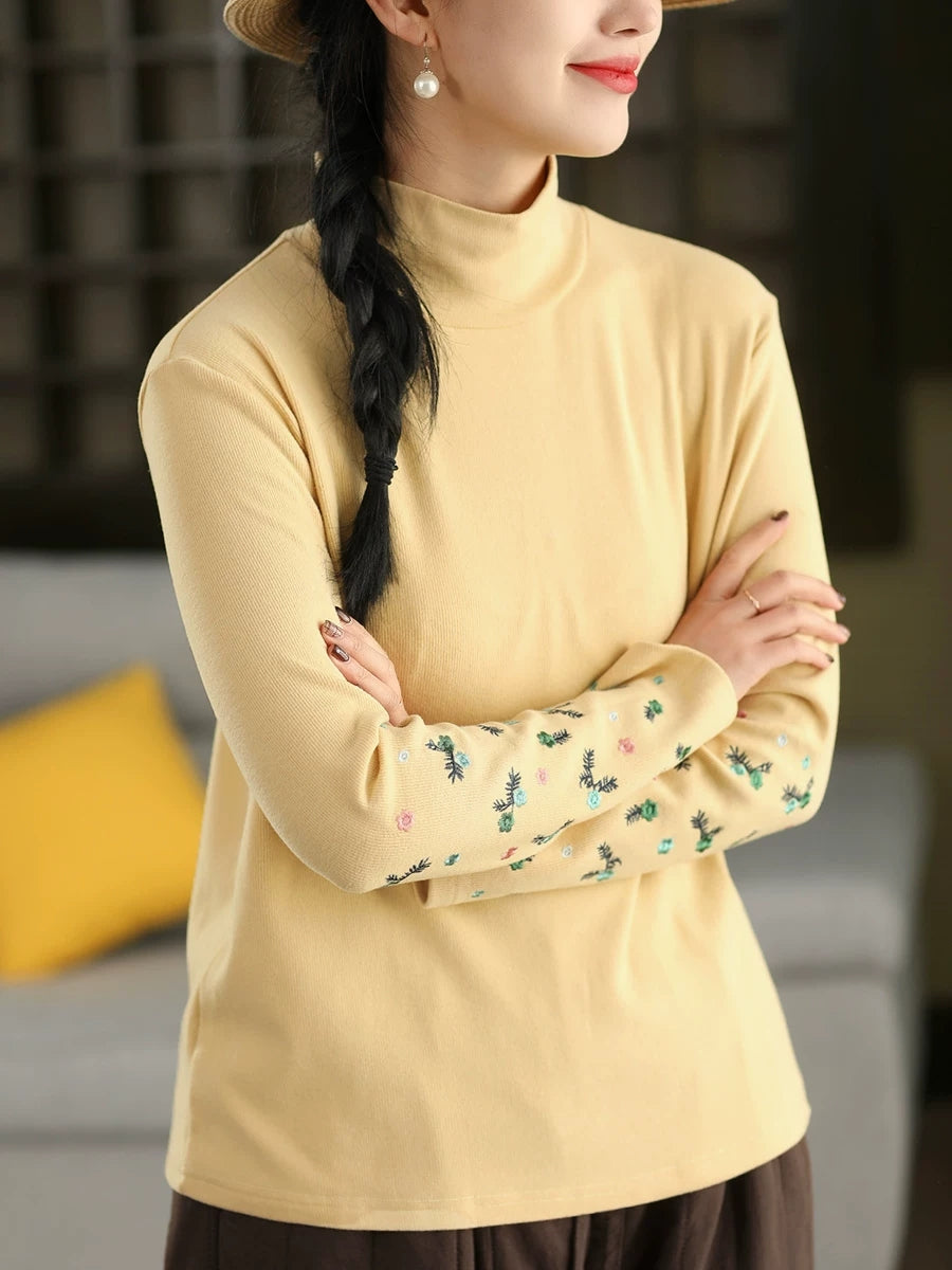 Chemisier à col roulé brodé artistique pour femme, idéal pour le printemps