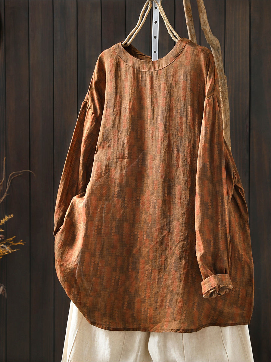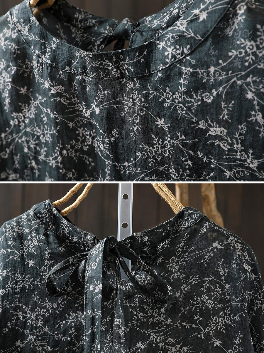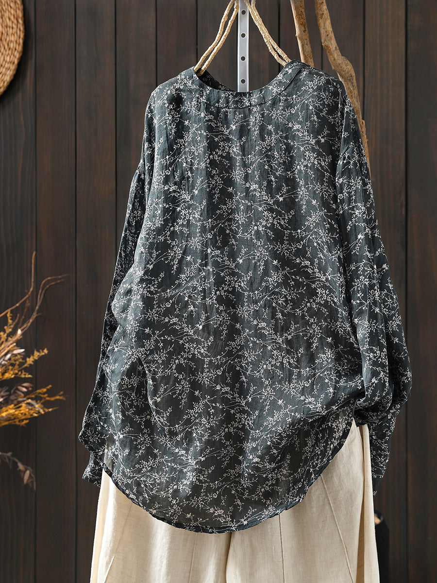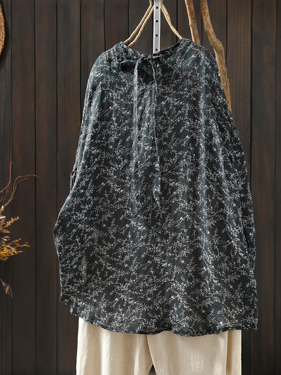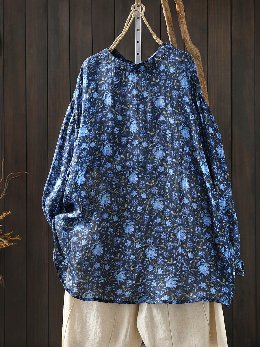 Chemisier printanier à fleurs artistiques pour femme, 100 % ramie, col rond