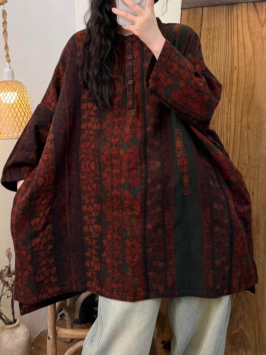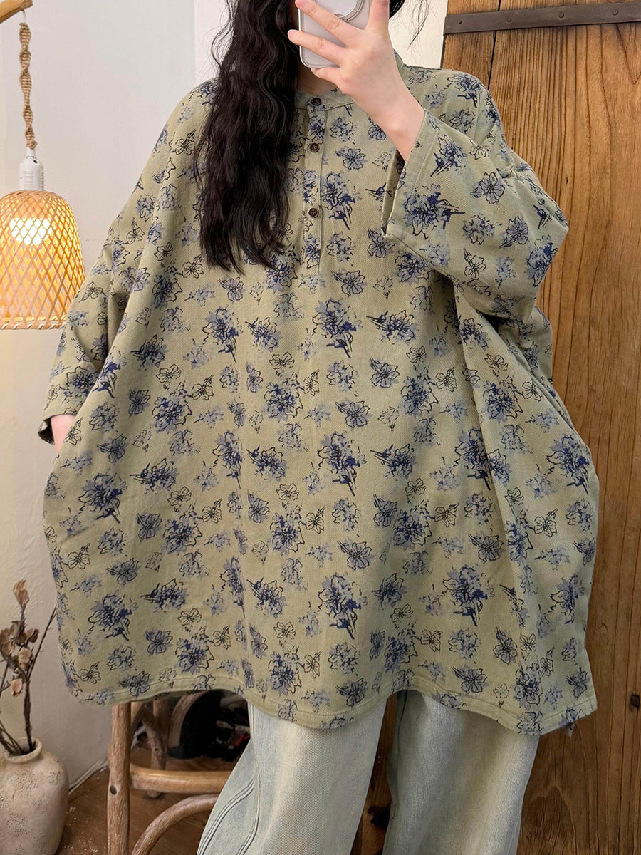 Chemisier printanier en coton à col rond pour femme, style floral artistique