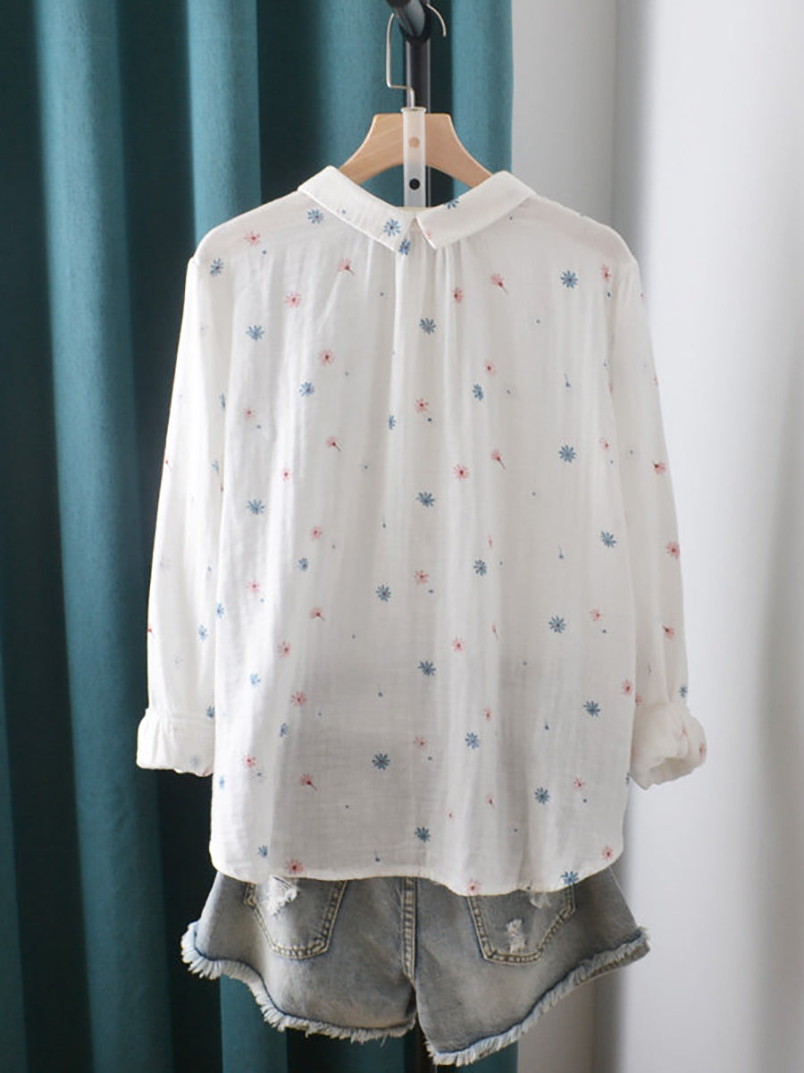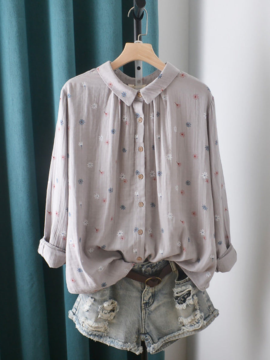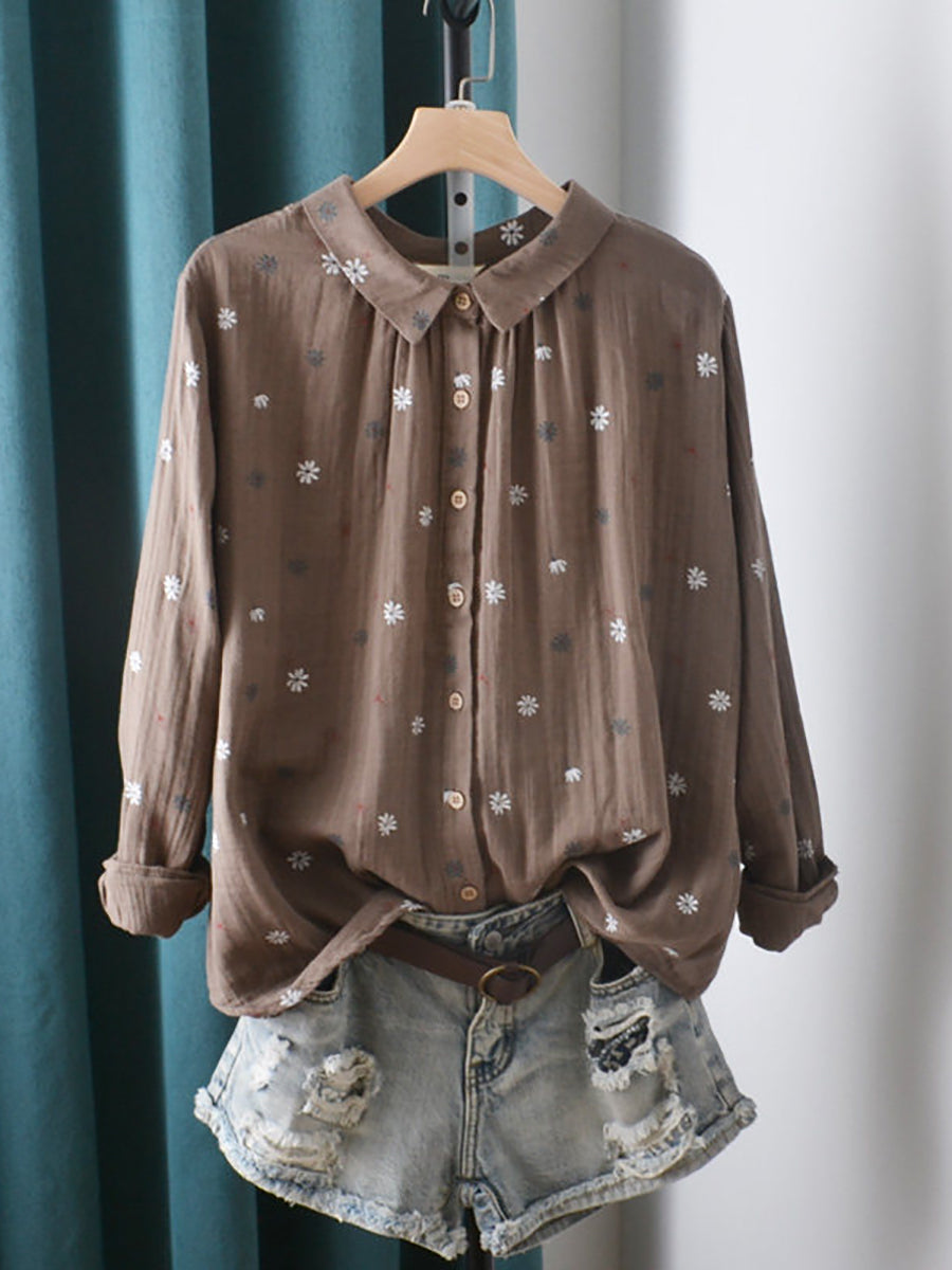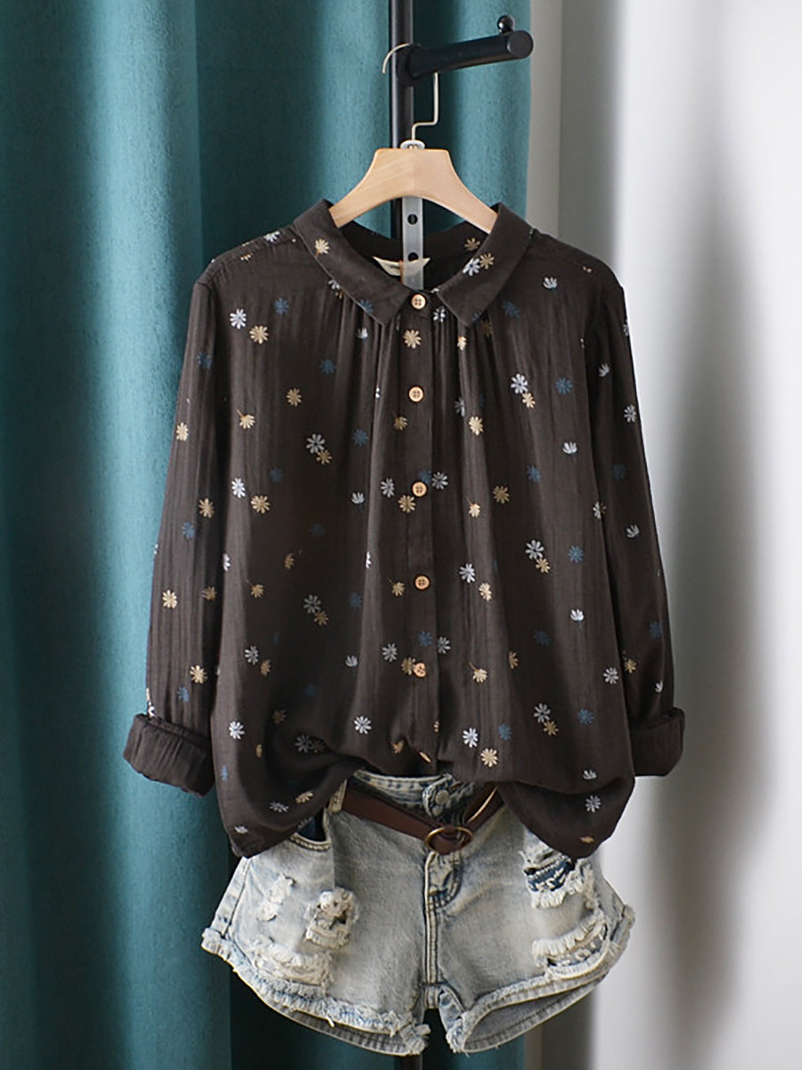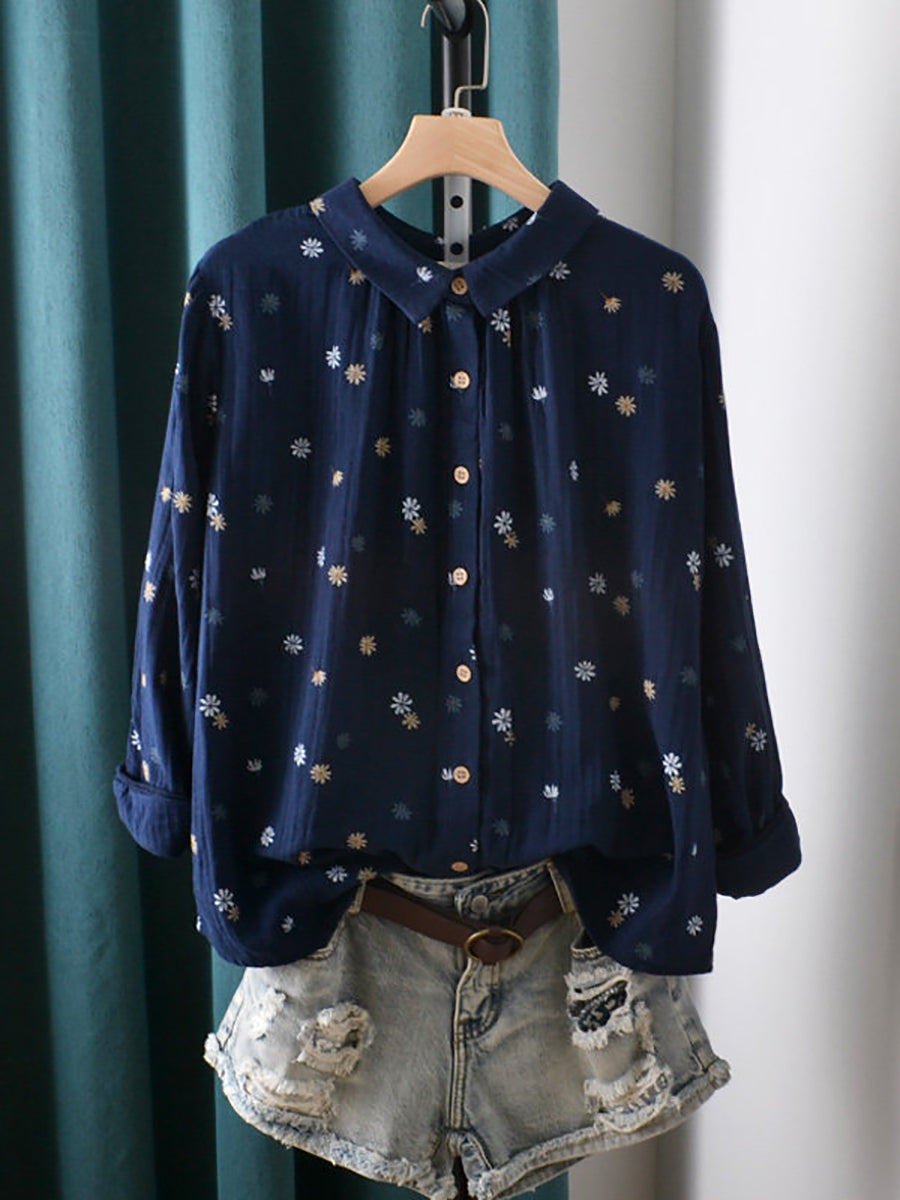 Chemise en coton à fleurs artistiques pour femme, printemps