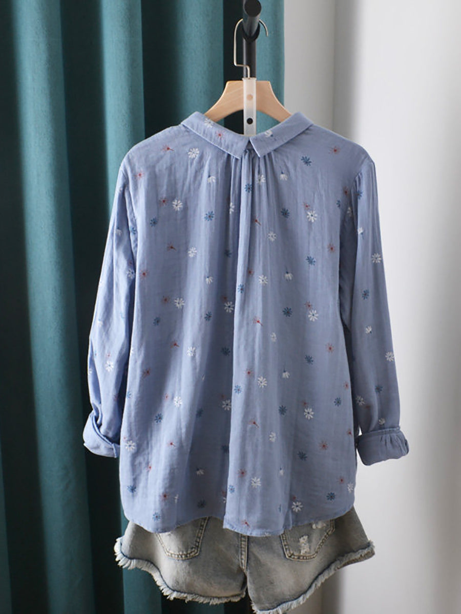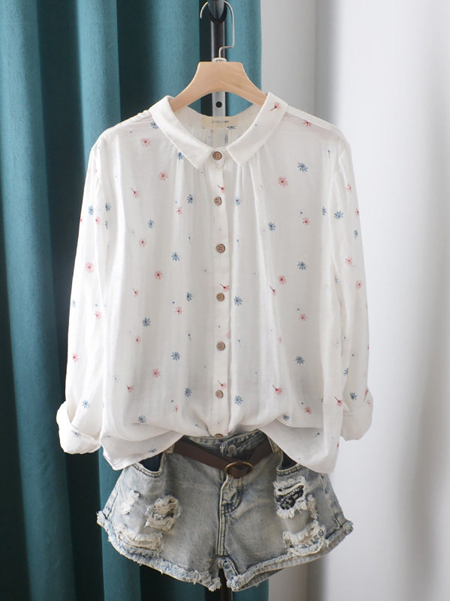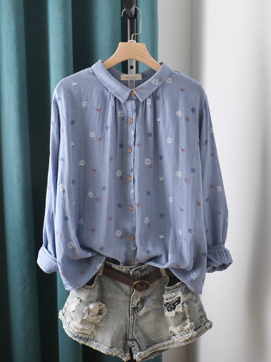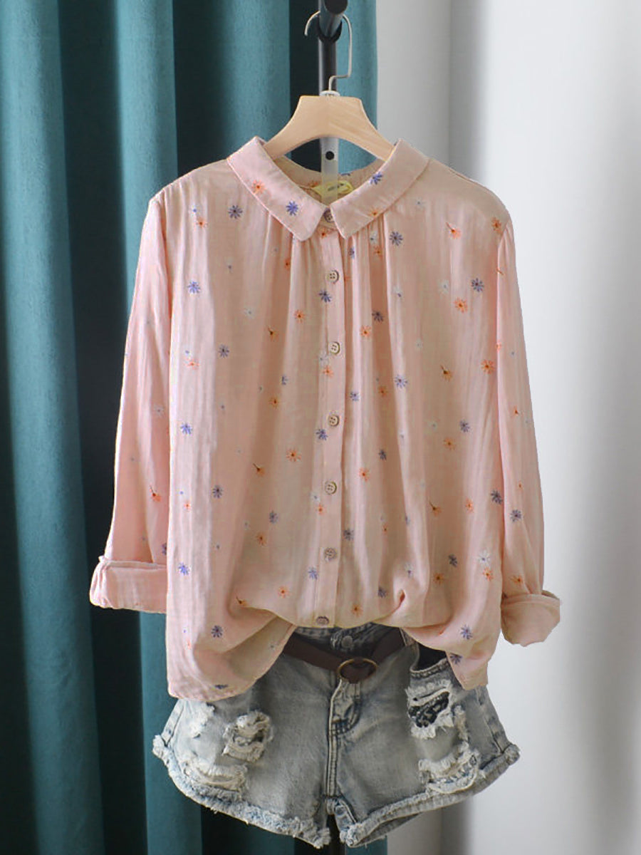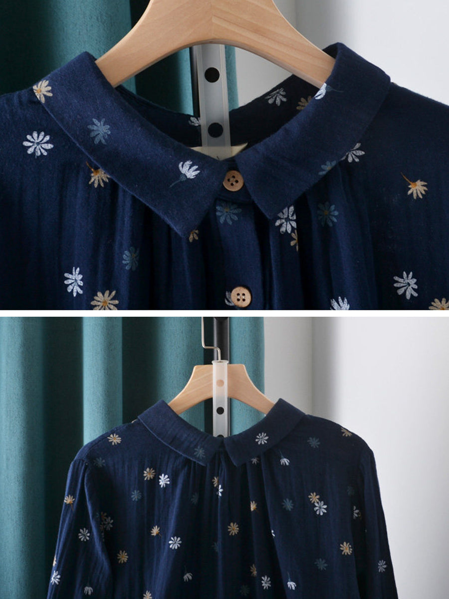 Chemise en coton à fleurs artistiques pour femme, printemps