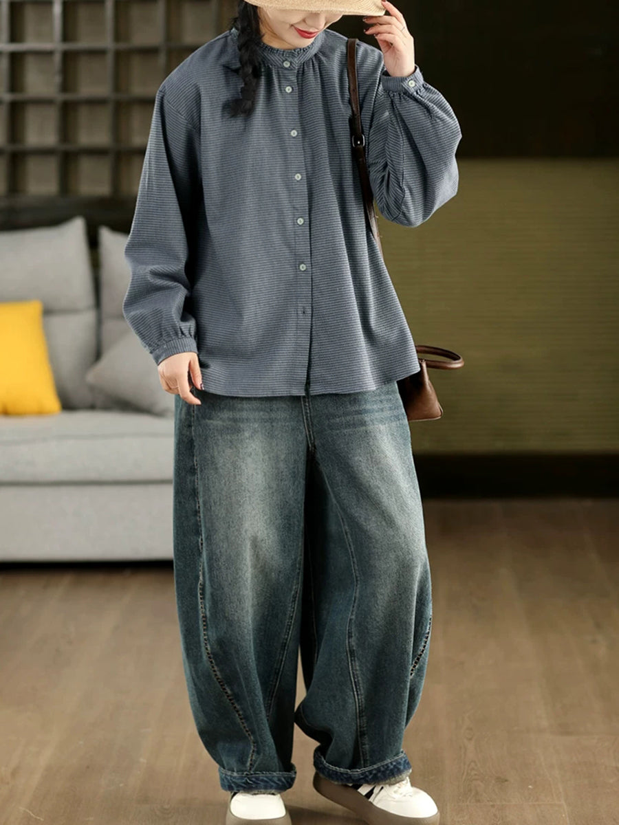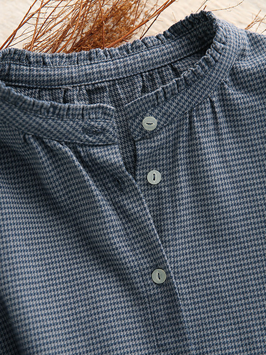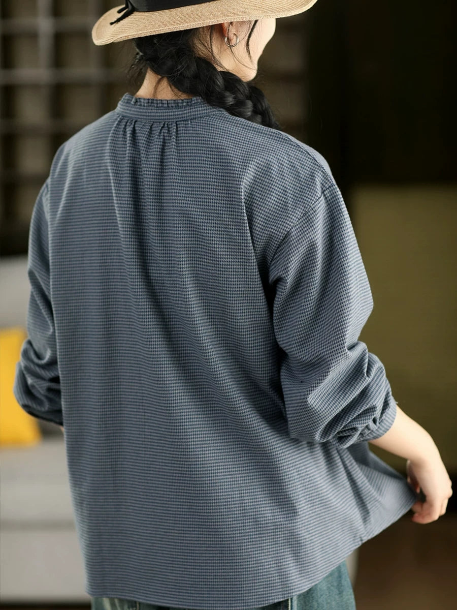 Chemise printanière pour femme à col montant en maille ajourée, 100 % coton