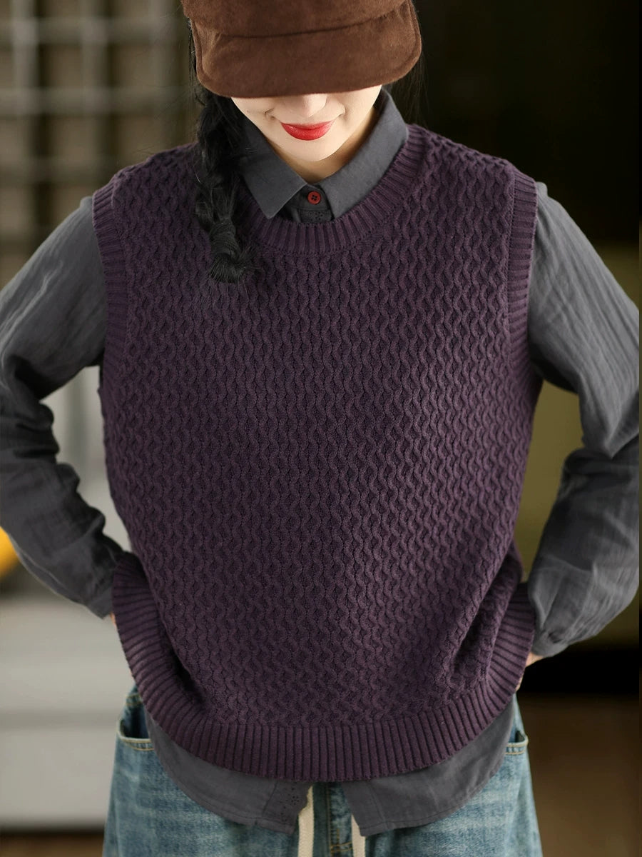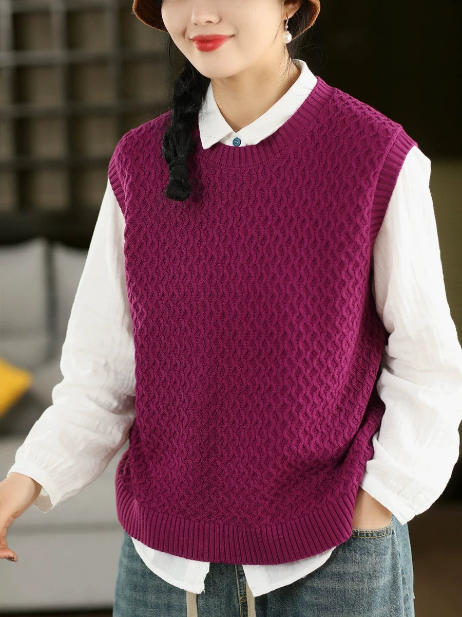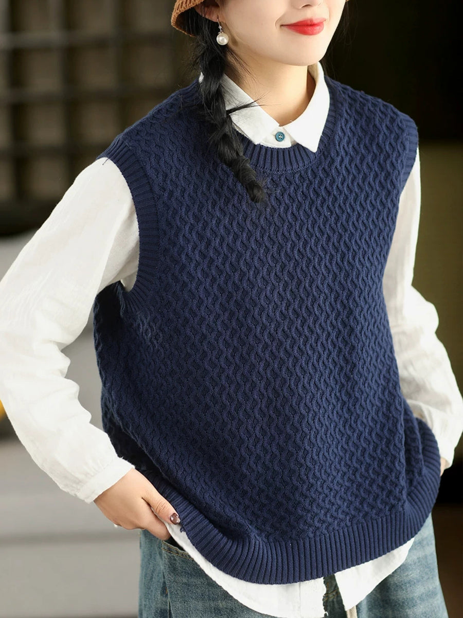 Gilet tricoté uni à col rond pour femme, style artistique, printemps
