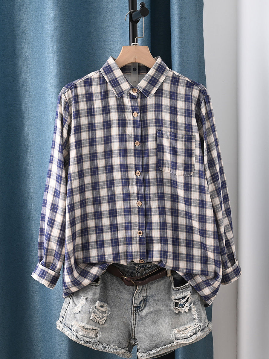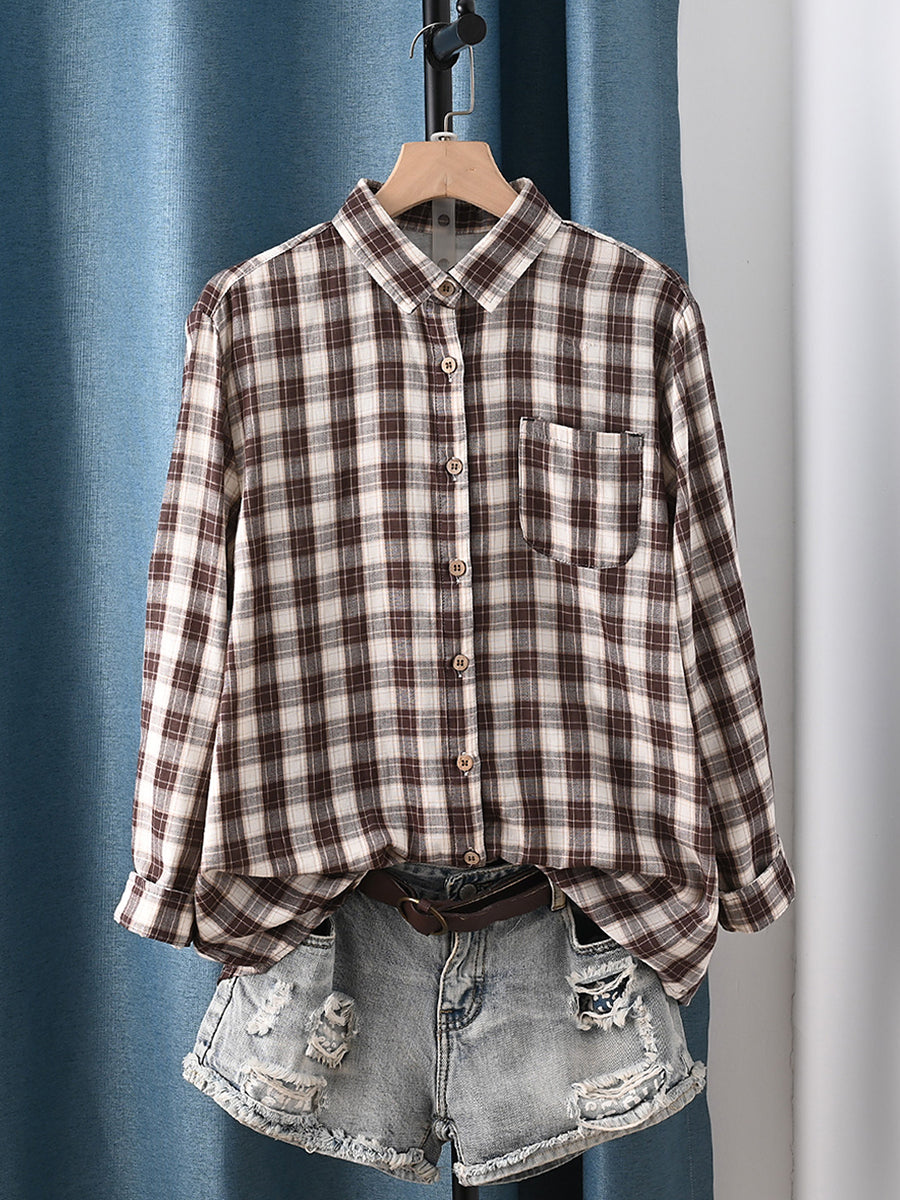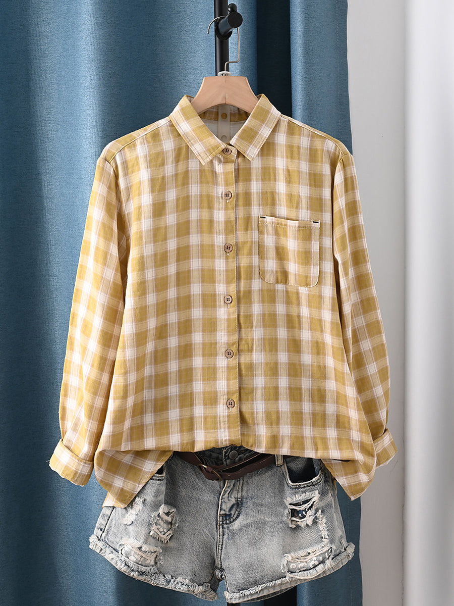 Chemise à carreaux printanière pour femme, col rabattu, 100 % coton