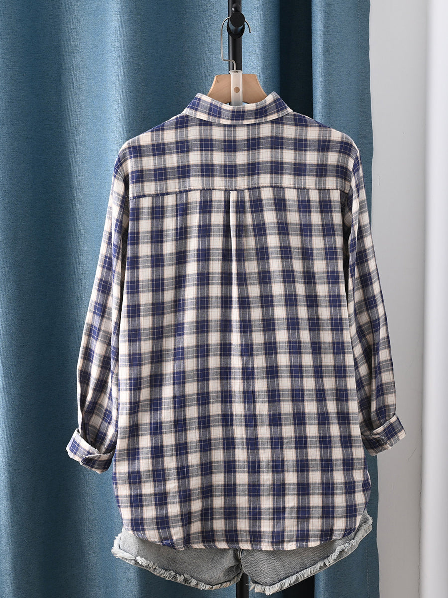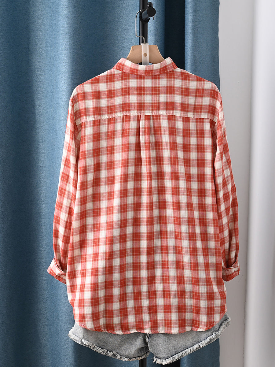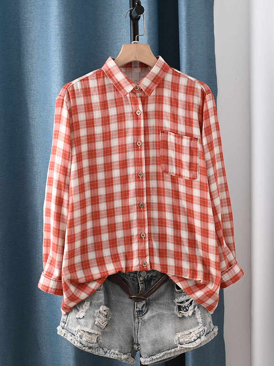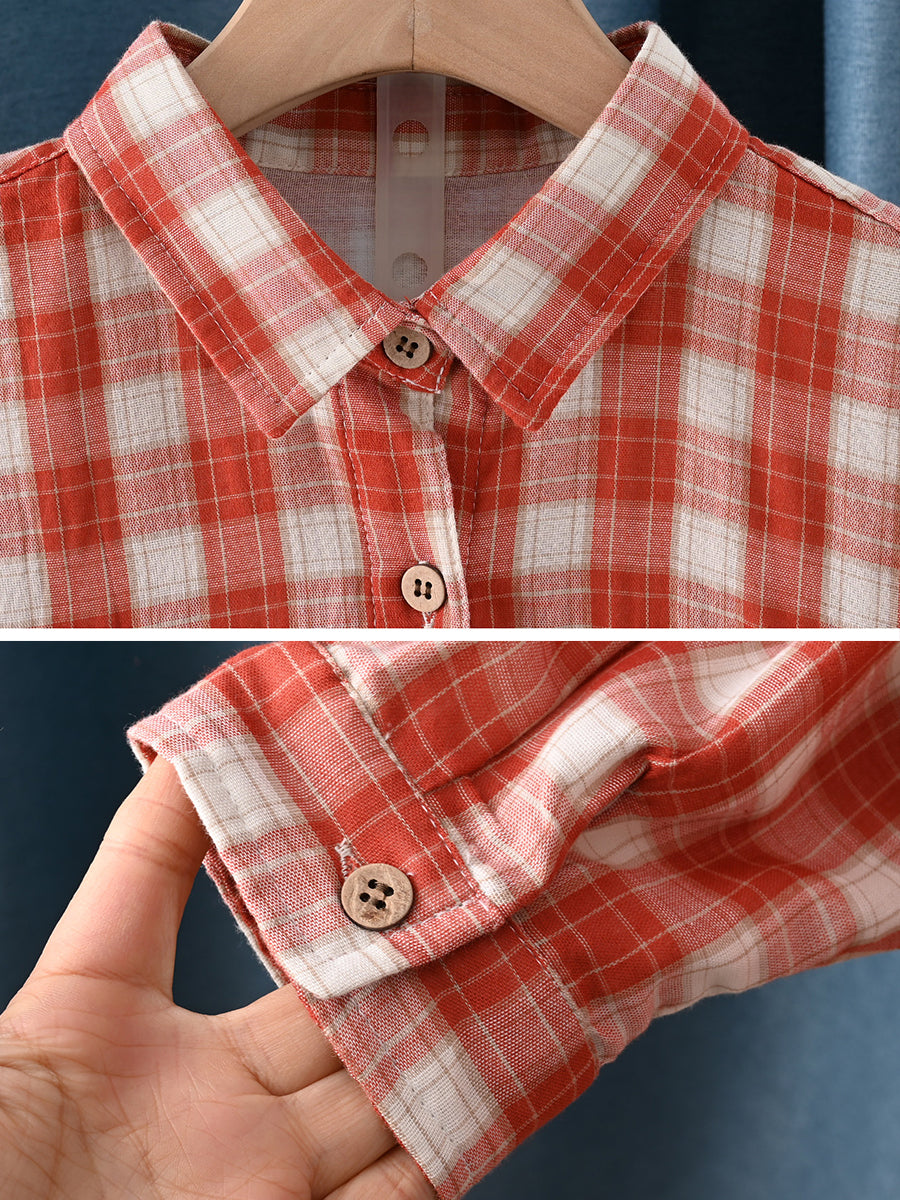 Chemise à carreaux printanière pour femme, col rabattu, 100 % coton