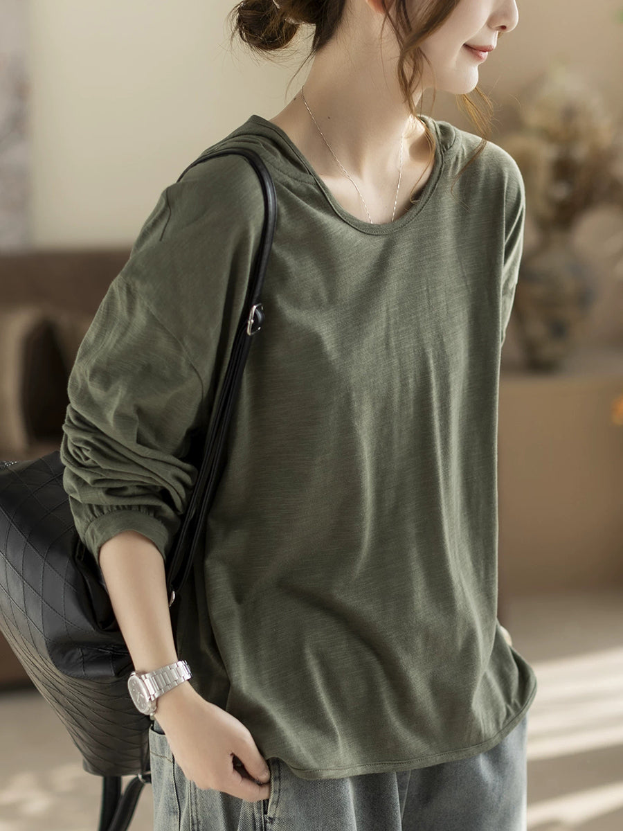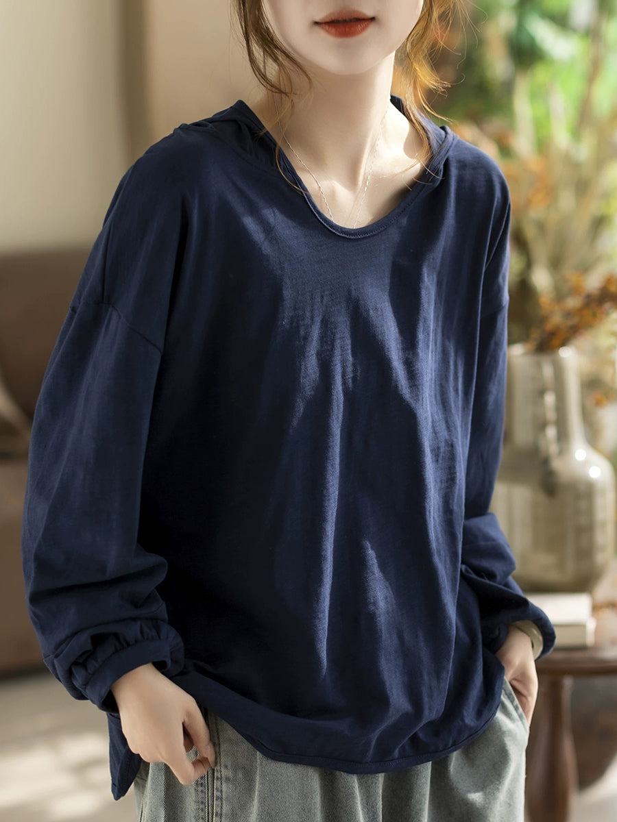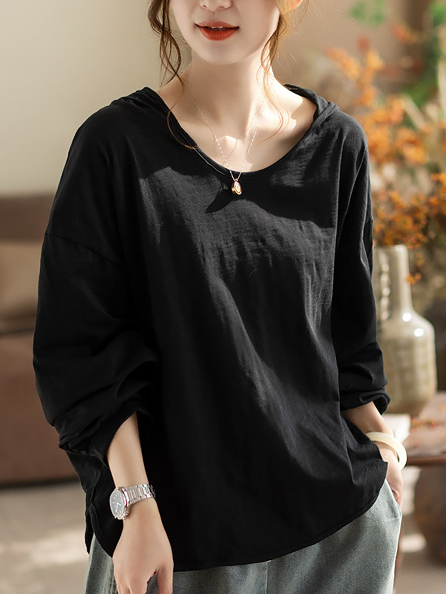 Sweat à capuche printemps femme, style artistique, couleur unie, 100 % coton