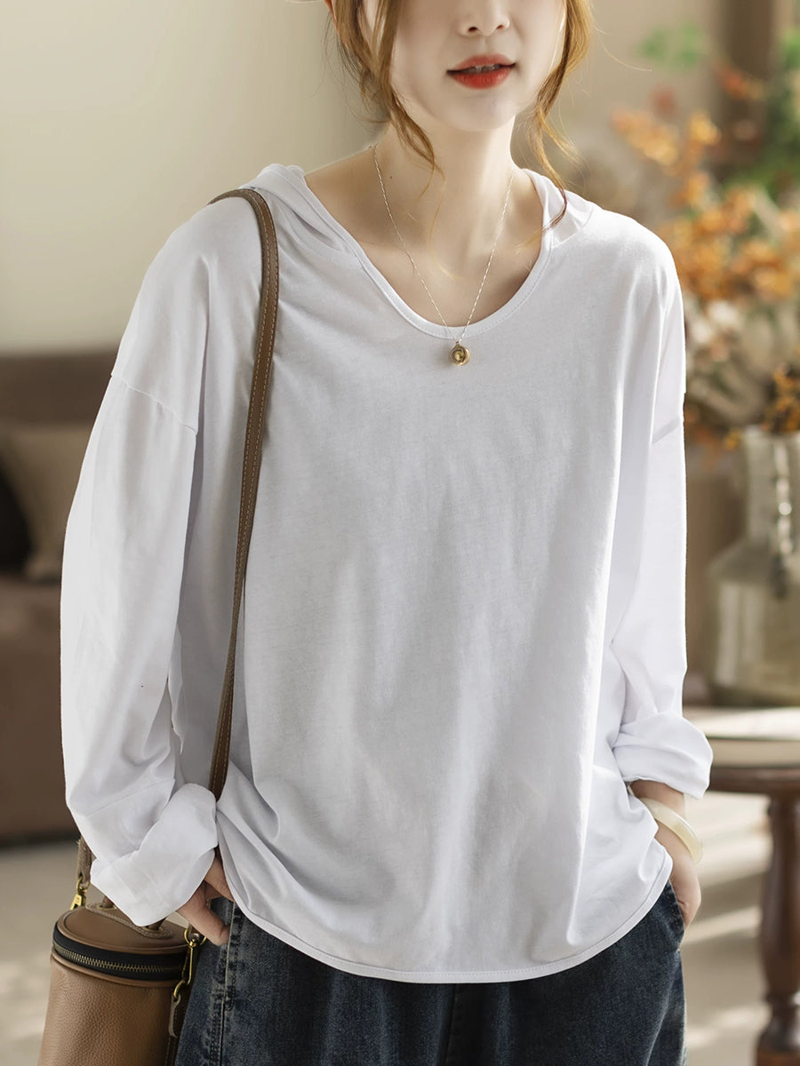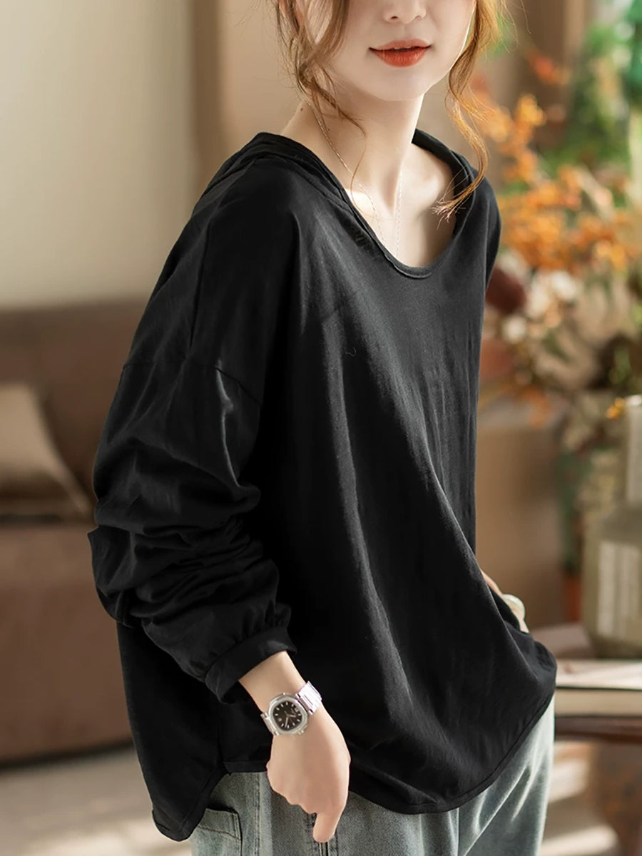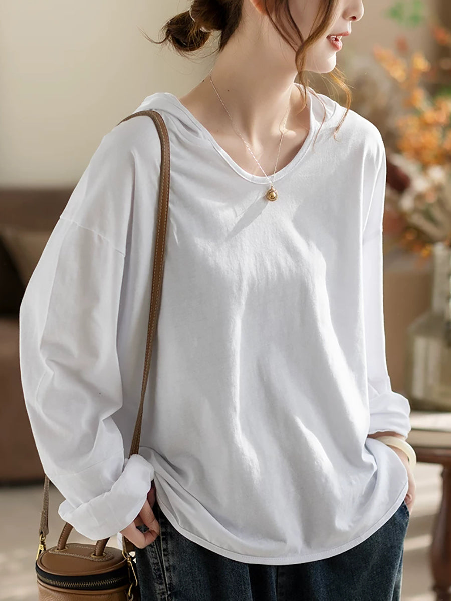 Sweat à capuche printemps femme, style artistique, couleur unie, 100 % coton