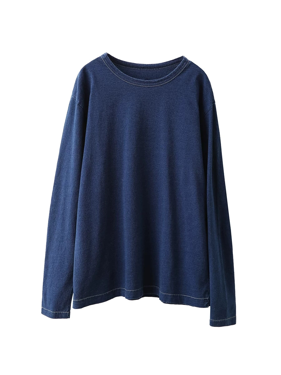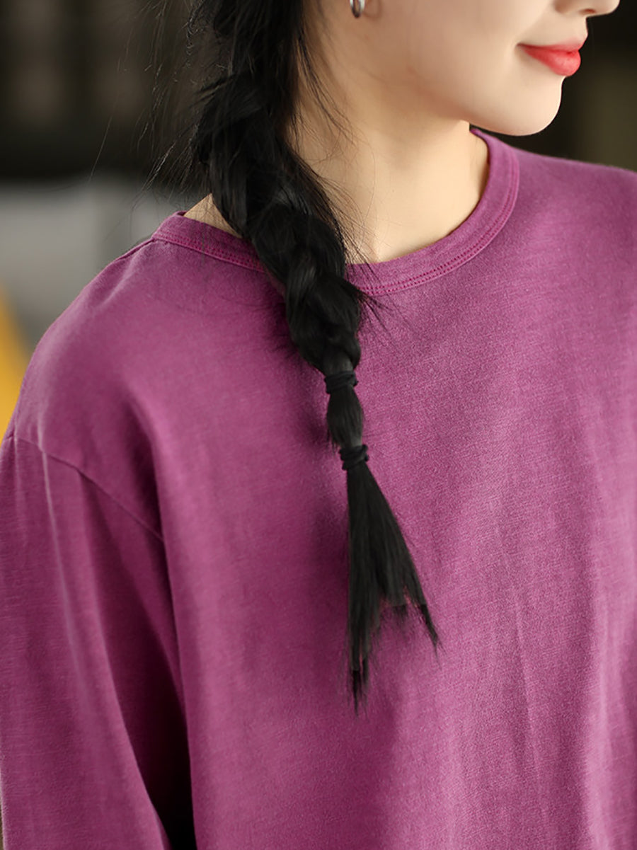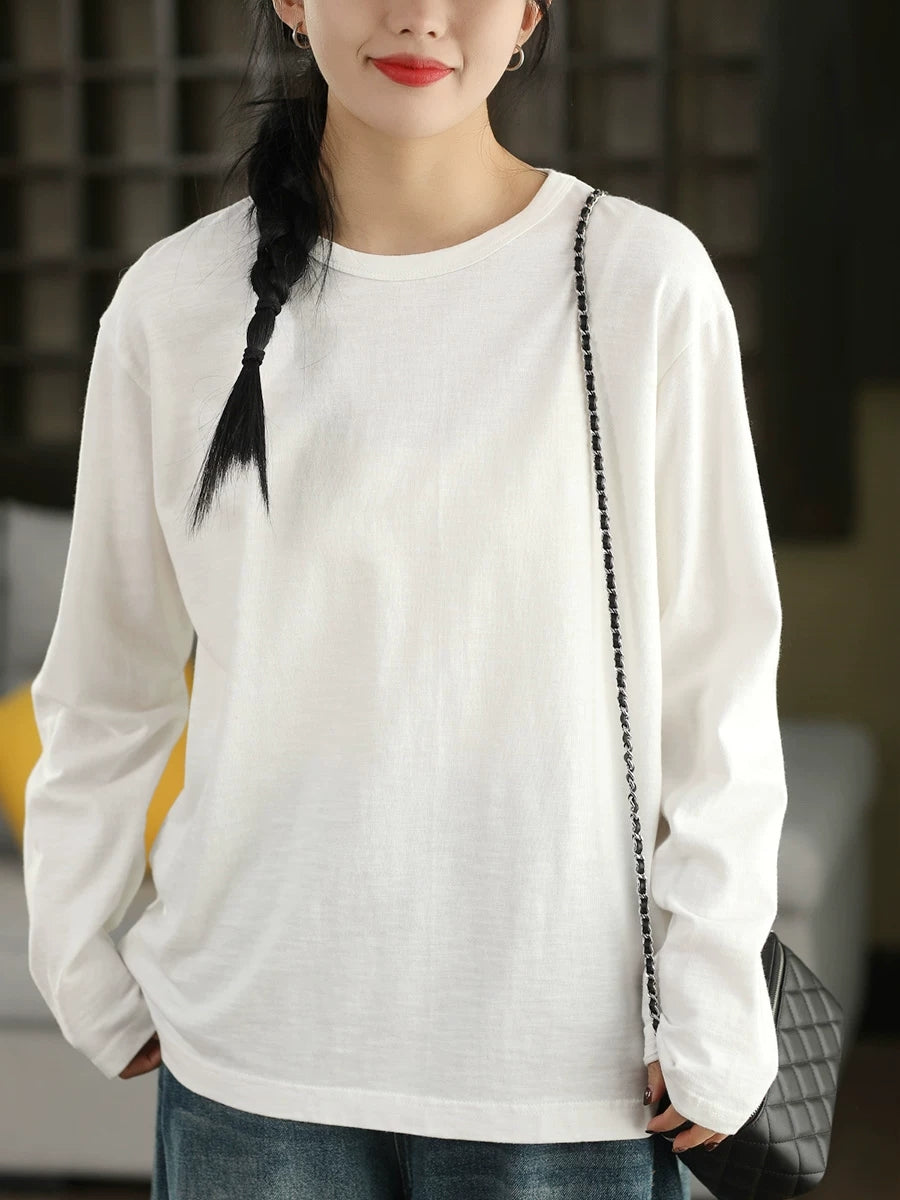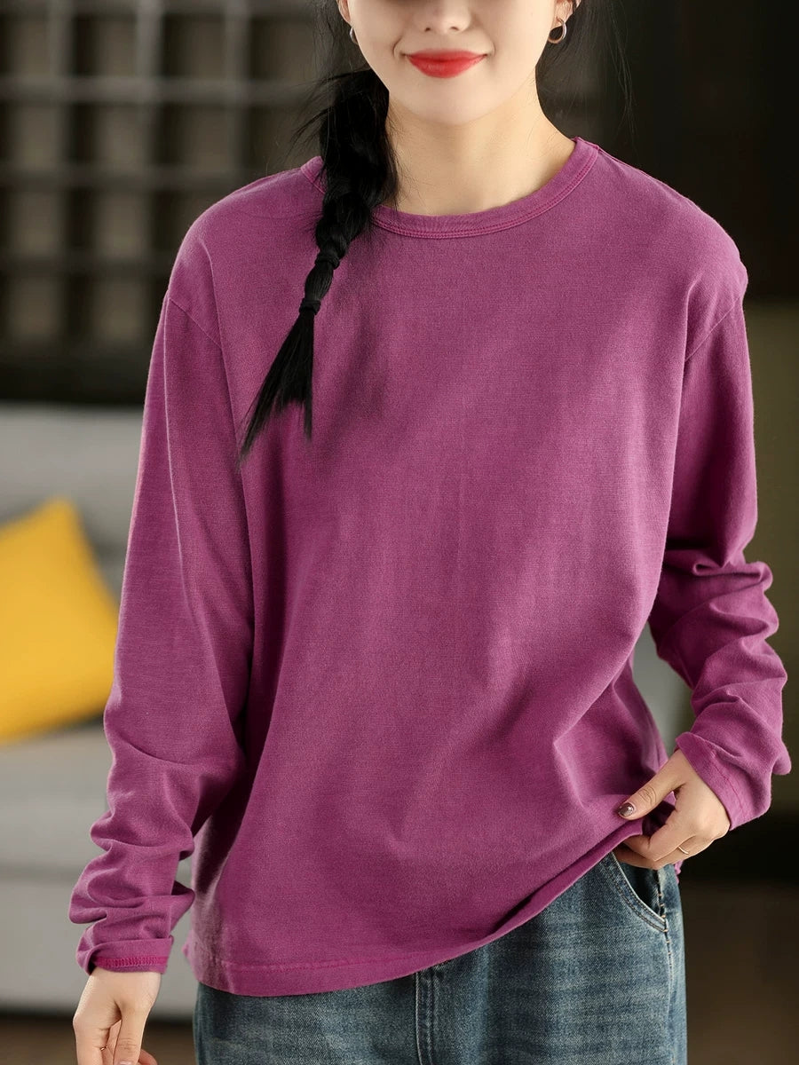 Chemisier printanier pour femme, style artistique, couleur unie, 100 % coton, col rond