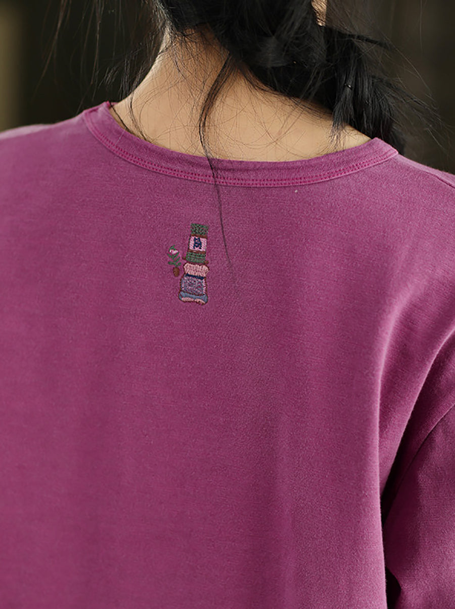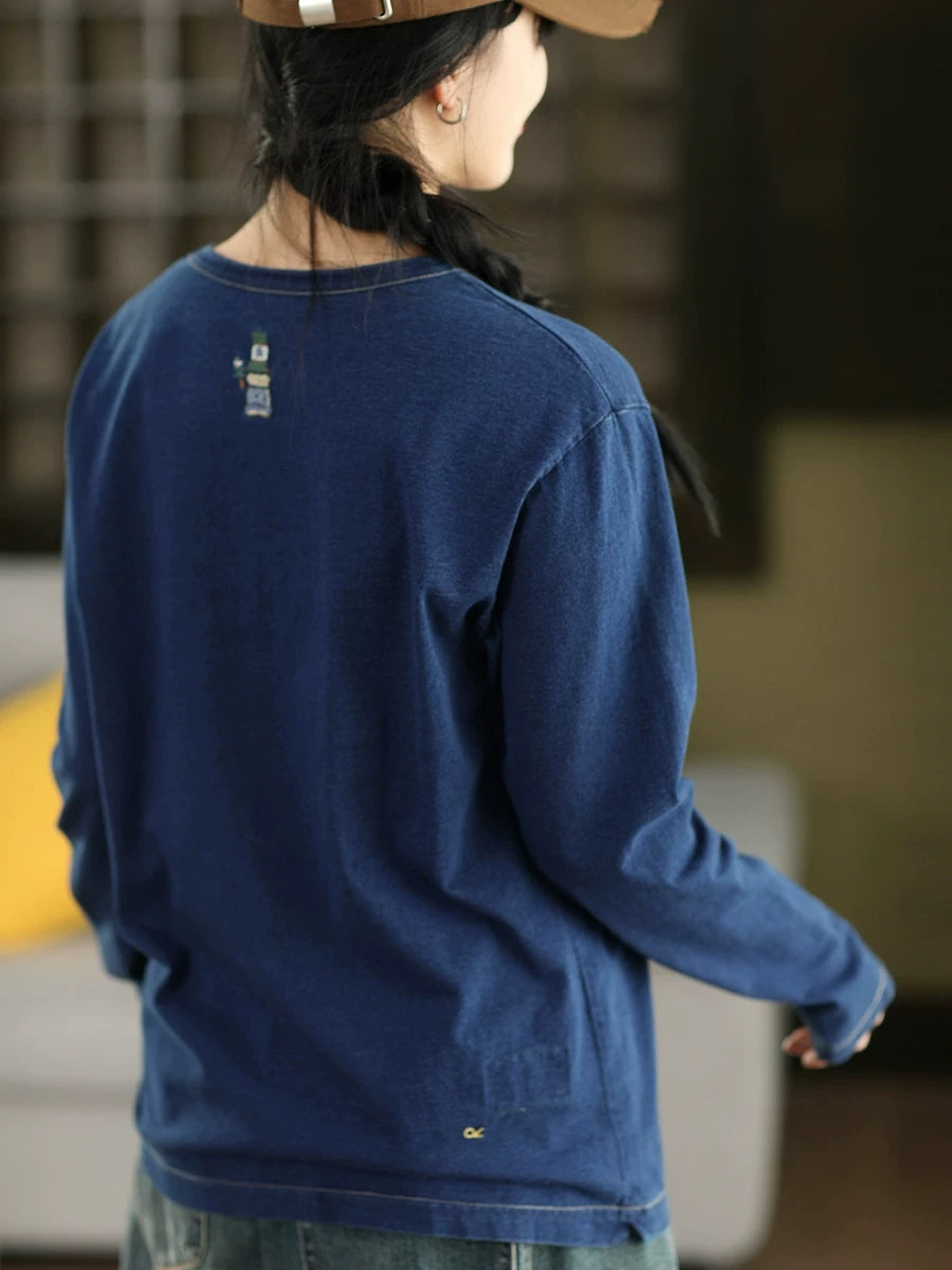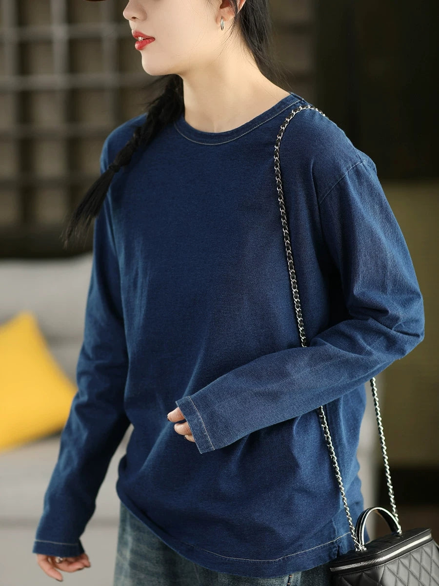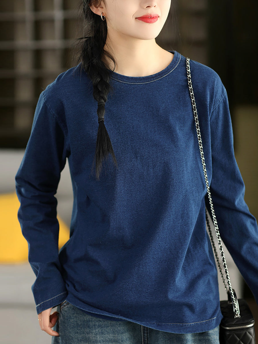 Chemisier printanier pour femme, style artistique, couleur unie, 100 % coton, col rond