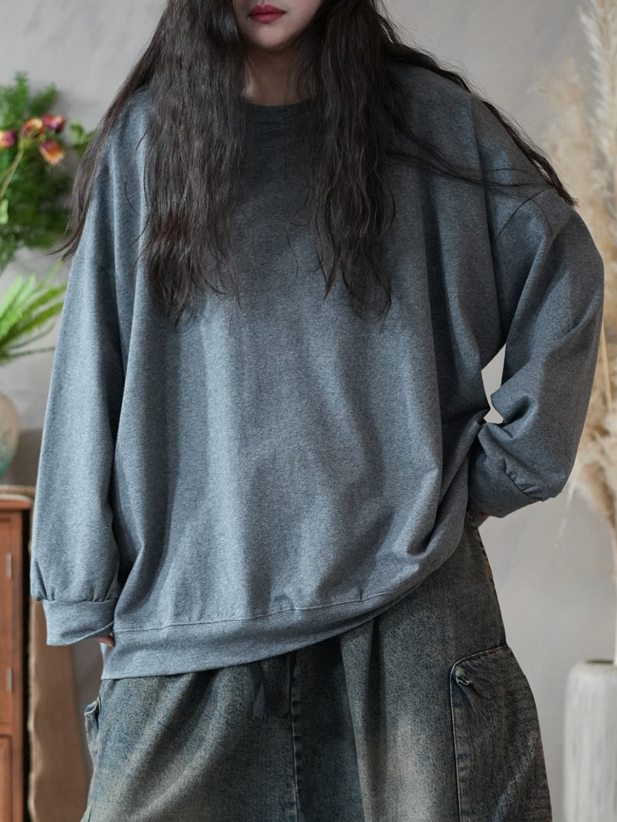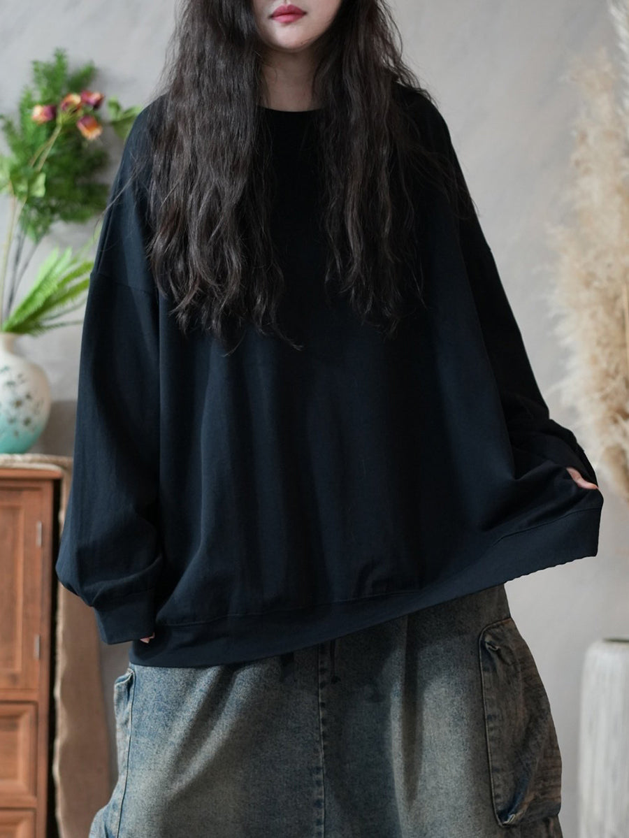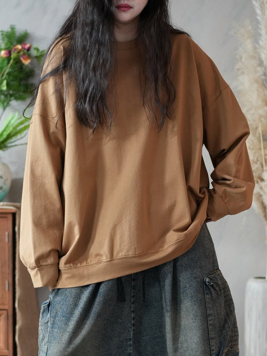 Chemisier printanier pour femme, style artistique, couleur unie, 100 % coton, col rond