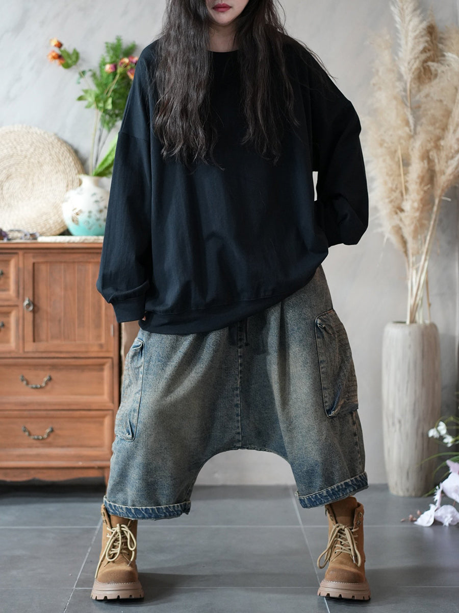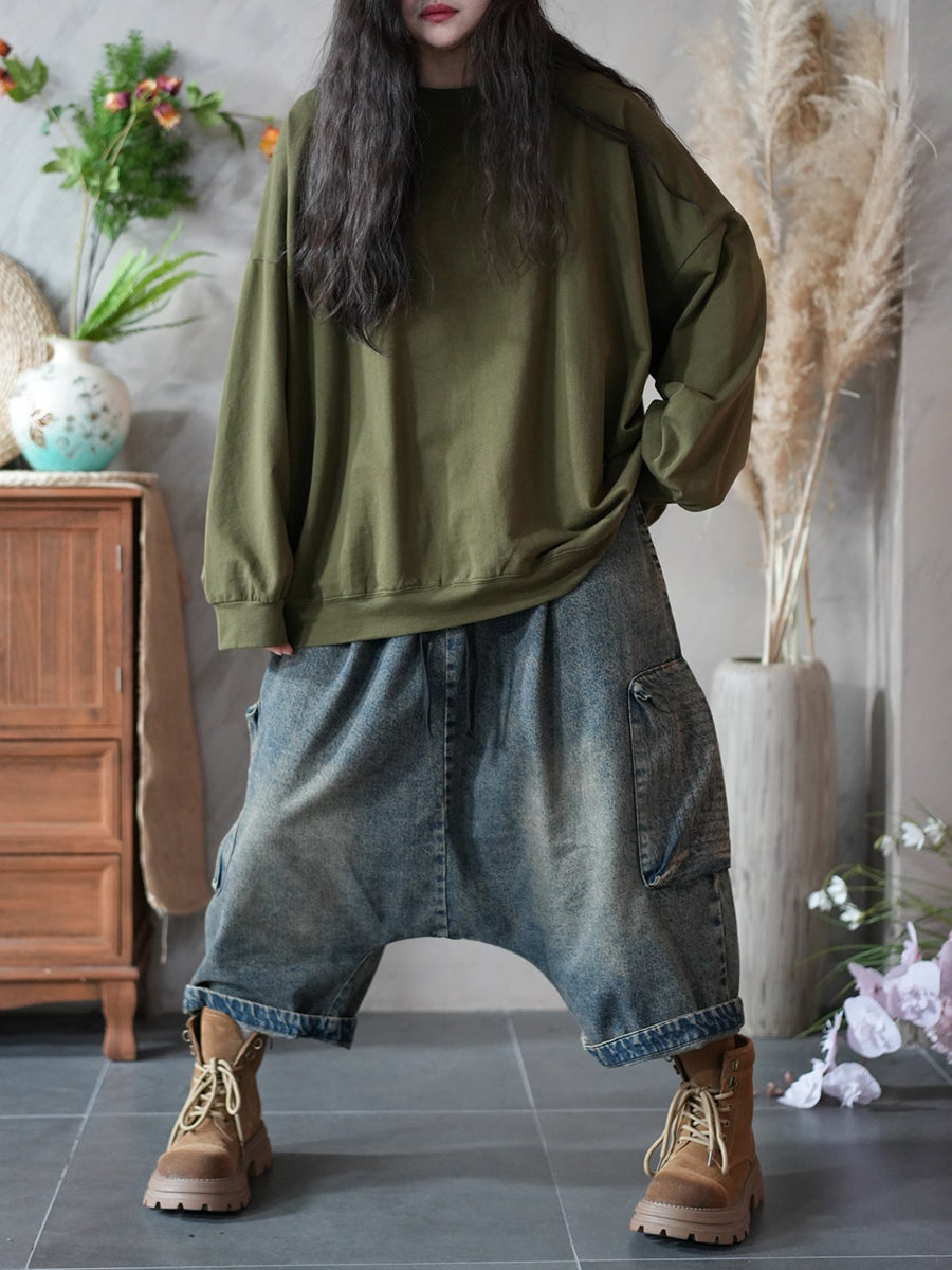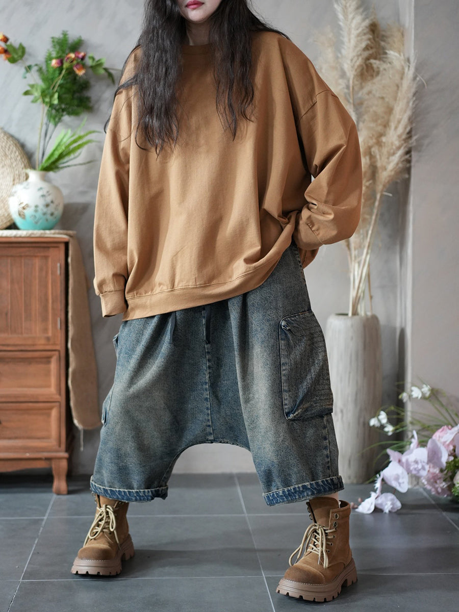 Chemisier printanier pour femme, style artistique, couleur unie, 100 % coton, col rond
