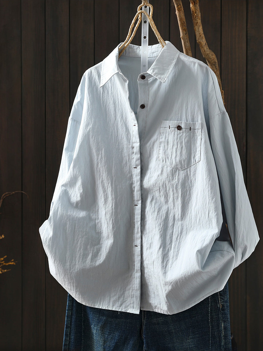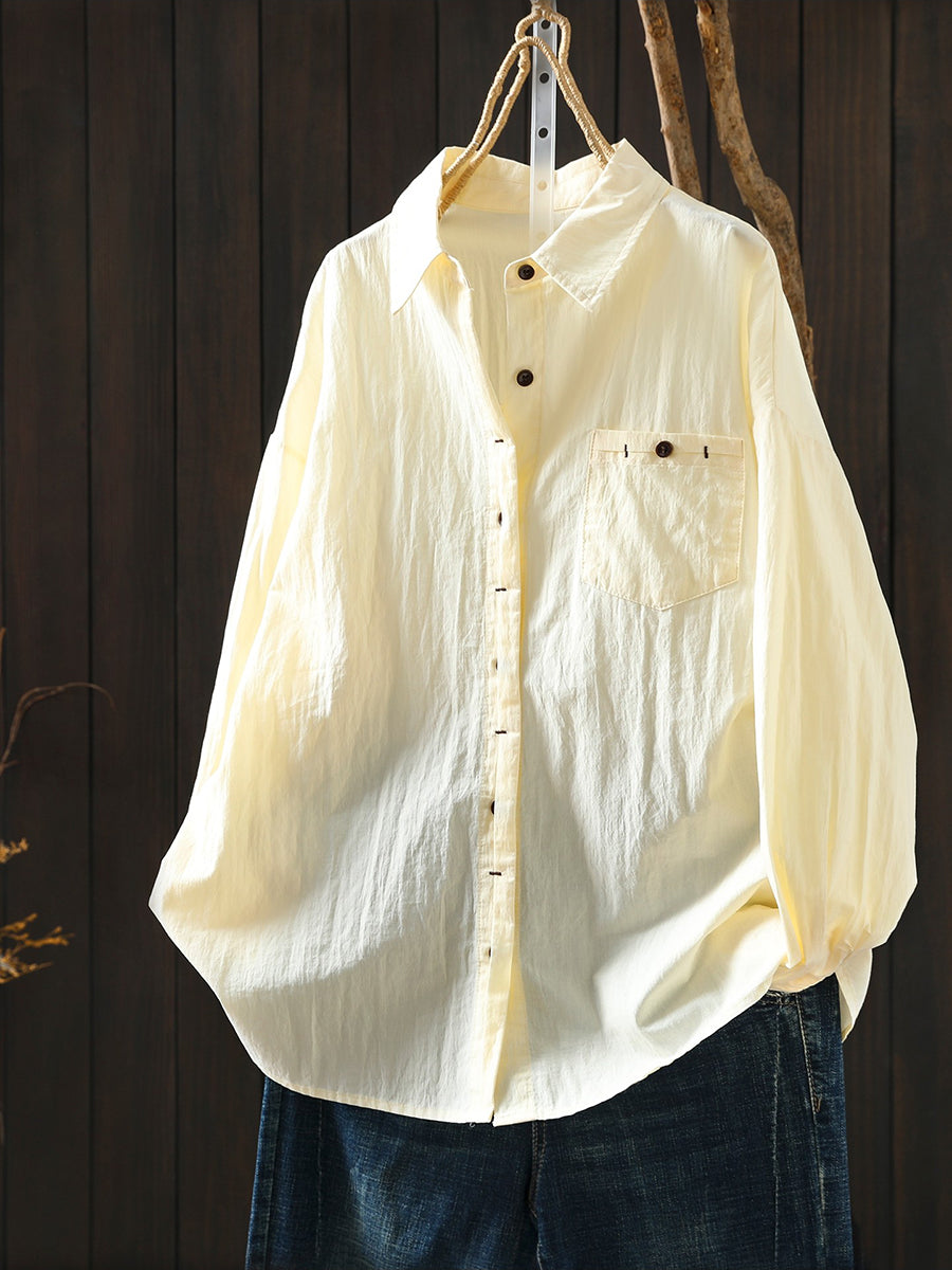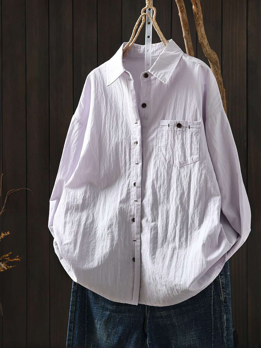 Chemise printemps femme style artistique, couleur unie, 100% coton