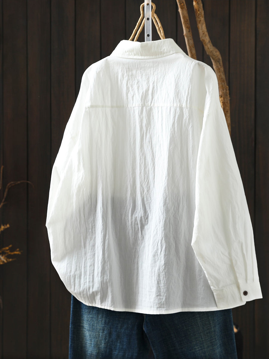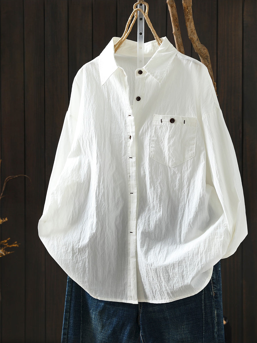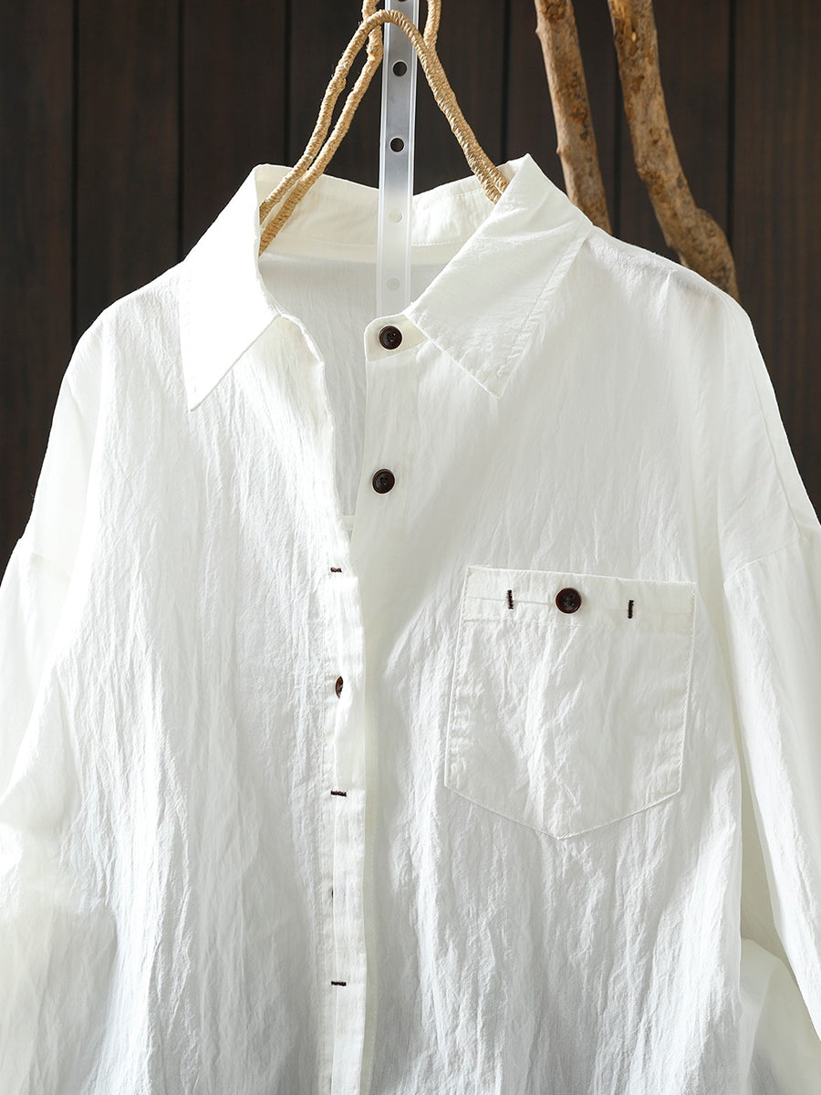 Chemise printemps femme style artistique, couleur unie, 100% coton