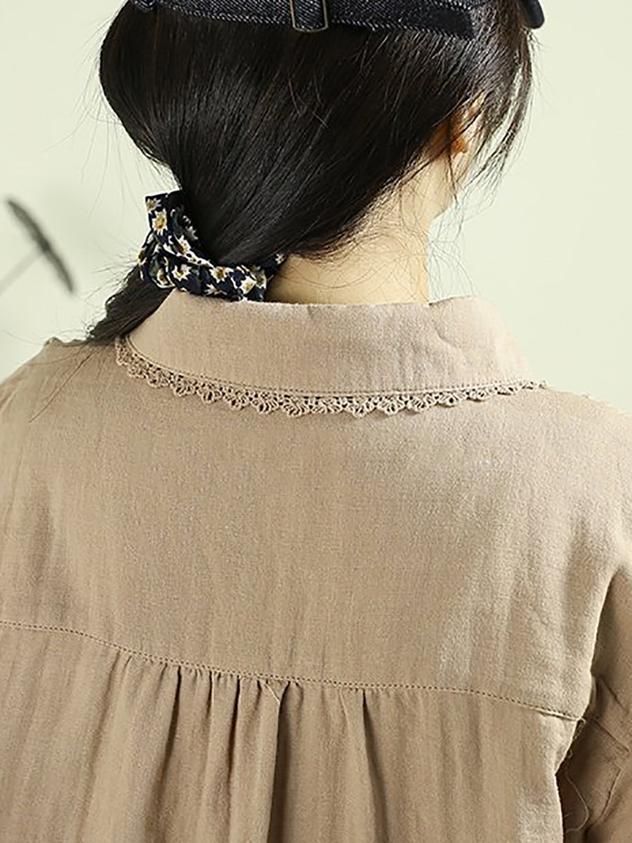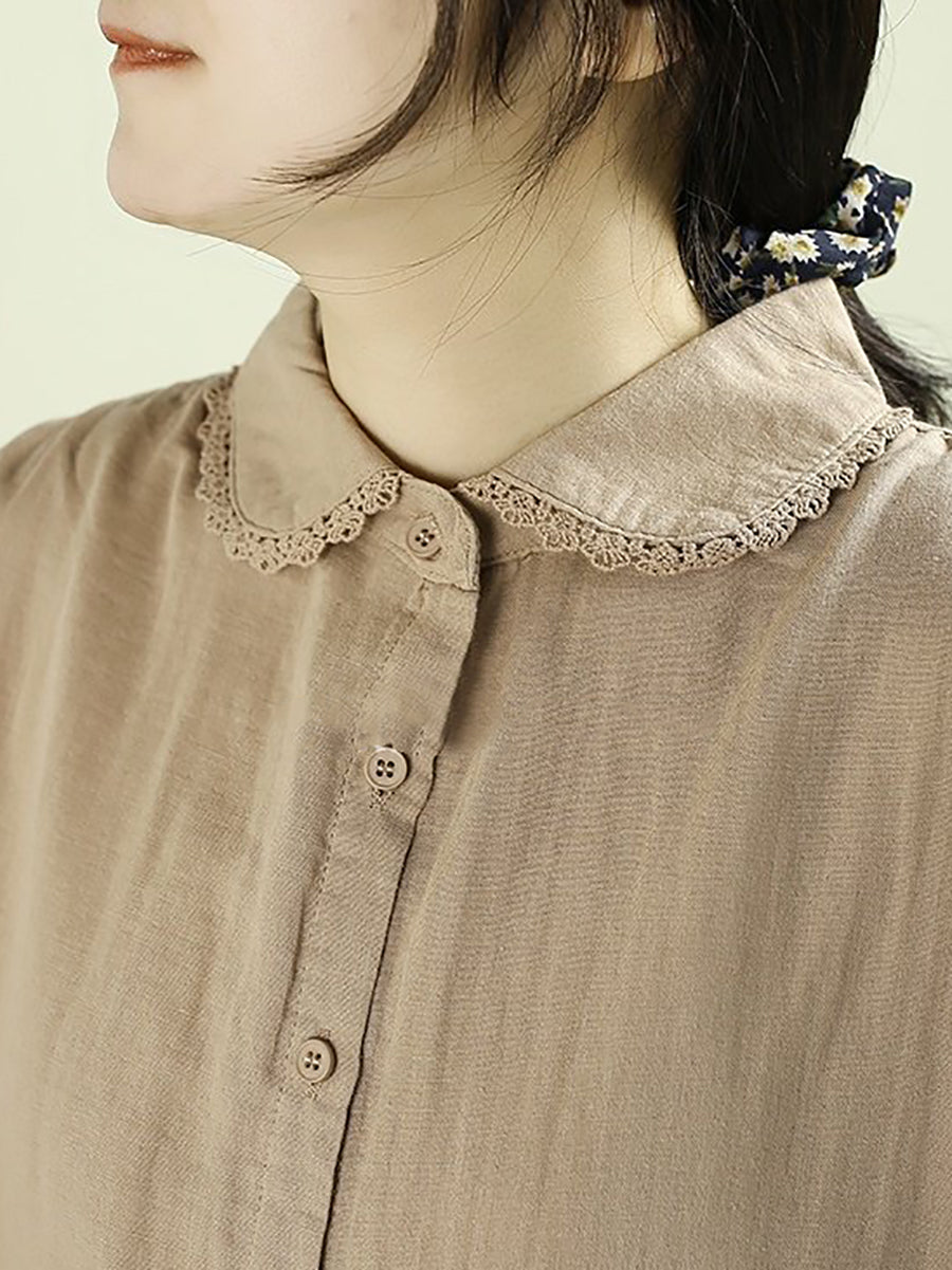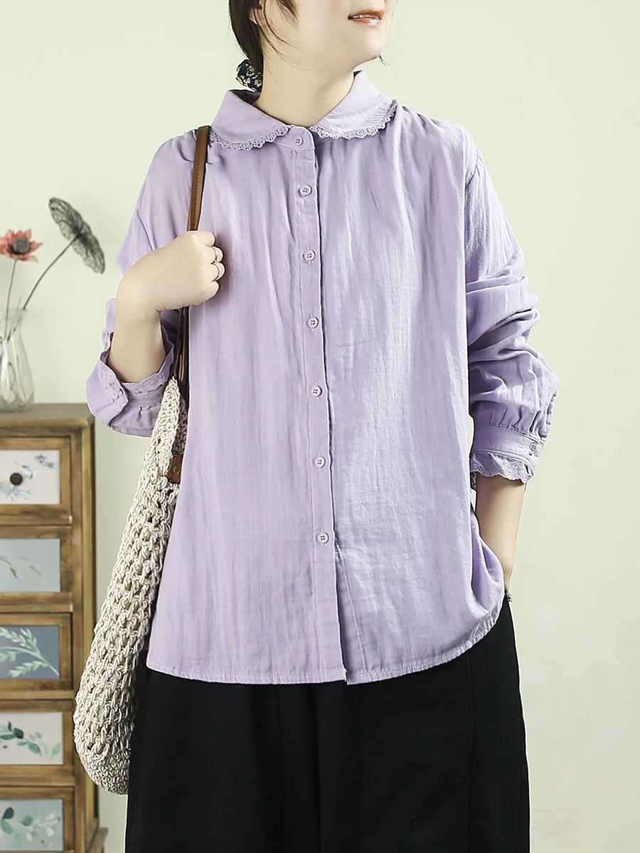 Chemise printemps femme style artistique, couleur unie, 100 % coton, col rabattu