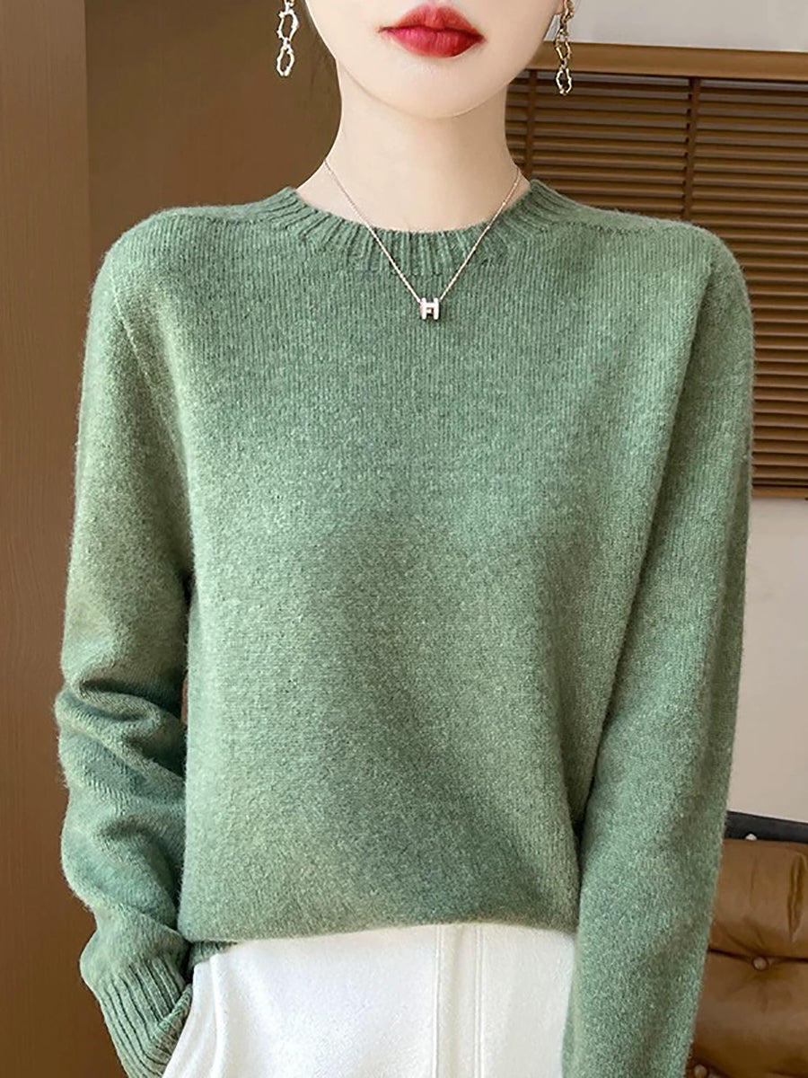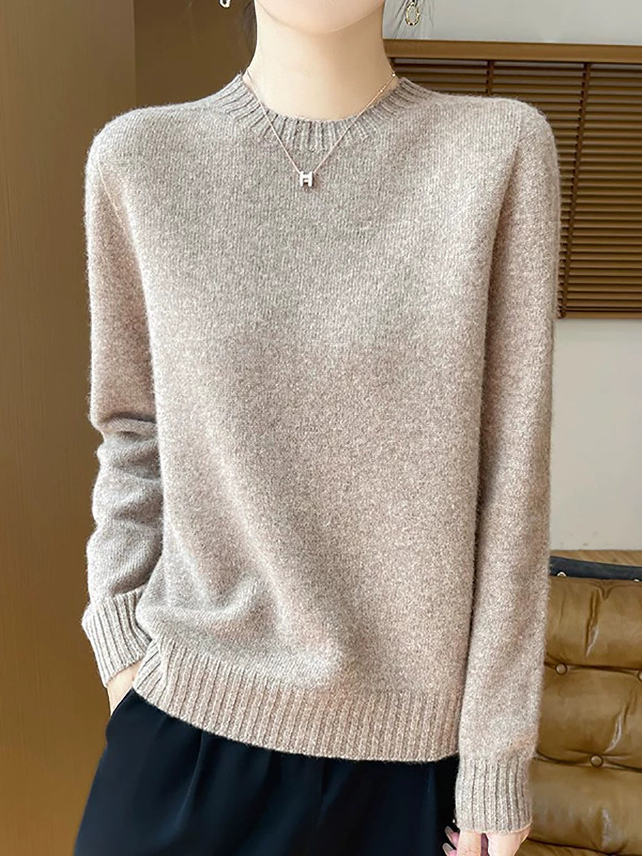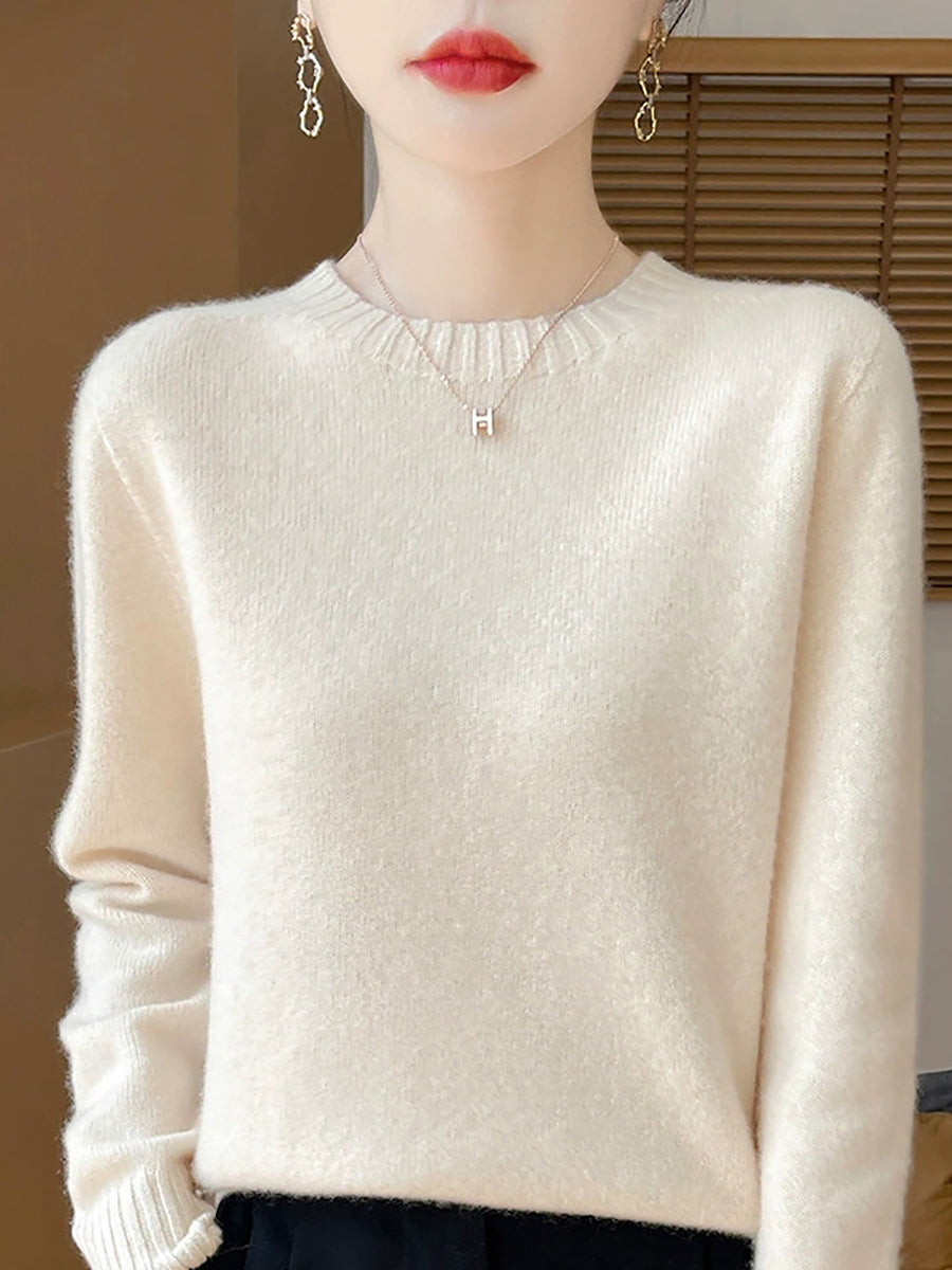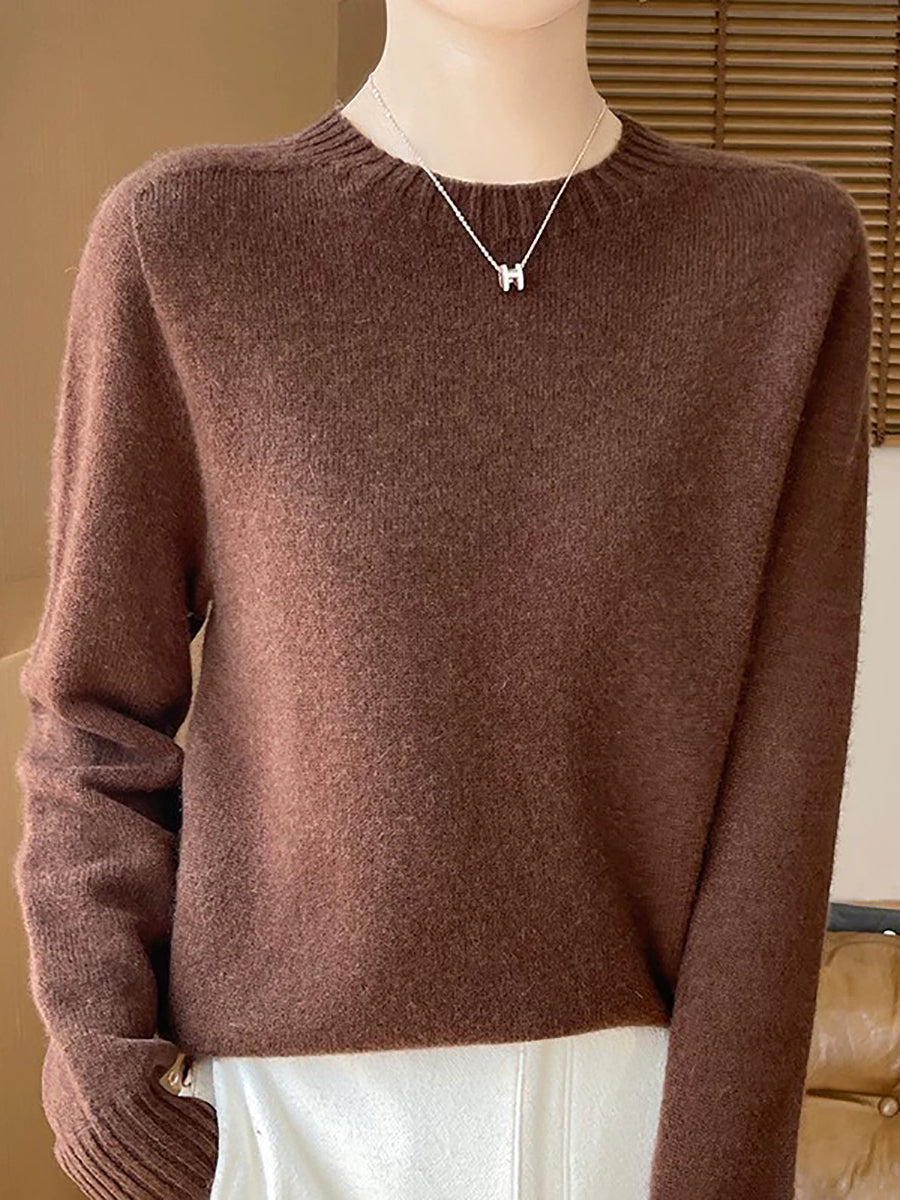 Pull en laine à col rond uni, style artistique, pour femme