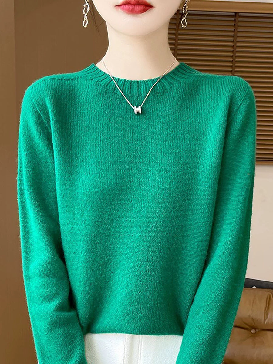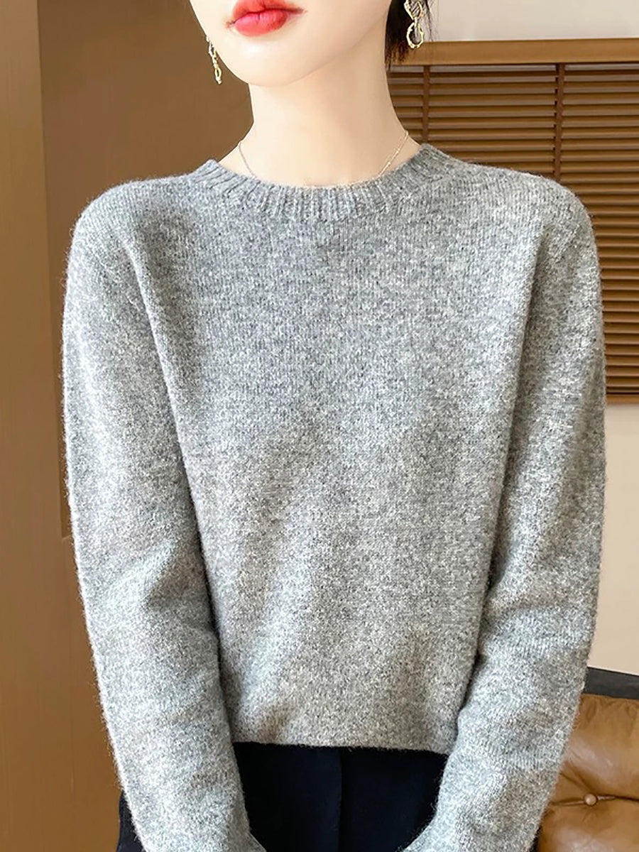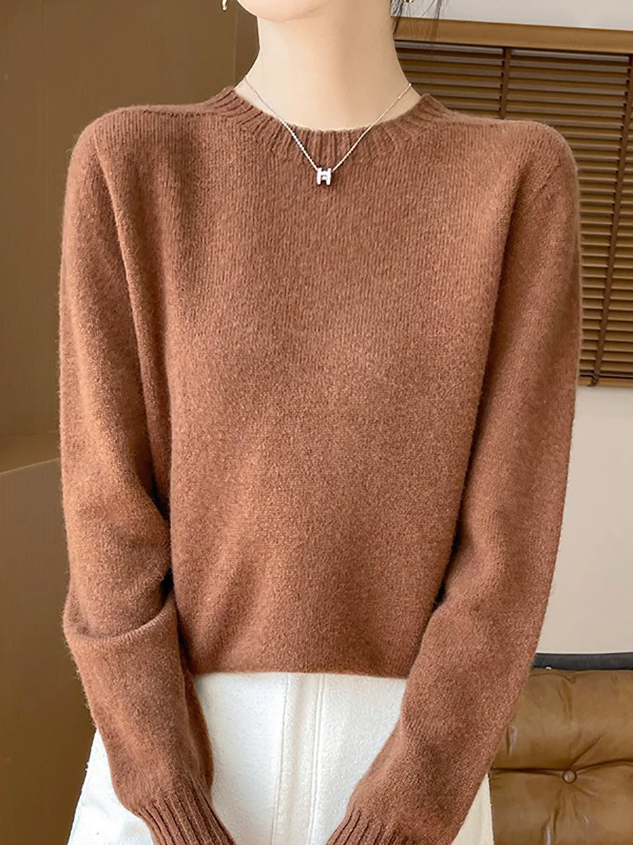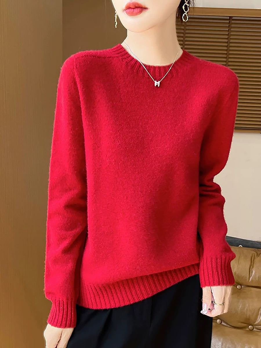 Pull en laine à col rond uni, style artistique, pour femme