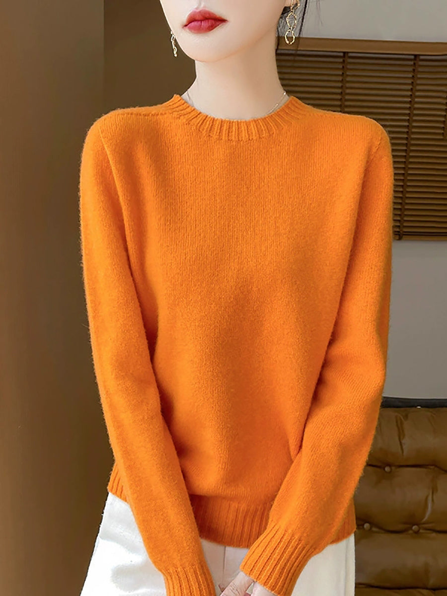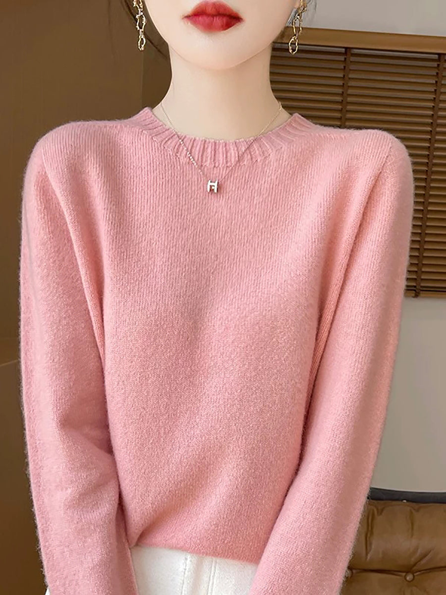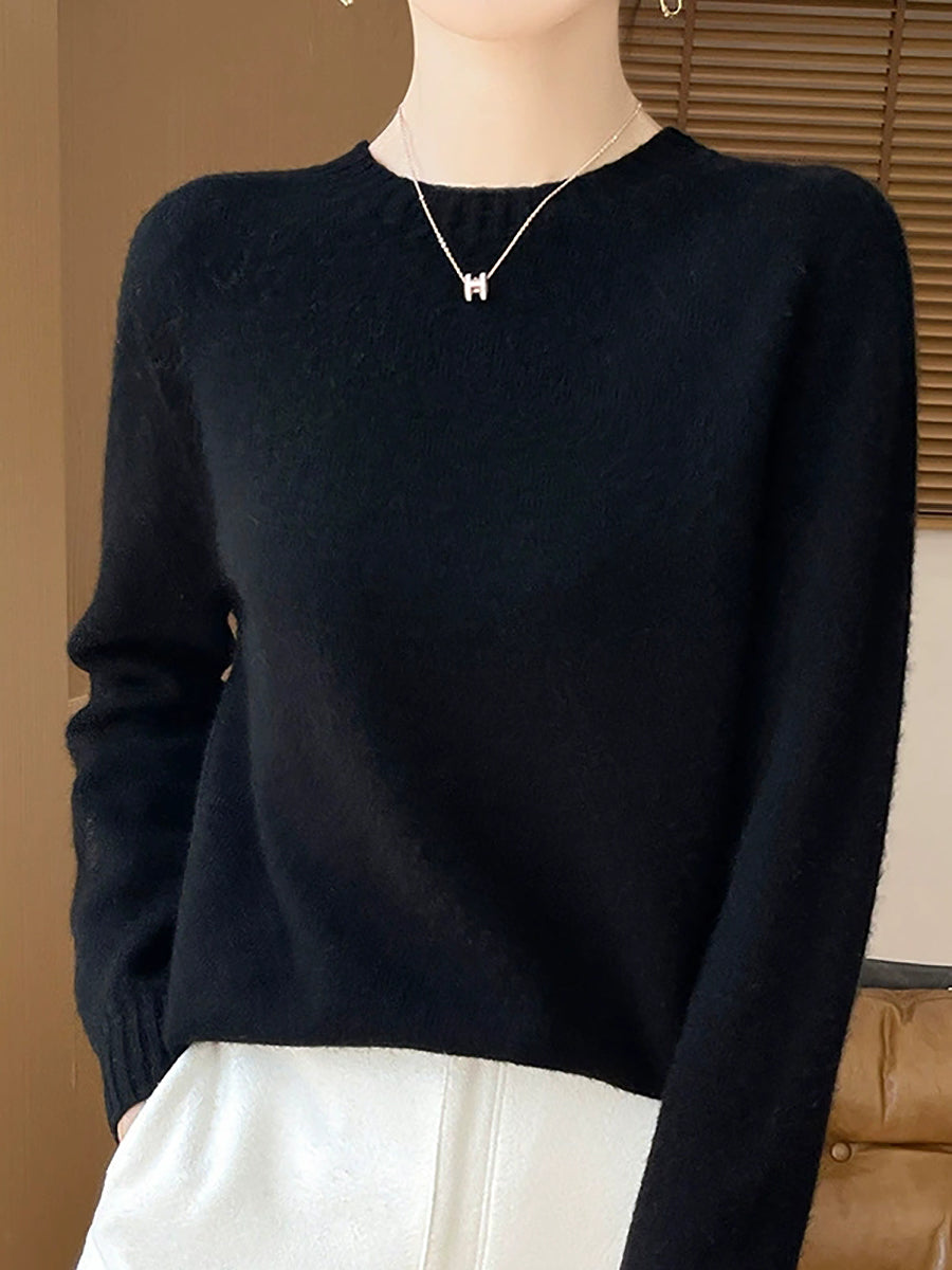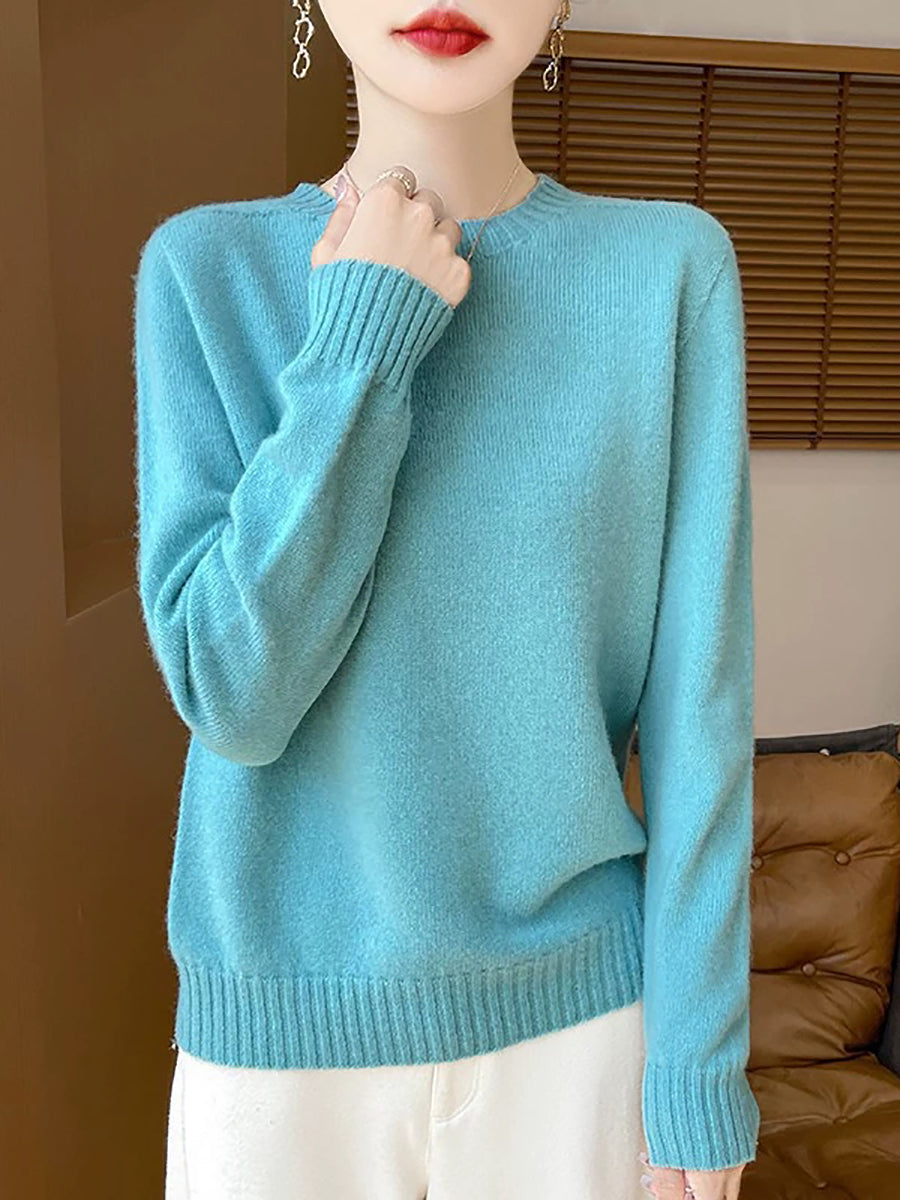 Pull en laine à col rond uni, style artistique, pour femme