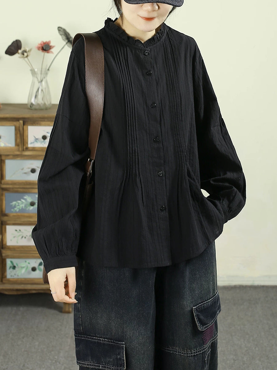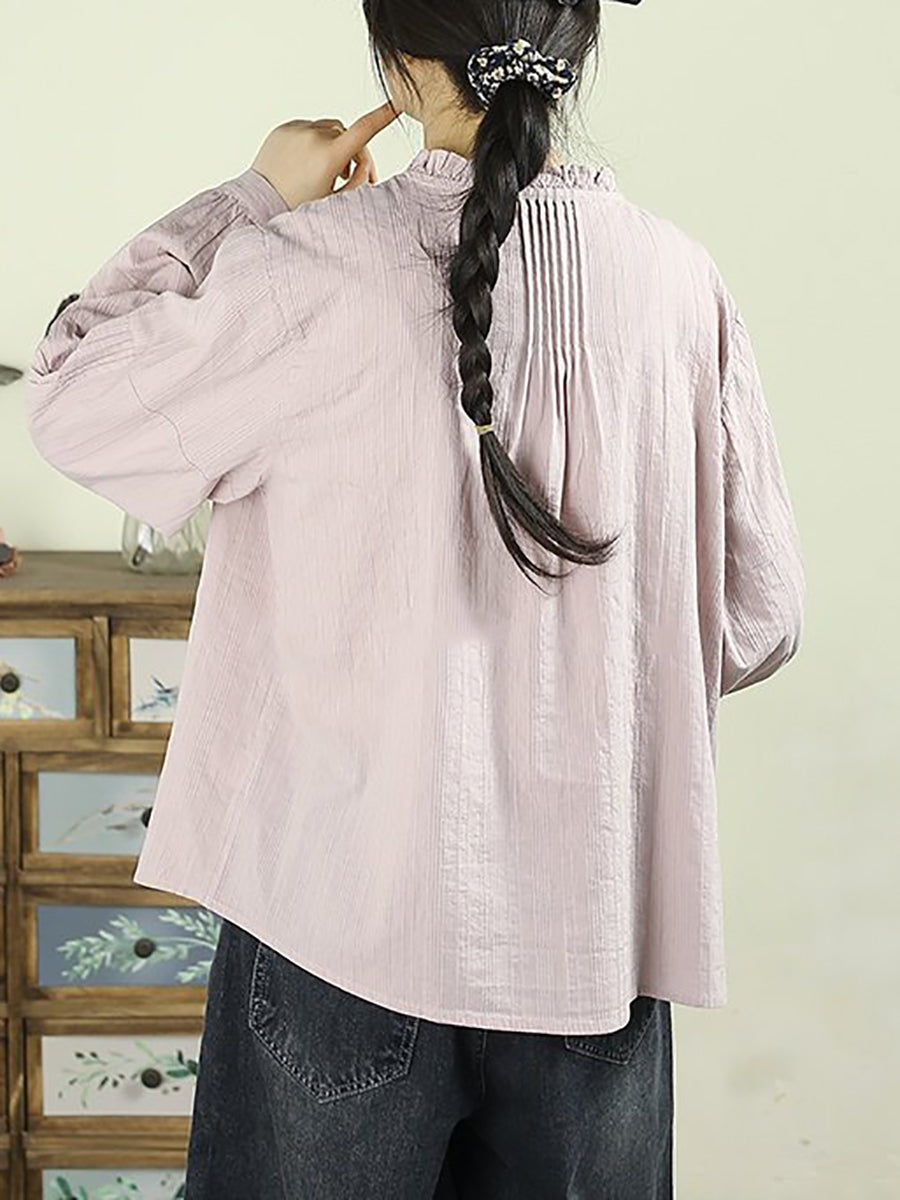 Chemise à col montant slo-color uni artistique pour femme, style printemps