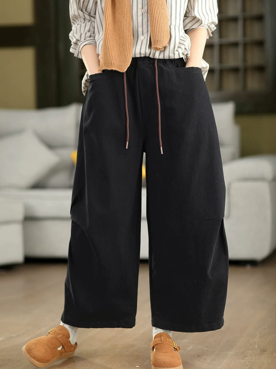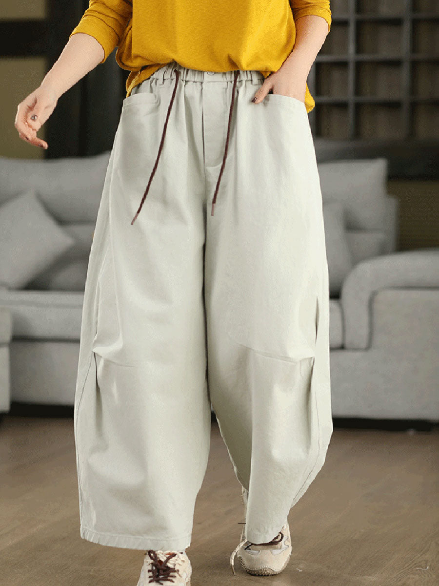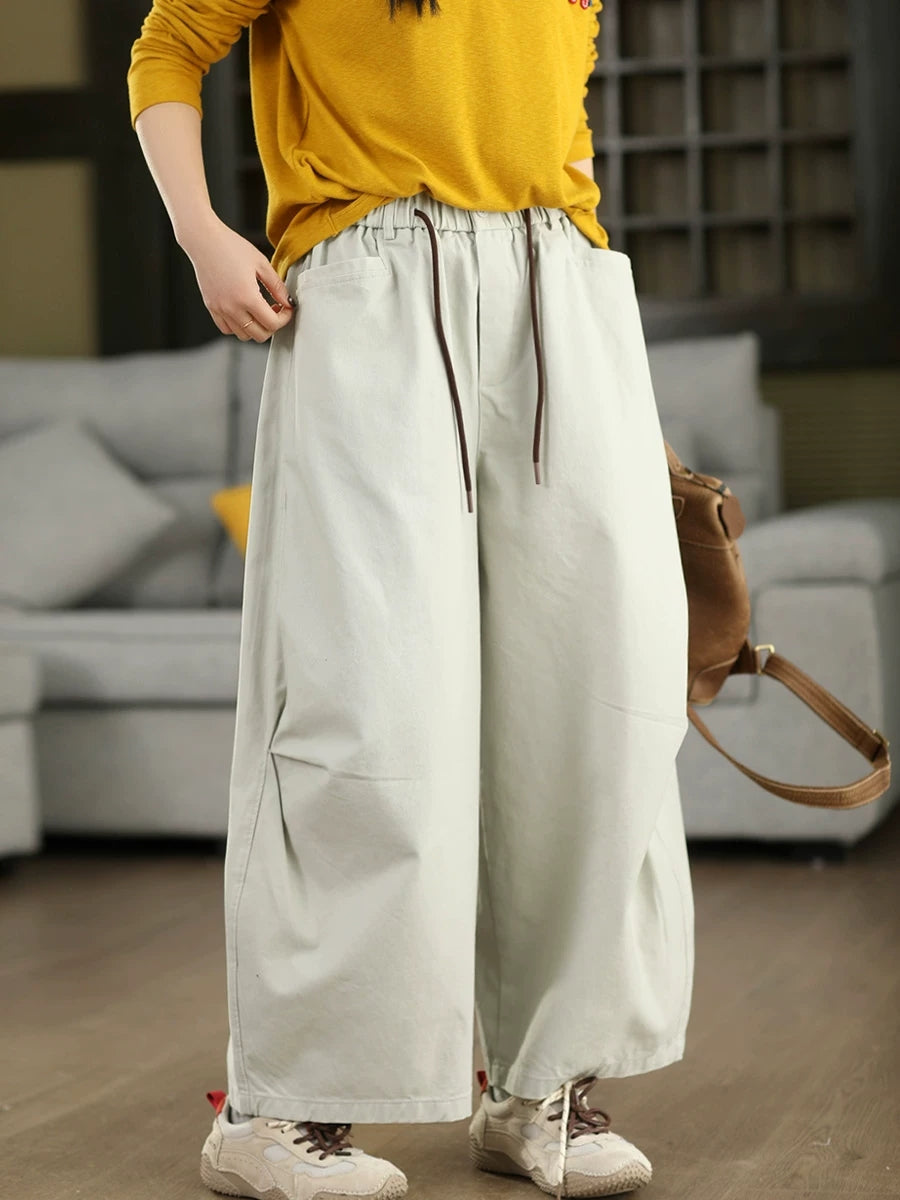 Pantalon droit décontracté printemps femme couleur unie 100% coton