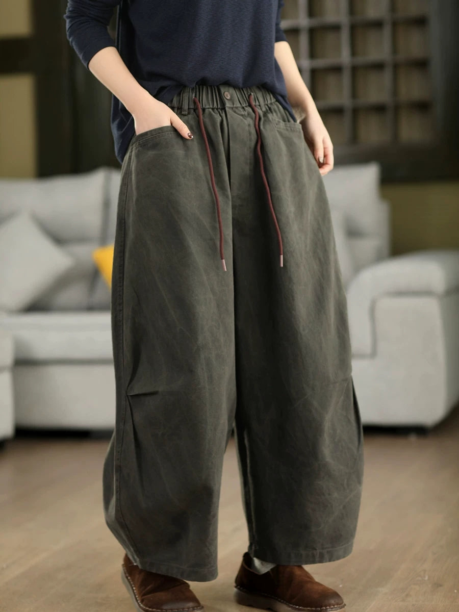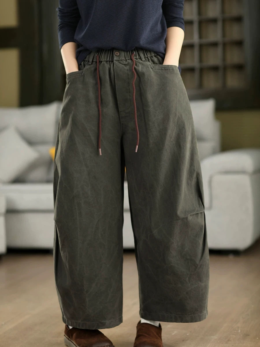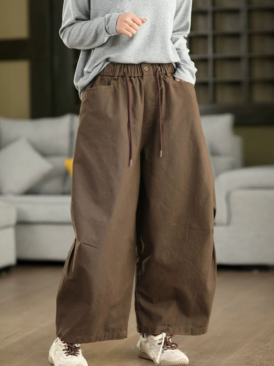 Pantalon droit décontracté printemps femme couleur unie 100% coton