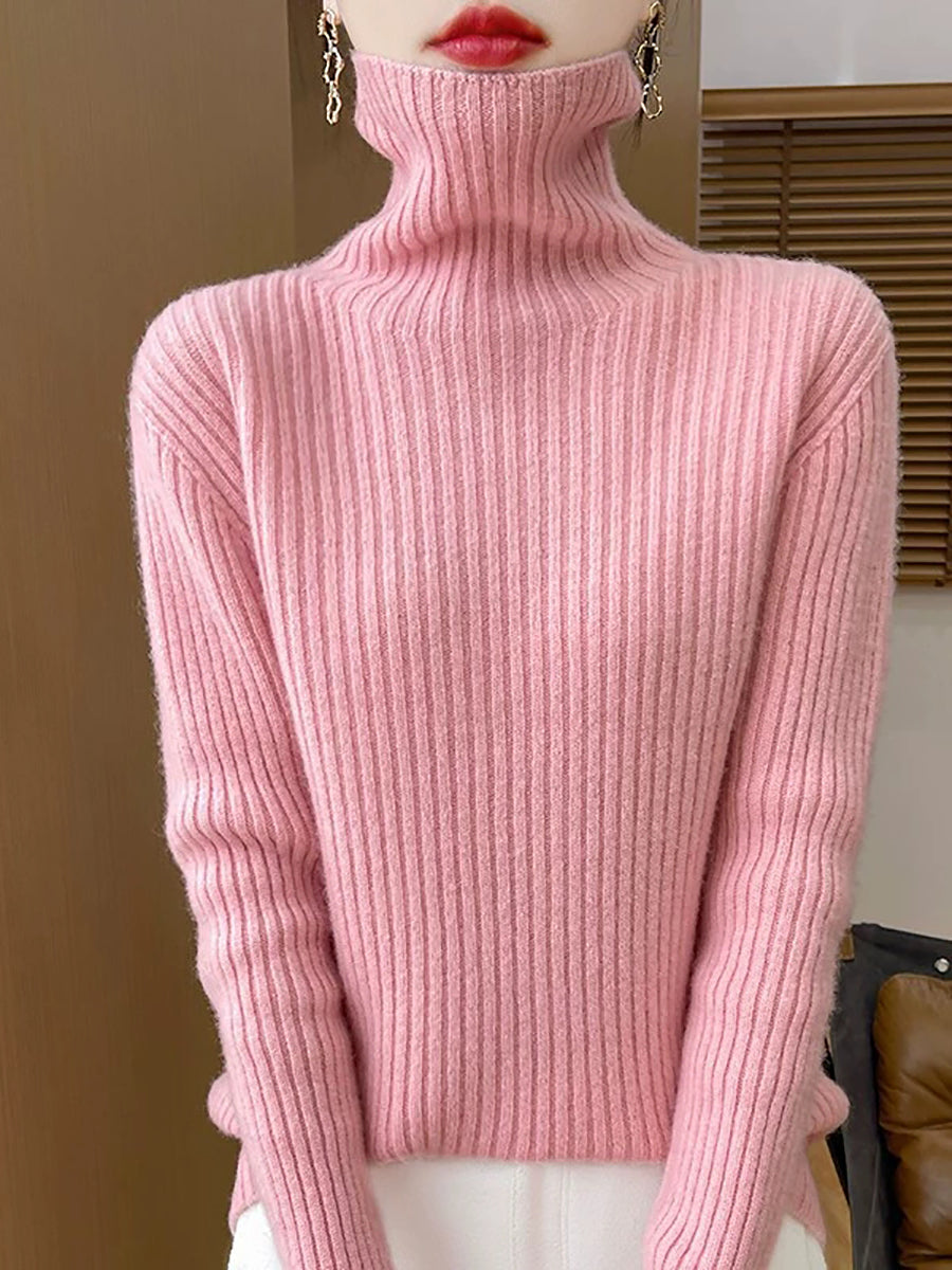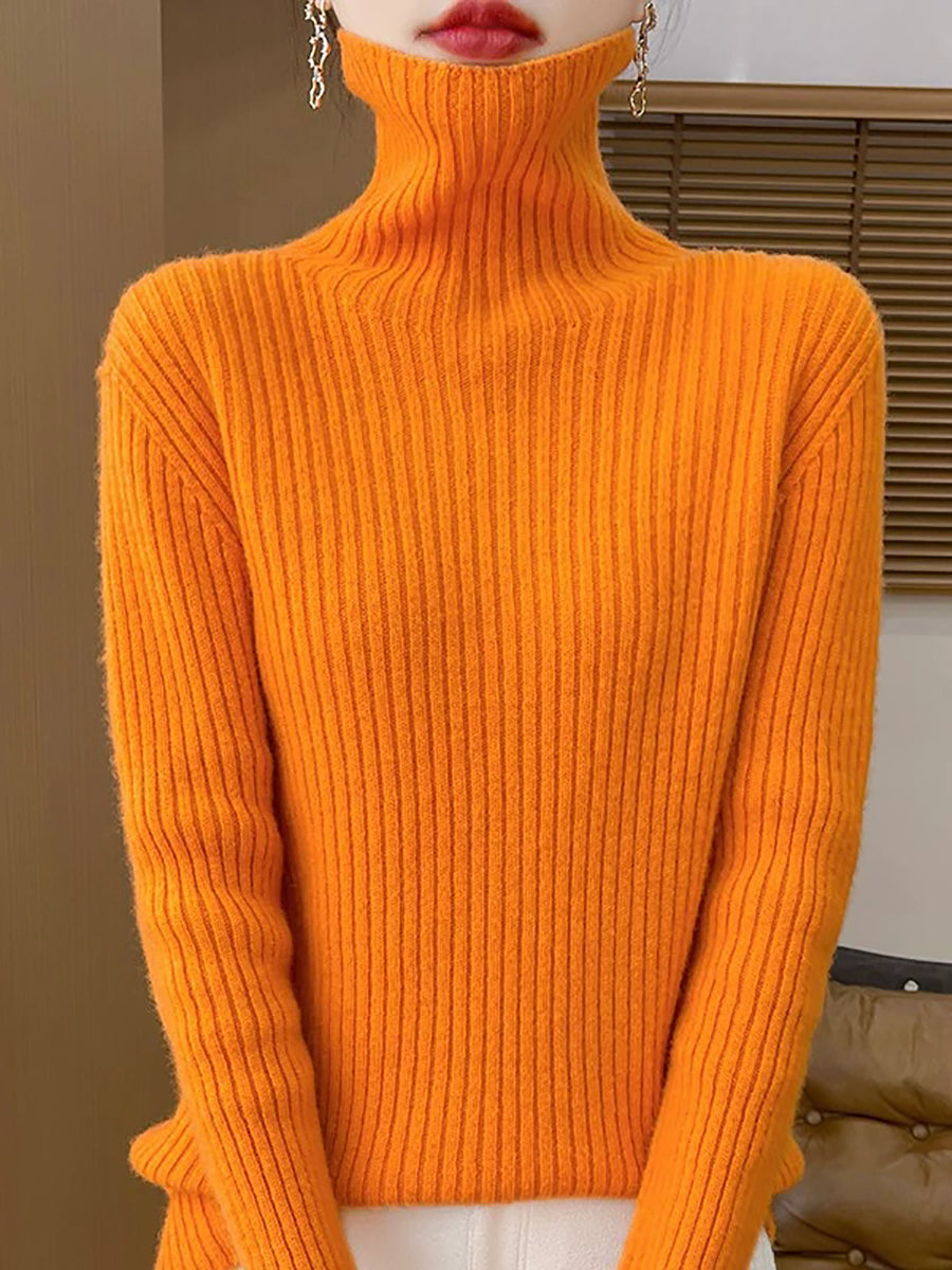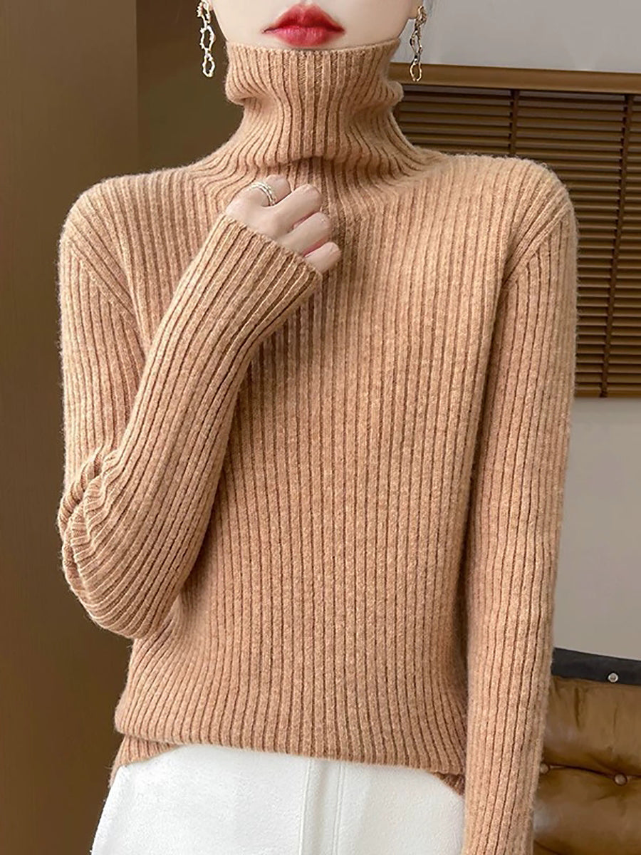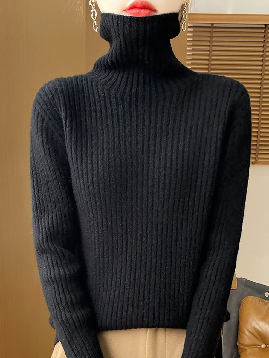 Pull en laine à col roulé uni pour femme, style décontracté printanier