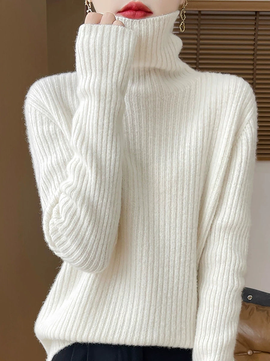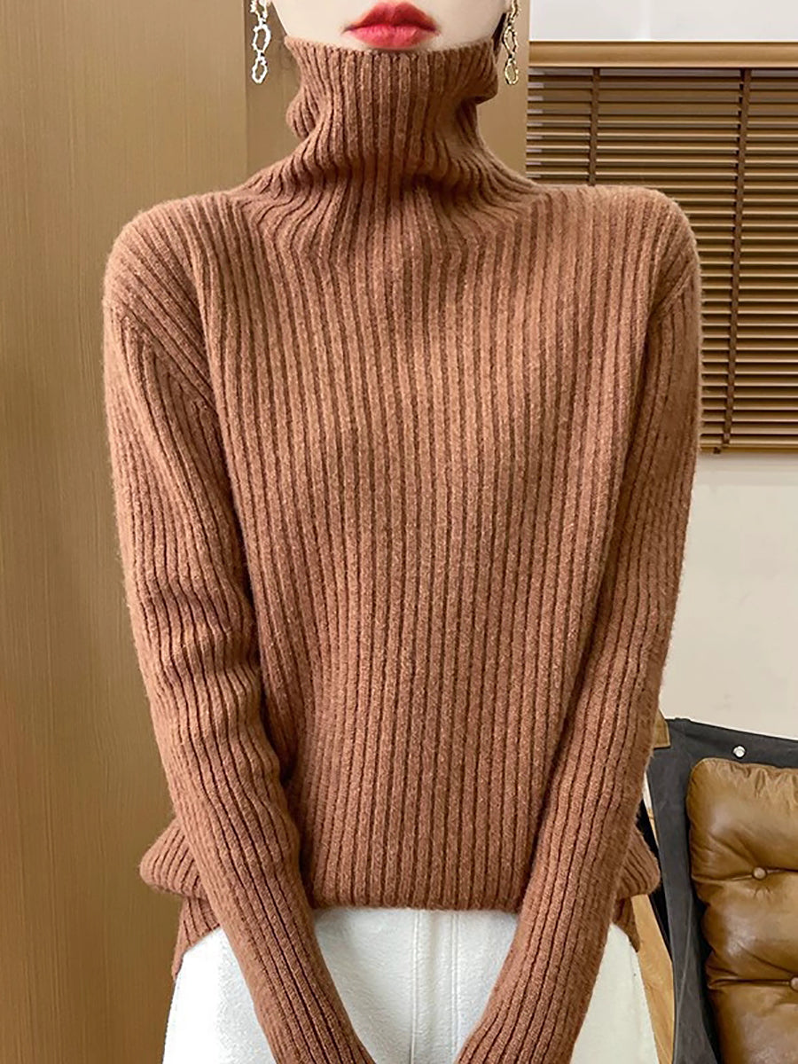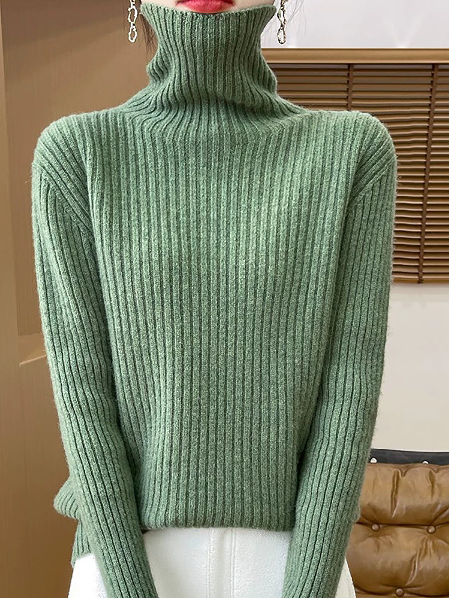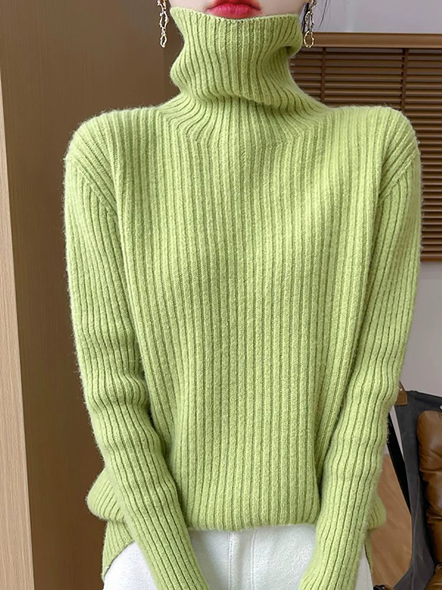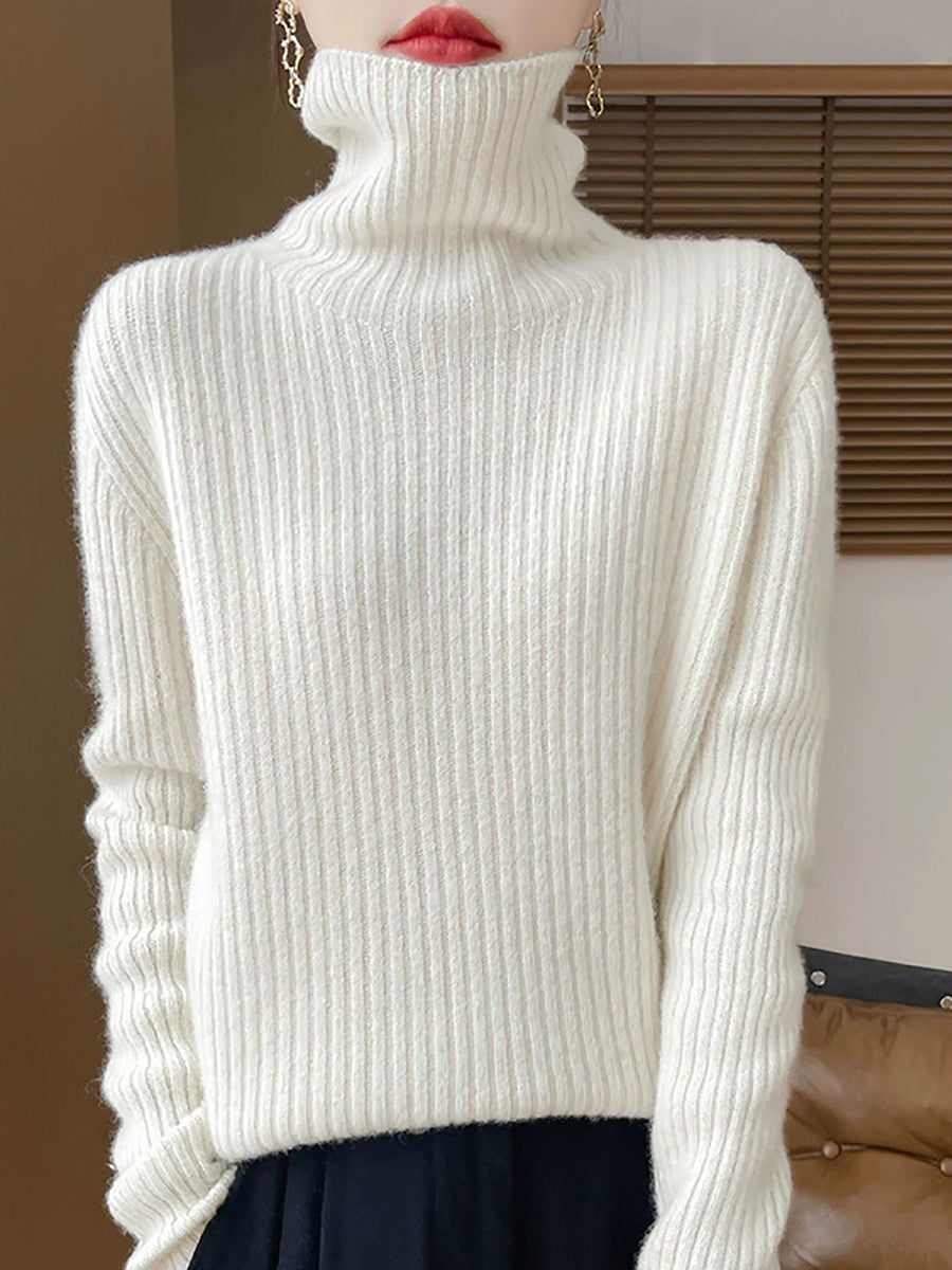 Pull en laine à col roulé uni pour femme, style décontracté printanier