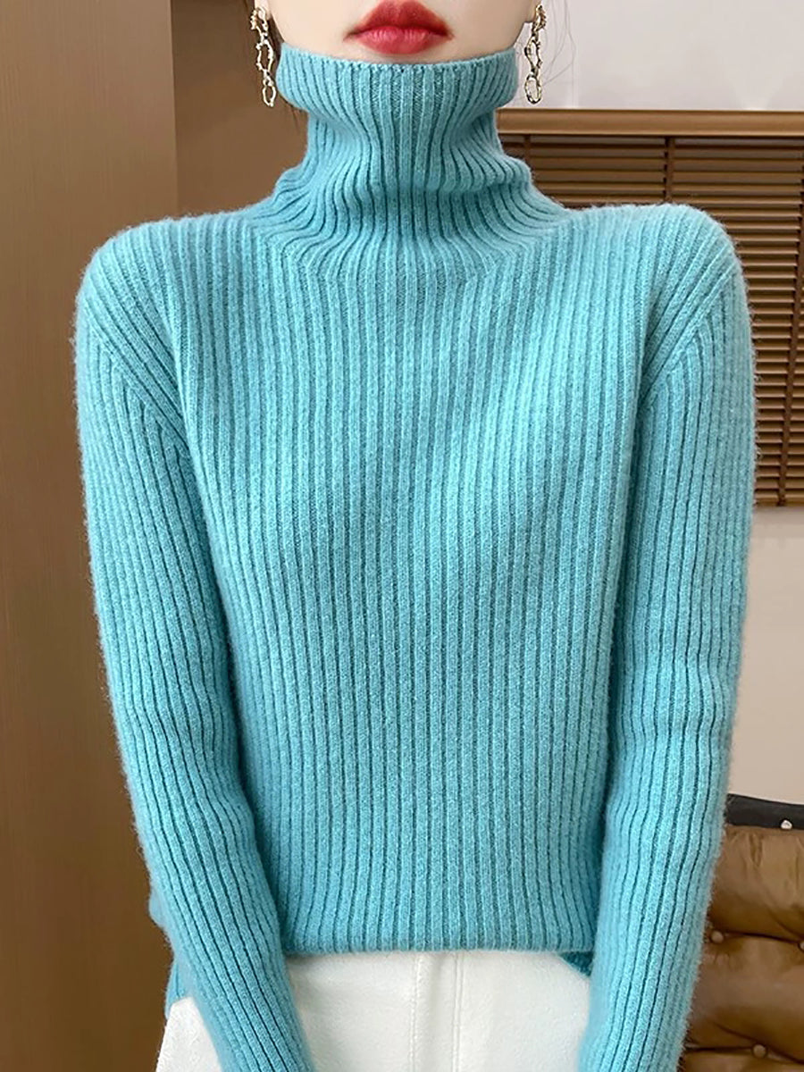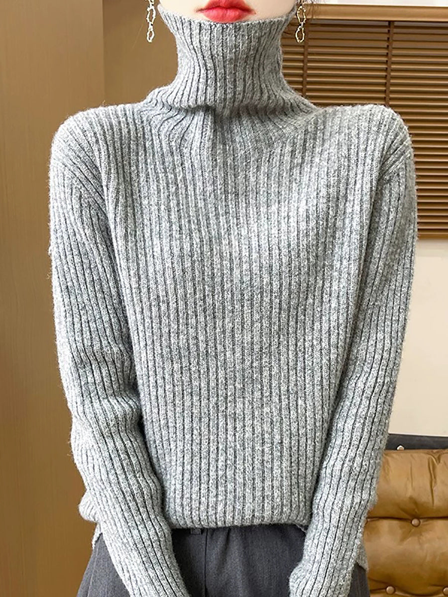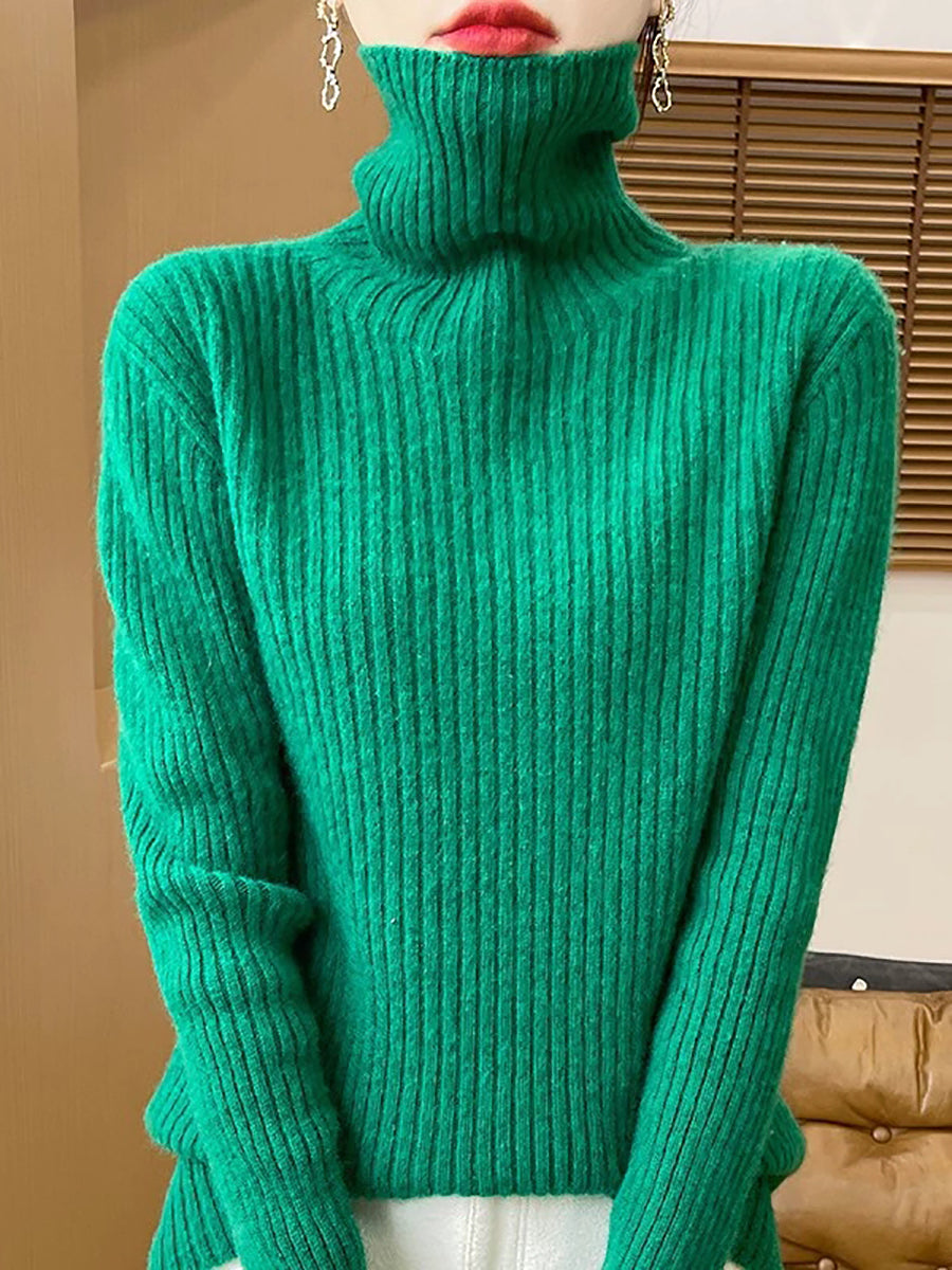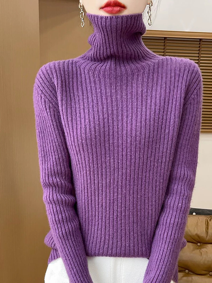 Pull en laine à col roulé uni pour femme, style décontracté printanier