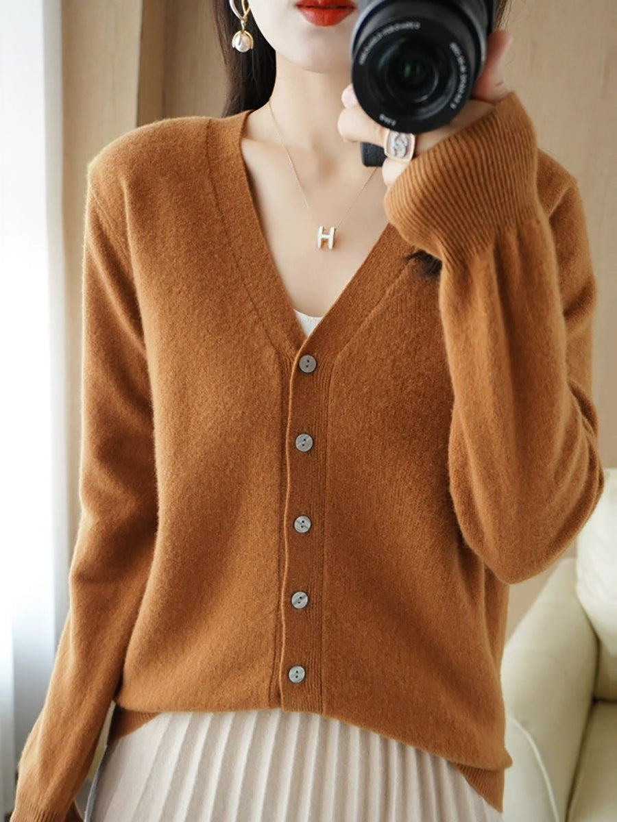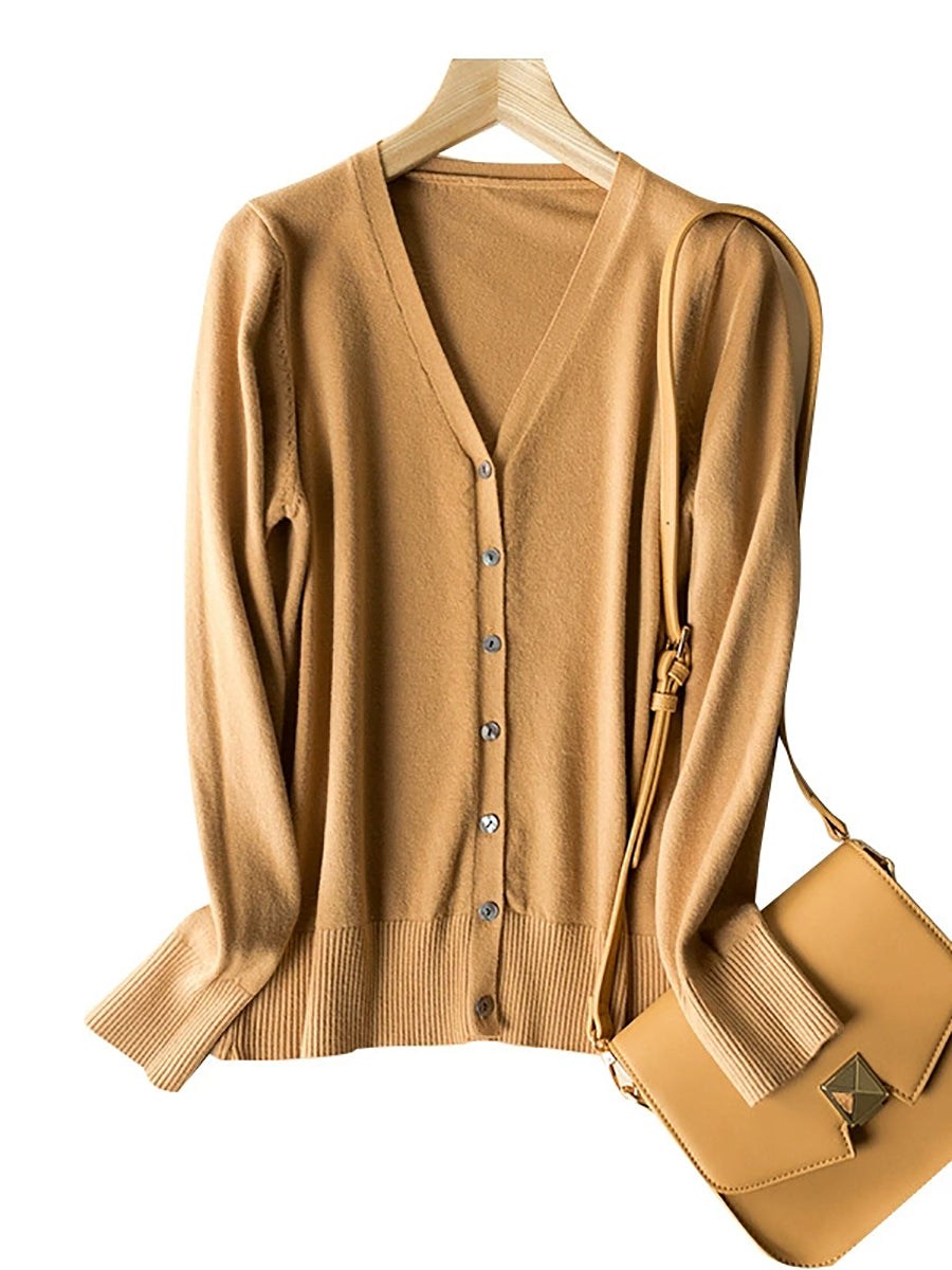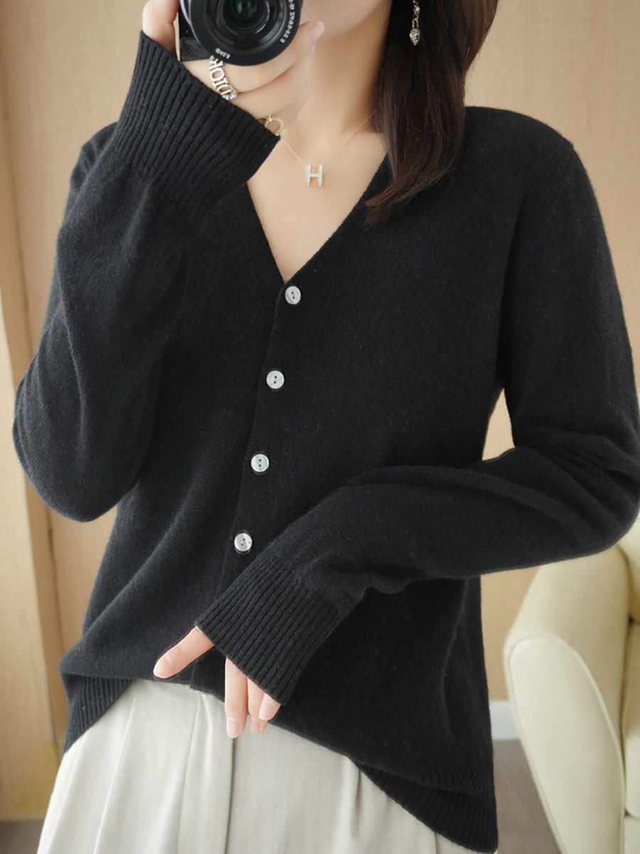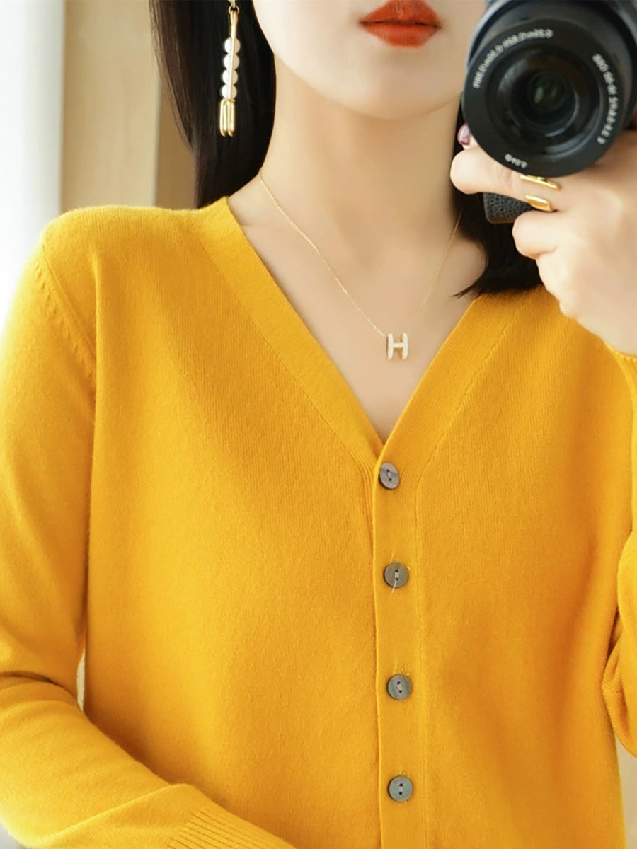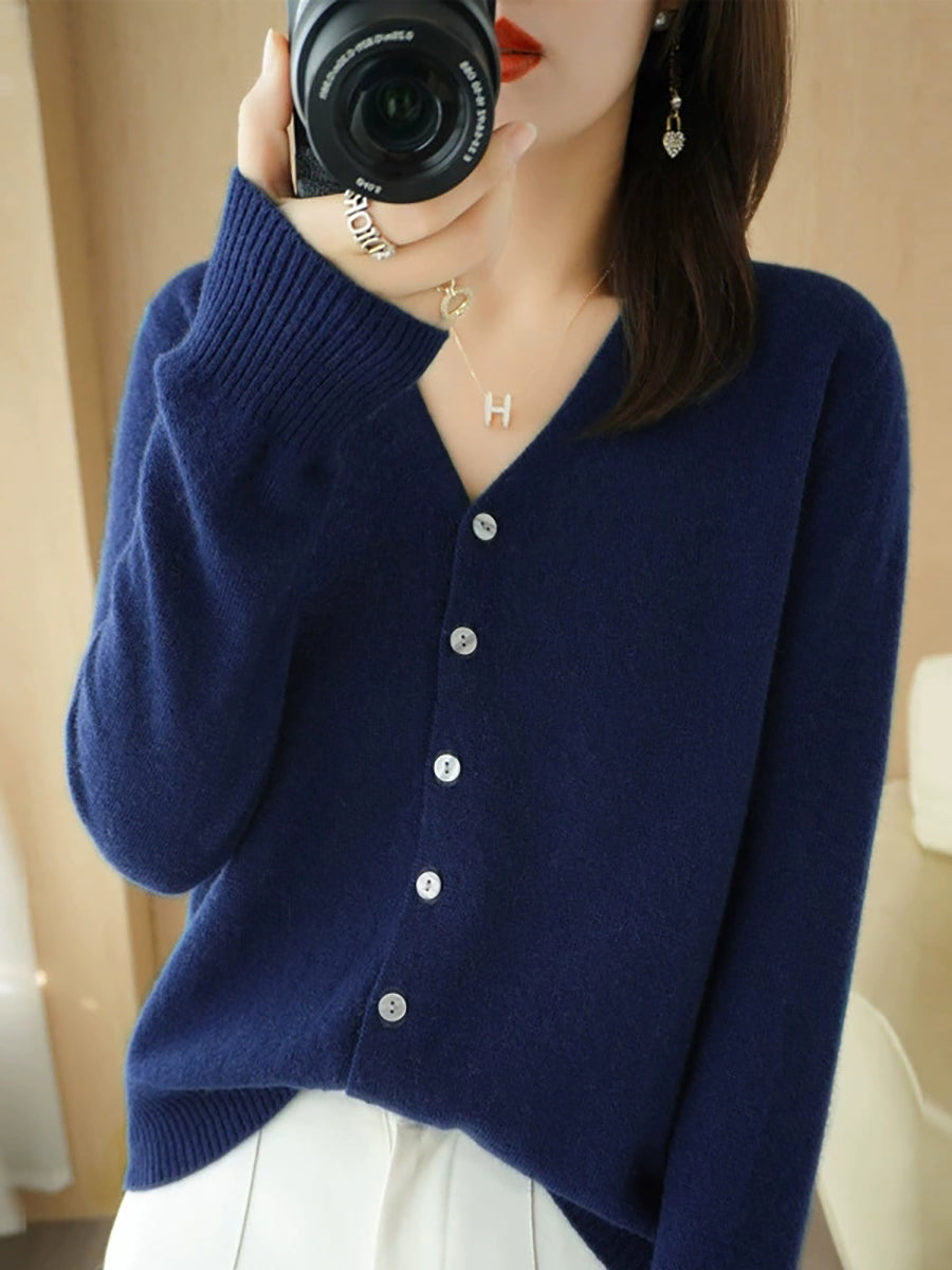 Pull col V uni décontracté de printemps pour femme