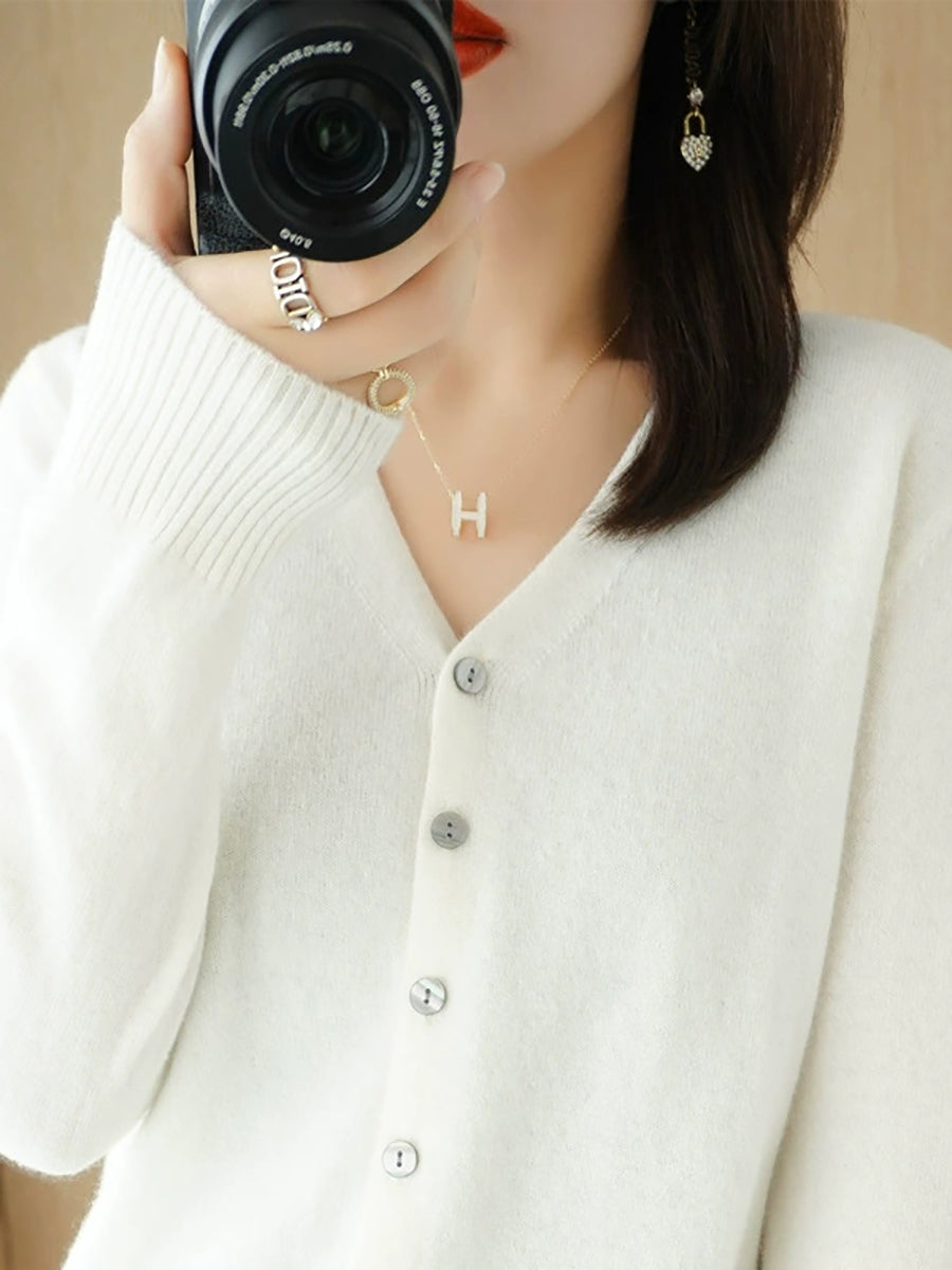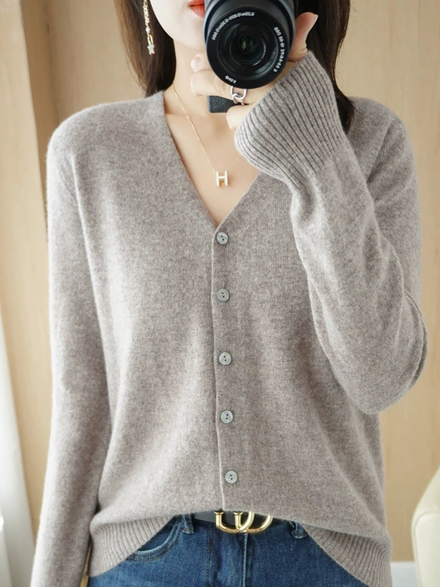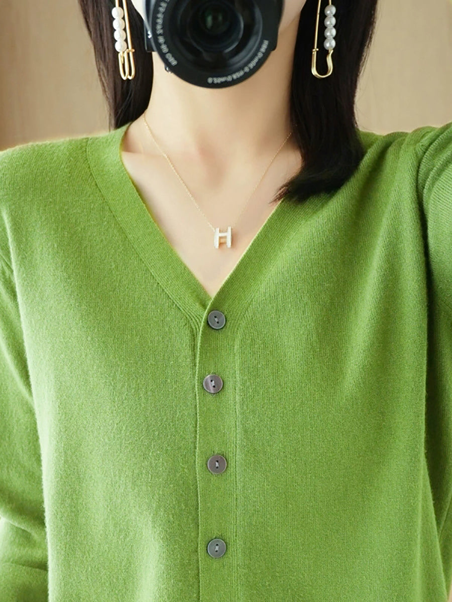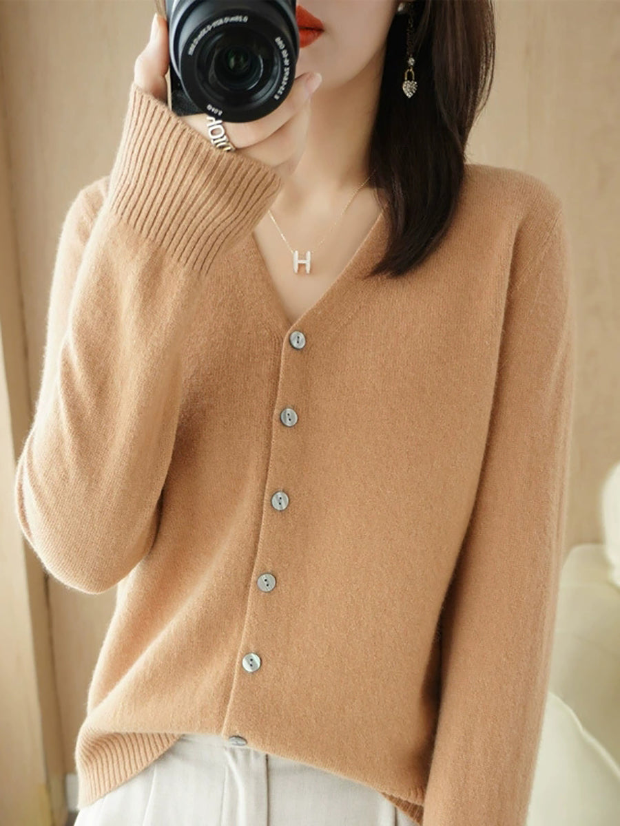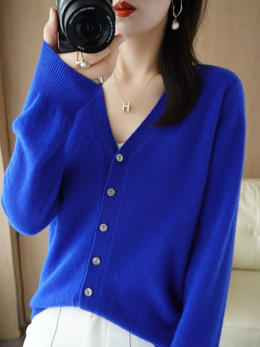 Pull col V uni décontracté de printemps pour femme