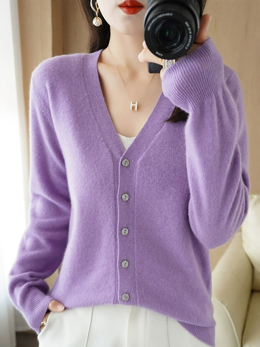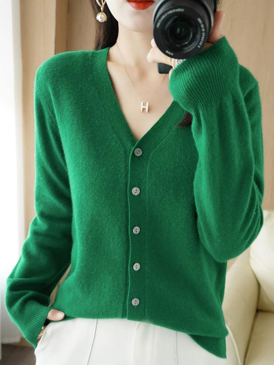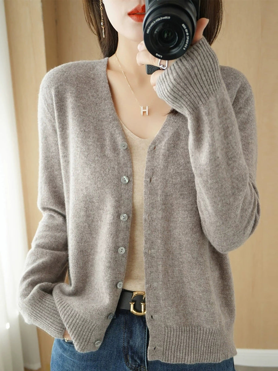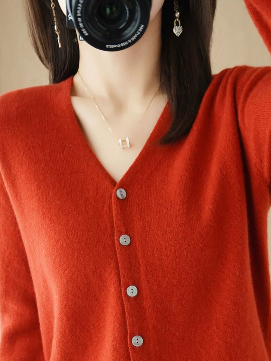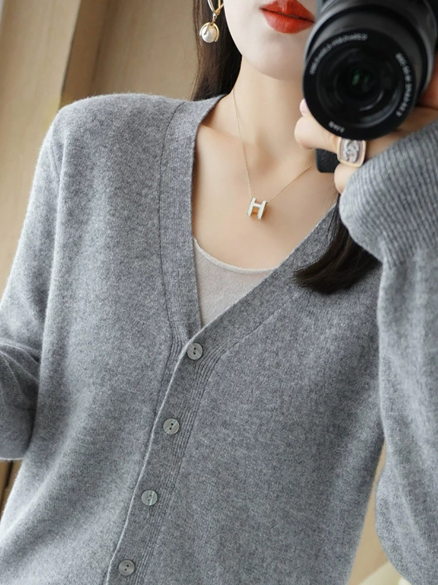Pull col V uni décontracté de printemps pour femme