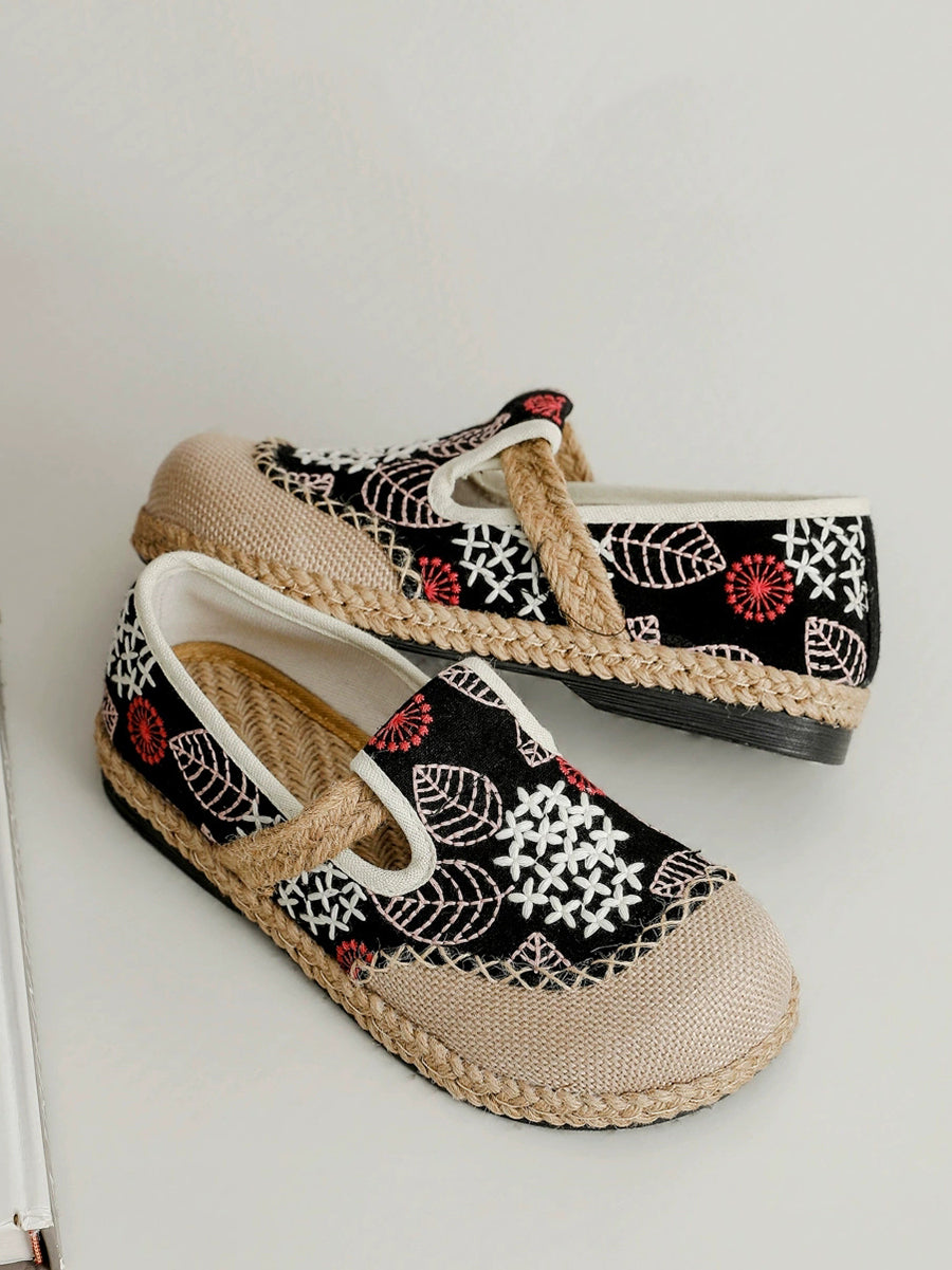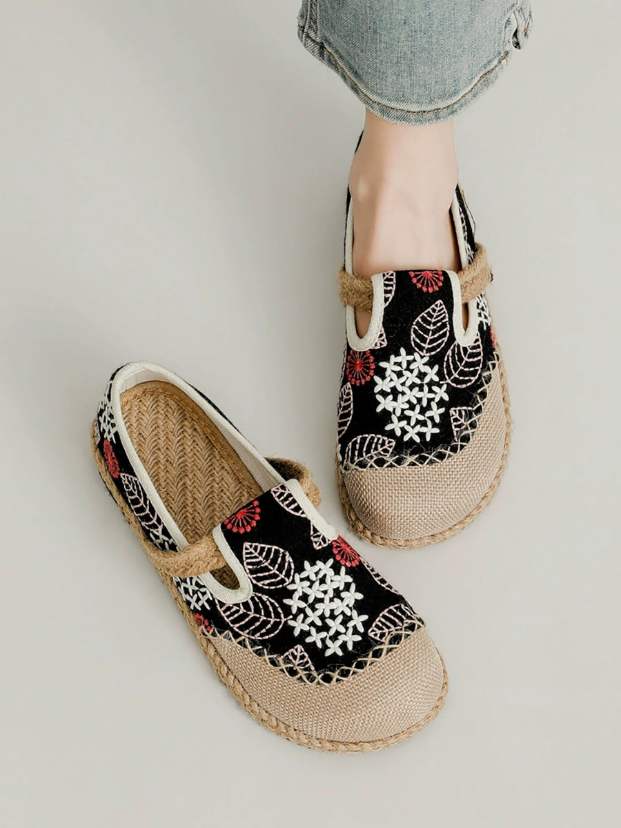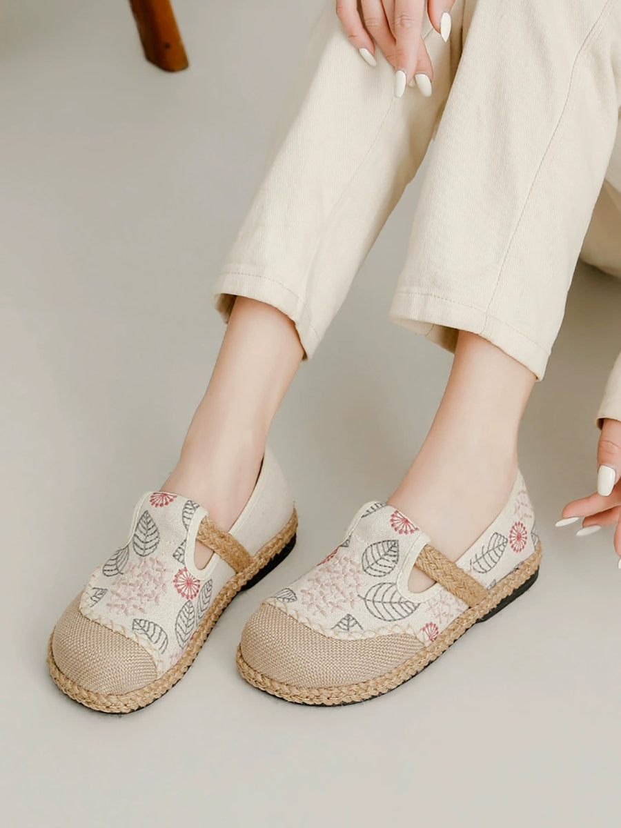 Chaussures plates printanières pour femmes en toile et lin brodées