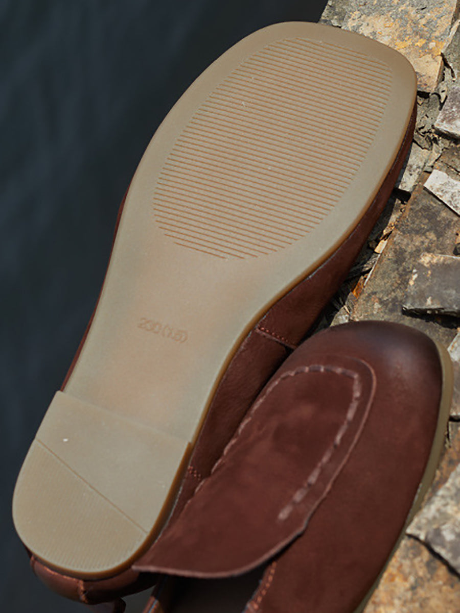 Chaussures de printemps pour femmes en cuir véritable à bout carré