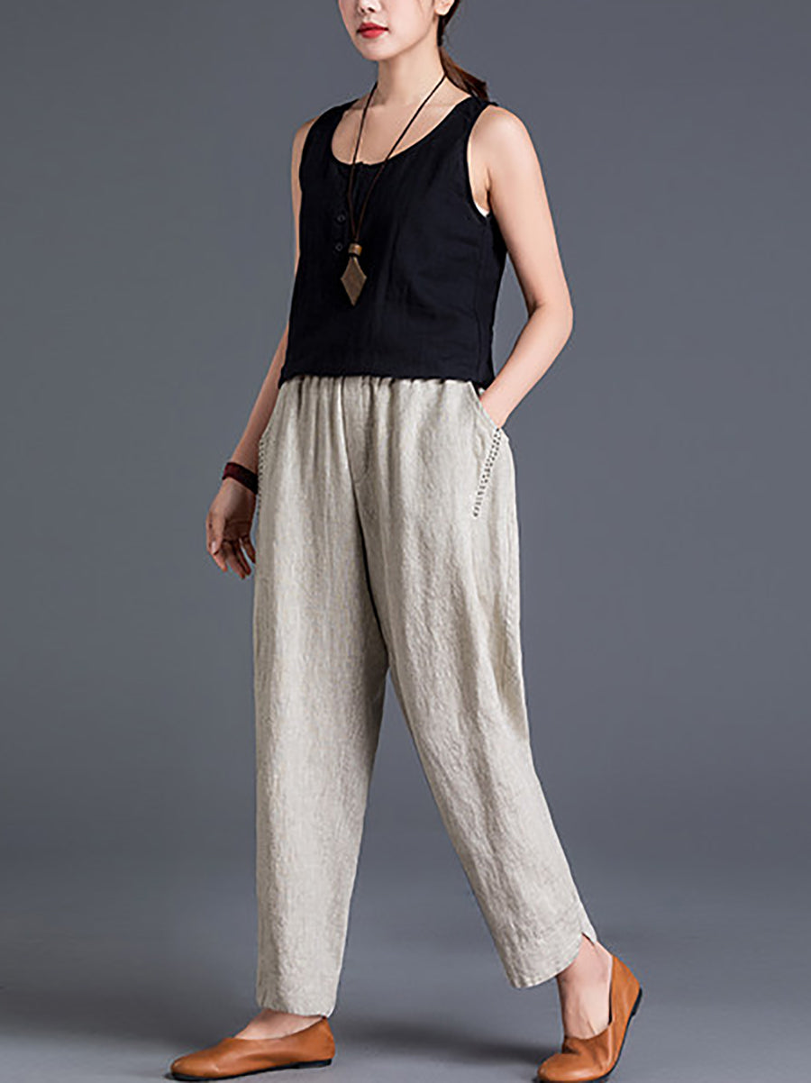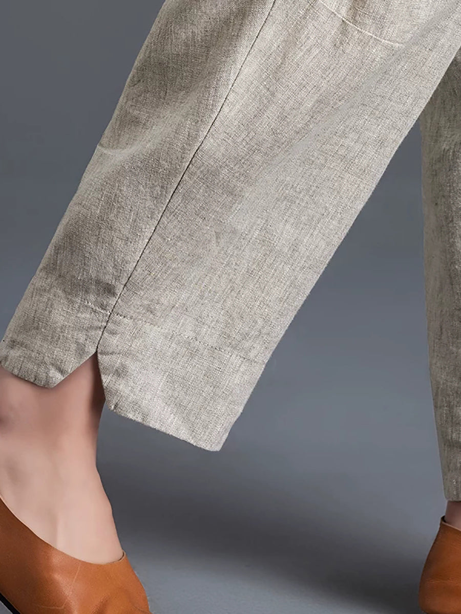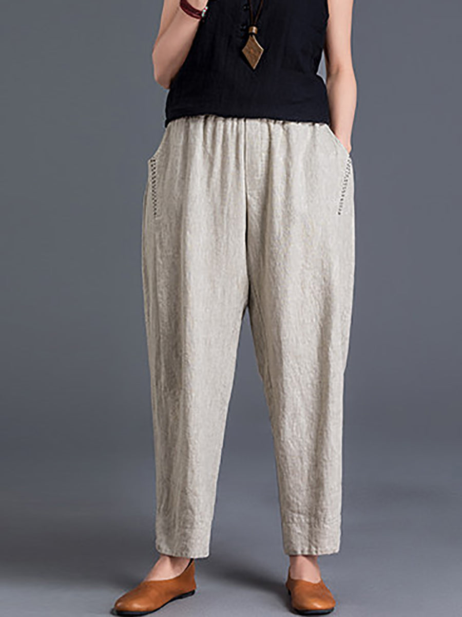 Pantalon harem printemps femme en coton et lin uni couleur pure