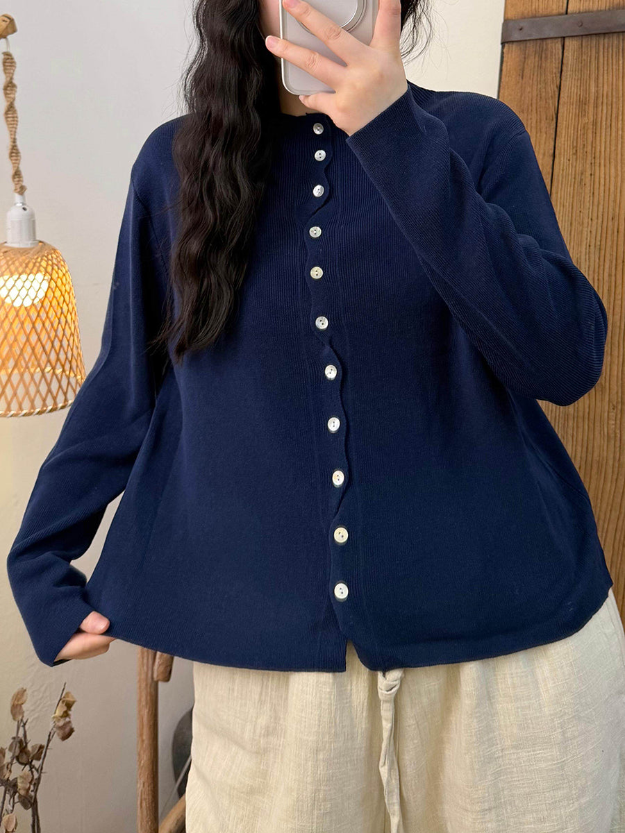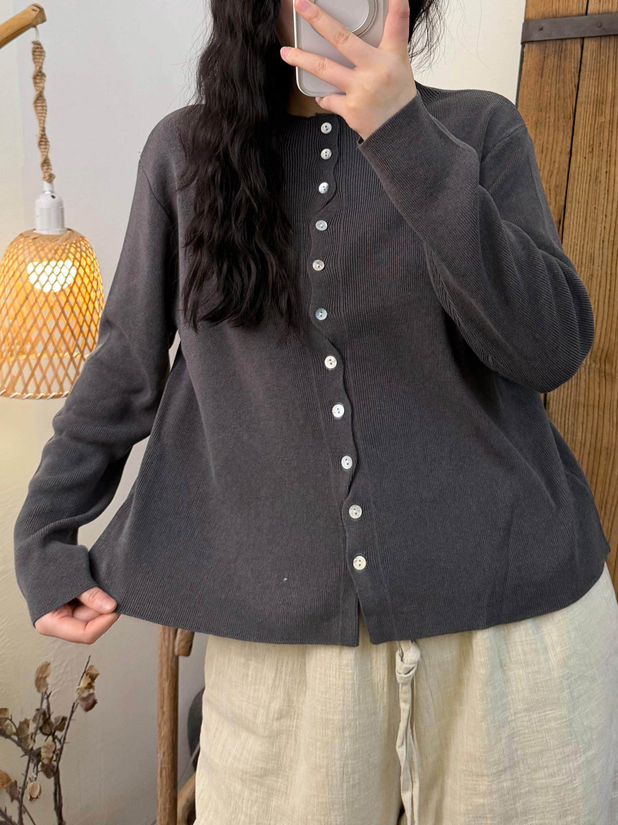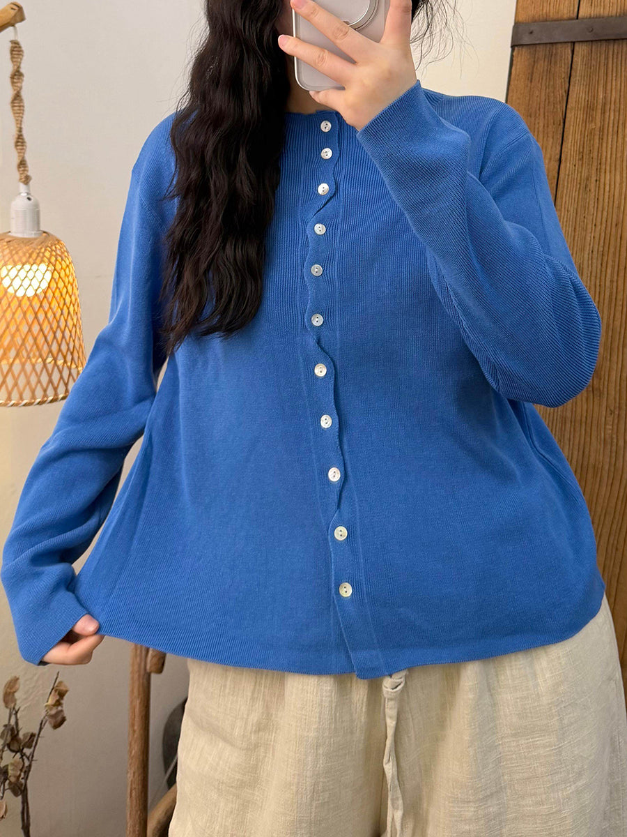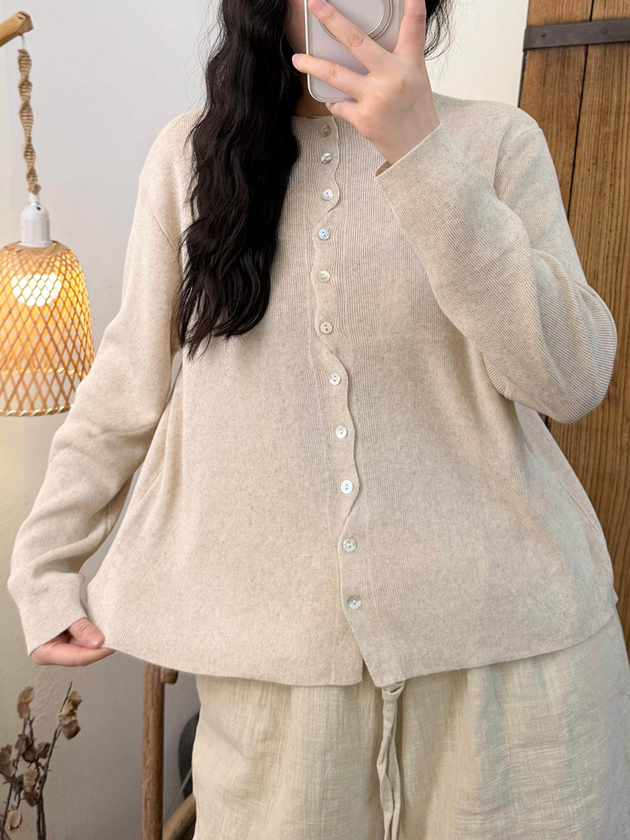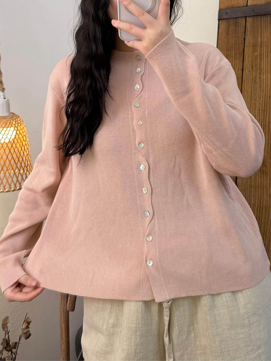 Chemise en maille à col rond unie pour femme, idéale pour le printemps