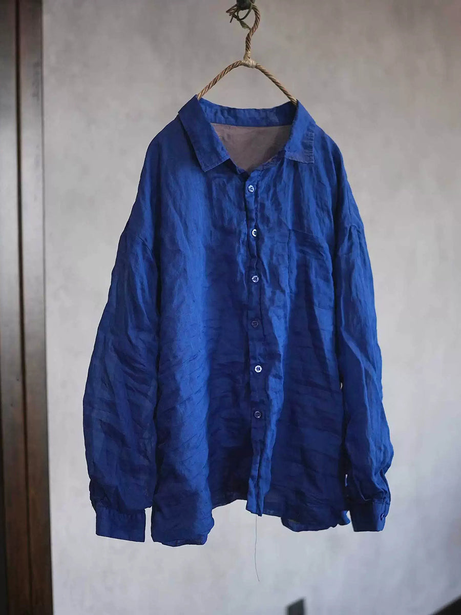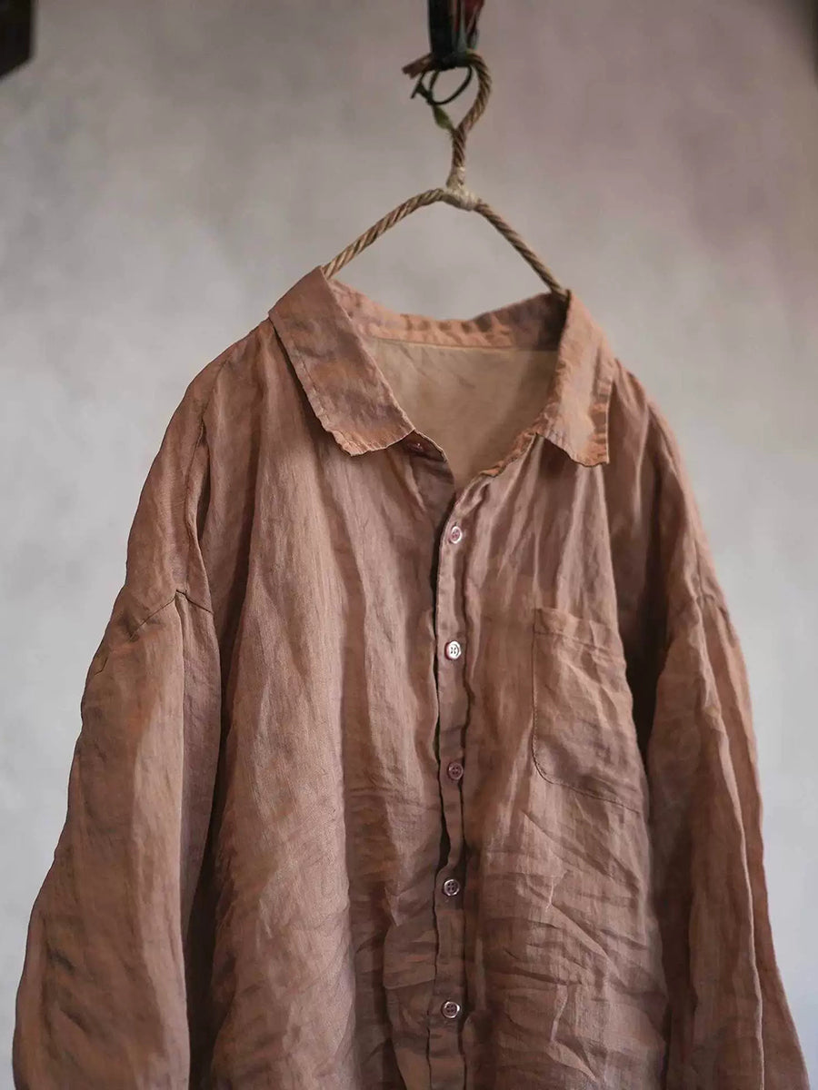 Chemise en ramie unie à col rabattu pour femme, printemps, couleur unie