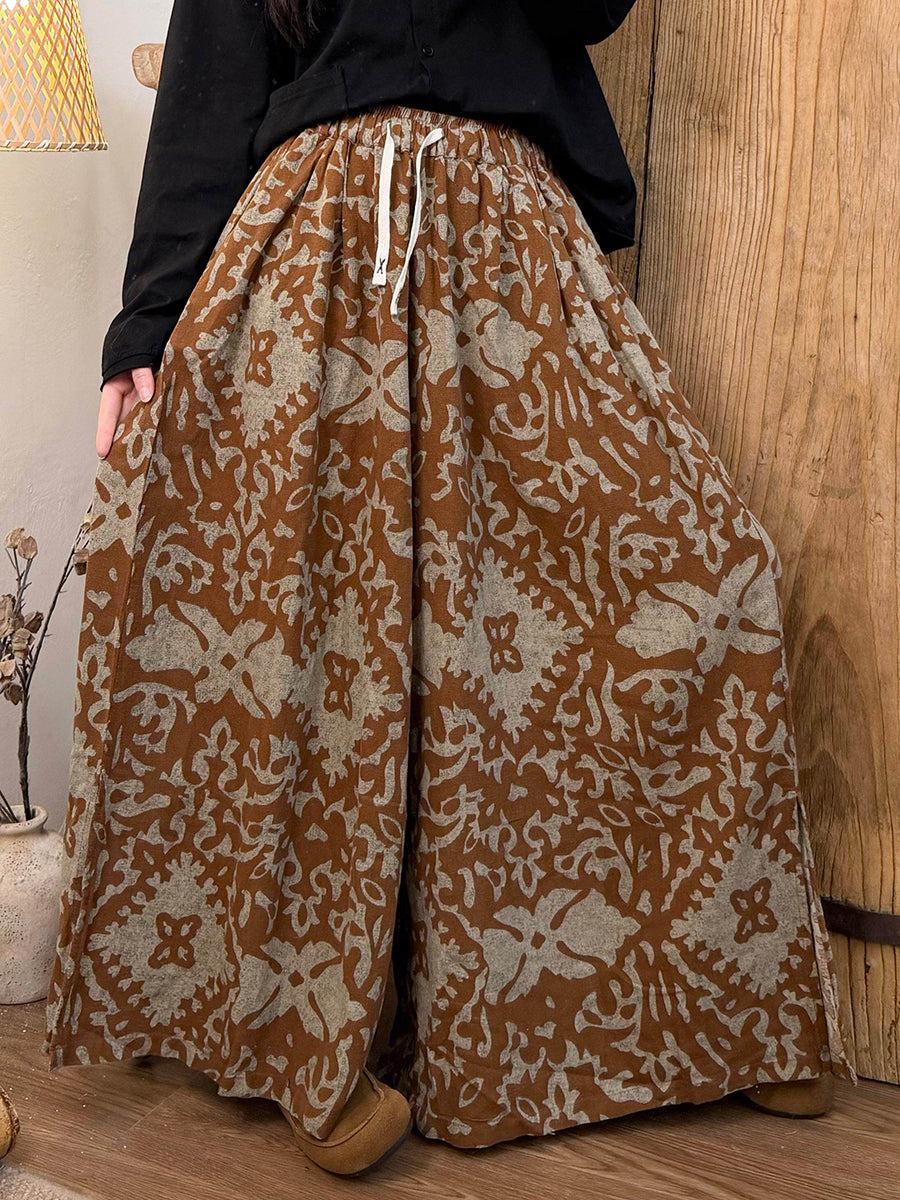 Pantalon large fleuri rétro printemps pour femme