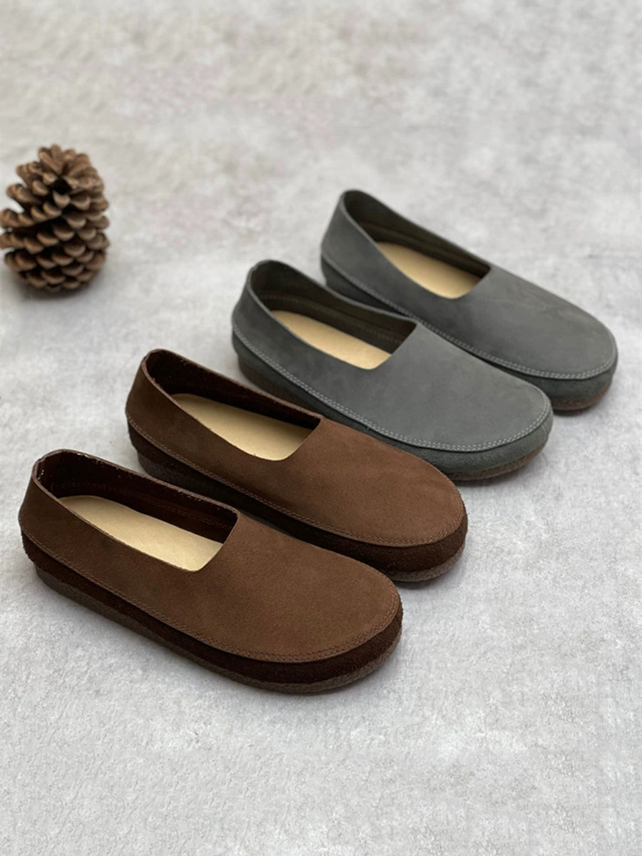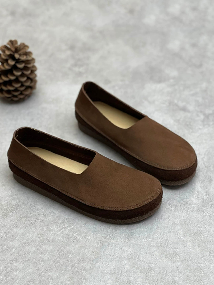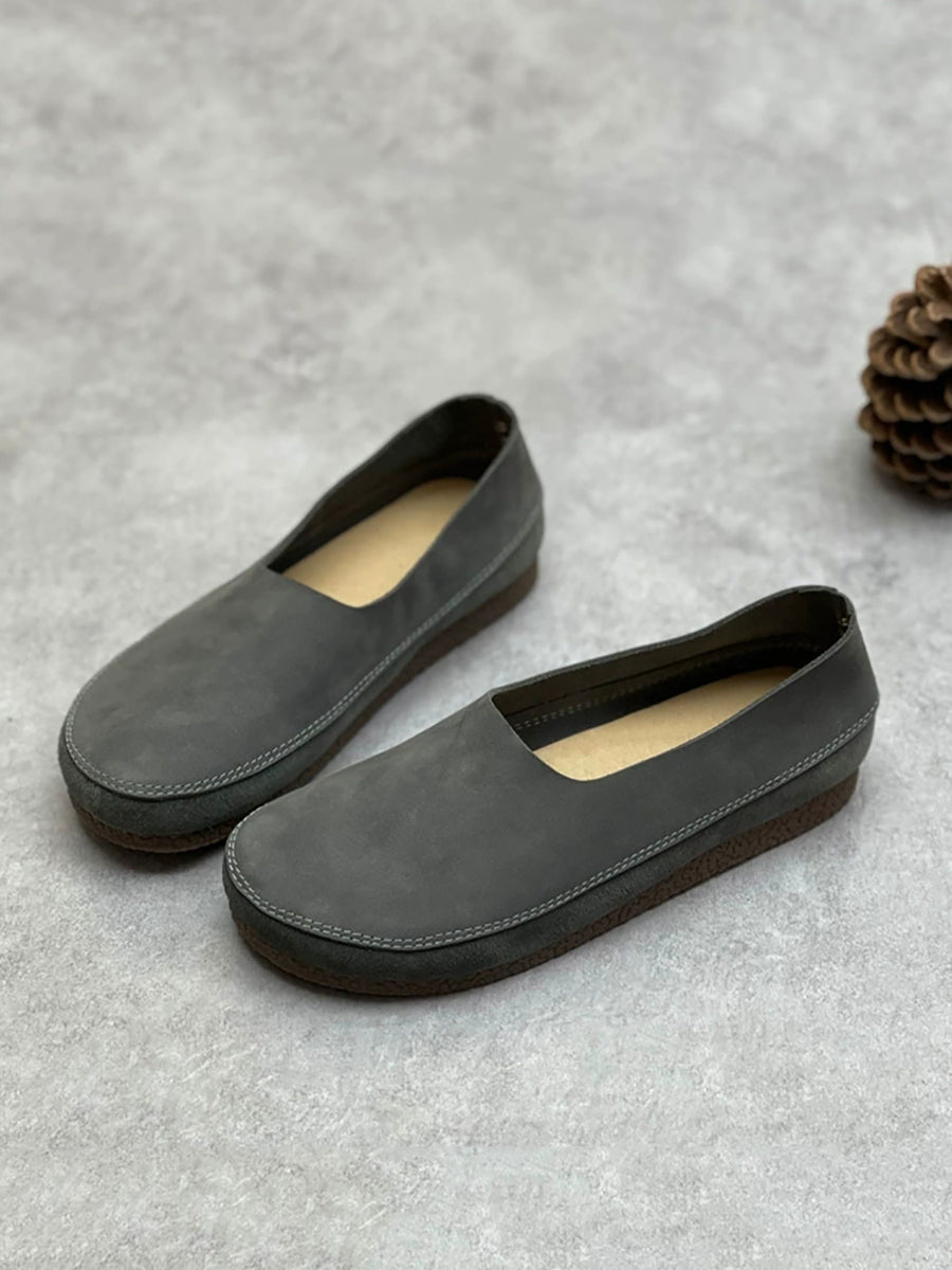 Chaussures à talons bas rétro printemps pour femmes en cuir véritable