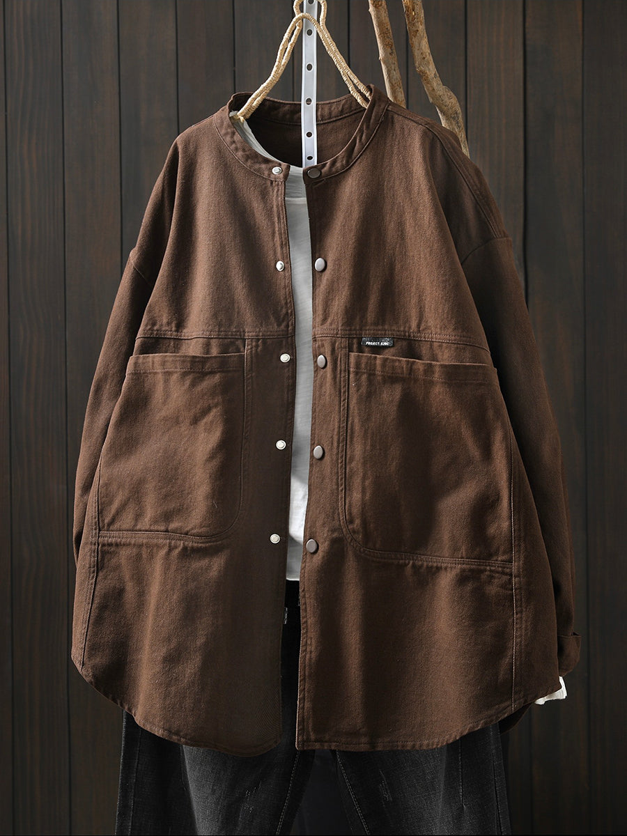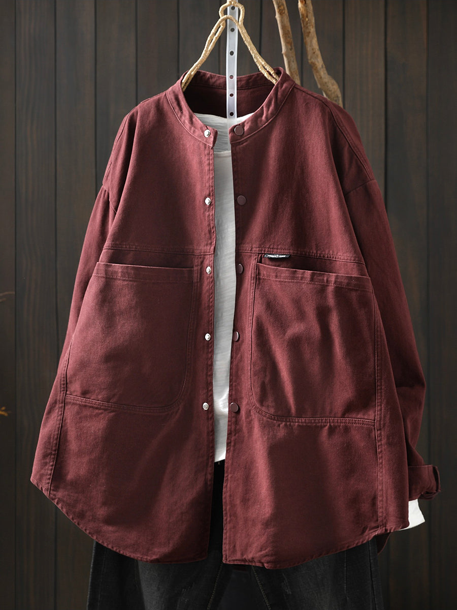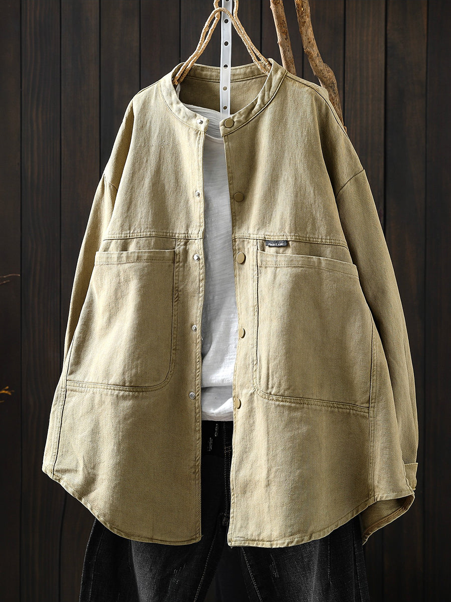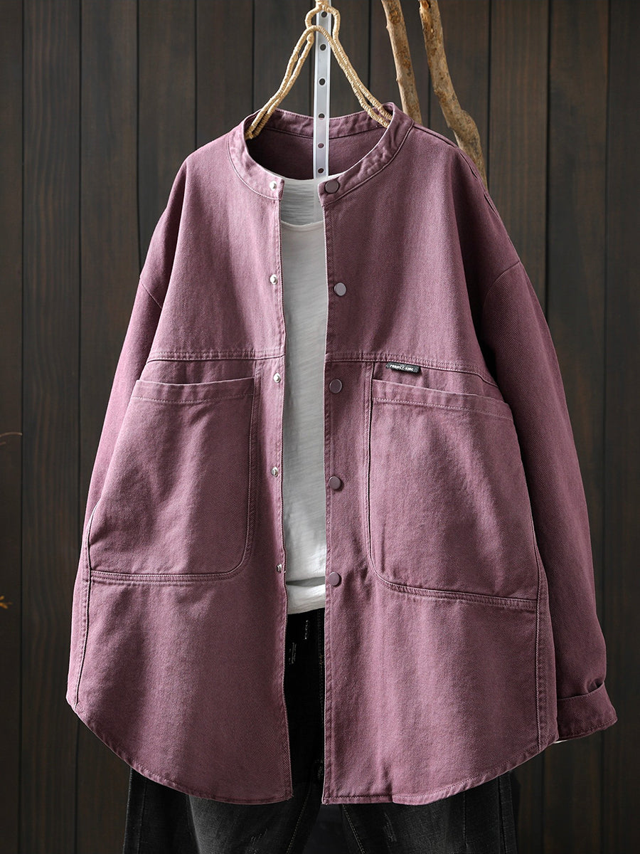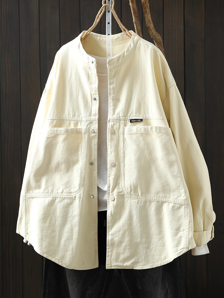 Veste en coton uni couleur unie, style rétro printemps pour femme